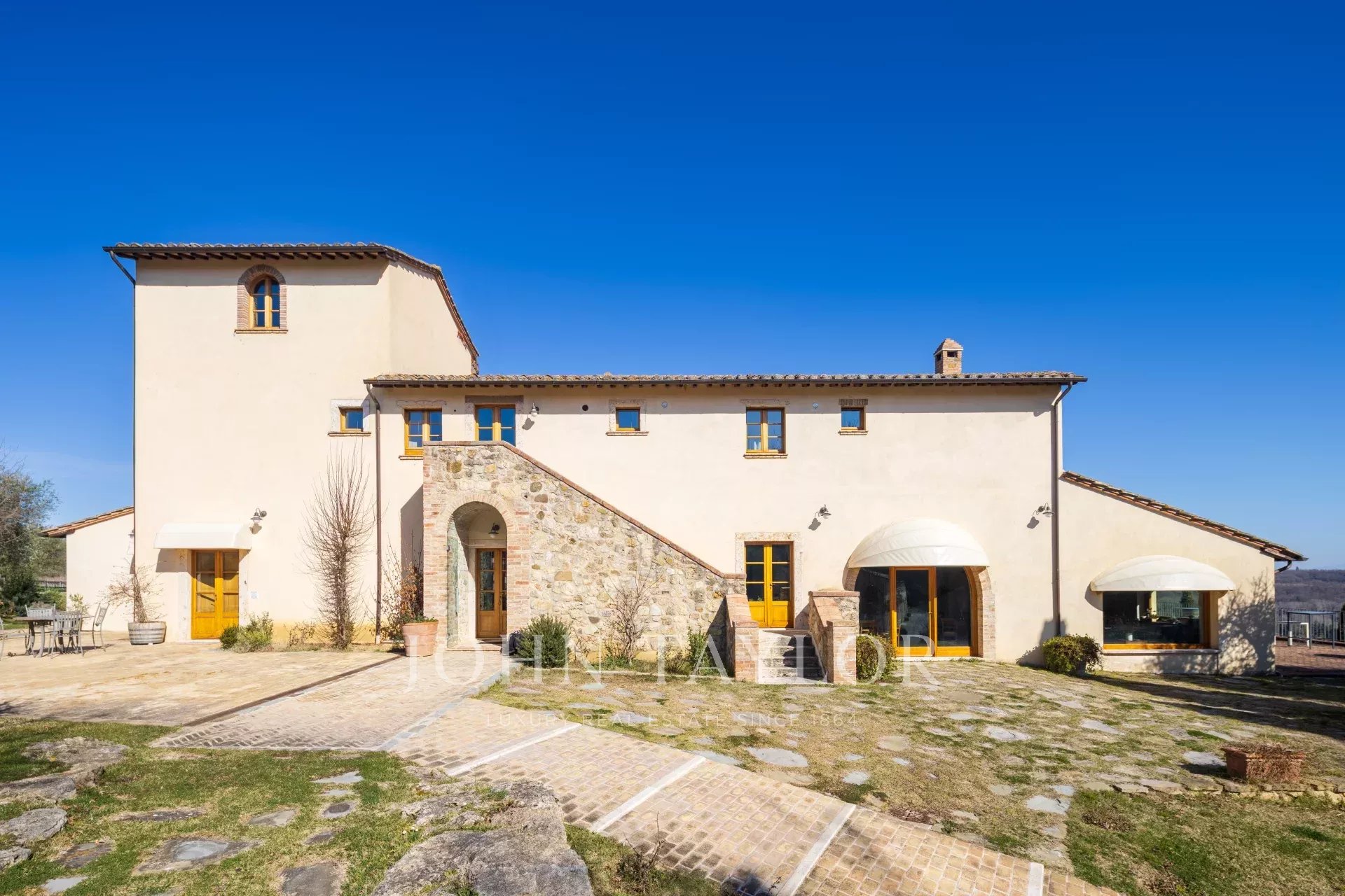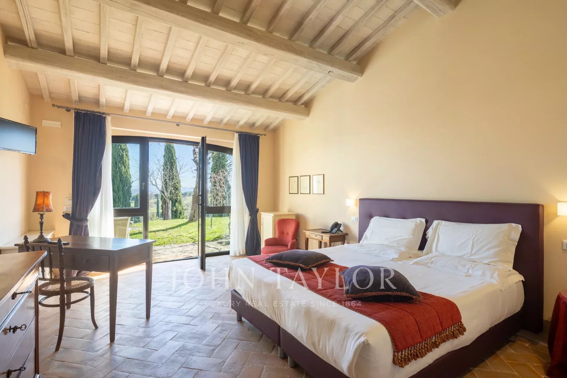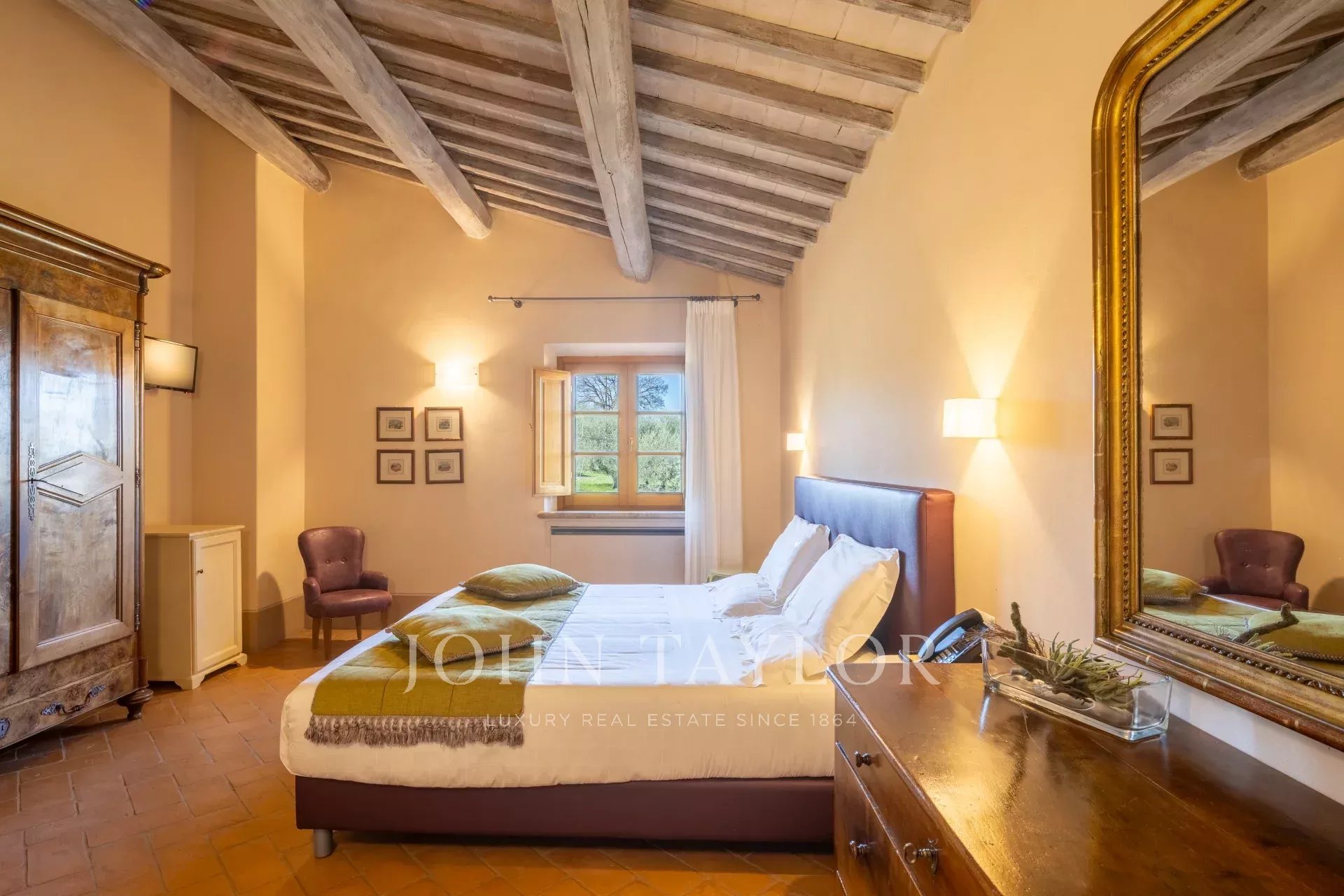La tenuta principale è una villa completamente ristrutturata, con doppi saloni, una cucina professionale, 8 camere e 2 stanze aggiuntive, per una superficie di 667 m². Un annesso separato offre altre 5 camere per gli ospiti su 150 m².