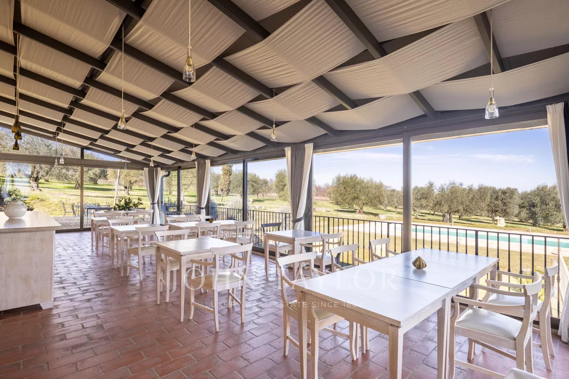 Dispone inoltre di una sala degustazione/eventi con terrazza esterna e cucina, su una superficie di 1.800 m². La proprietà è ulteriormente arricchita da un impianto fotovoltaico da 20 Kw installato sul tetto.
