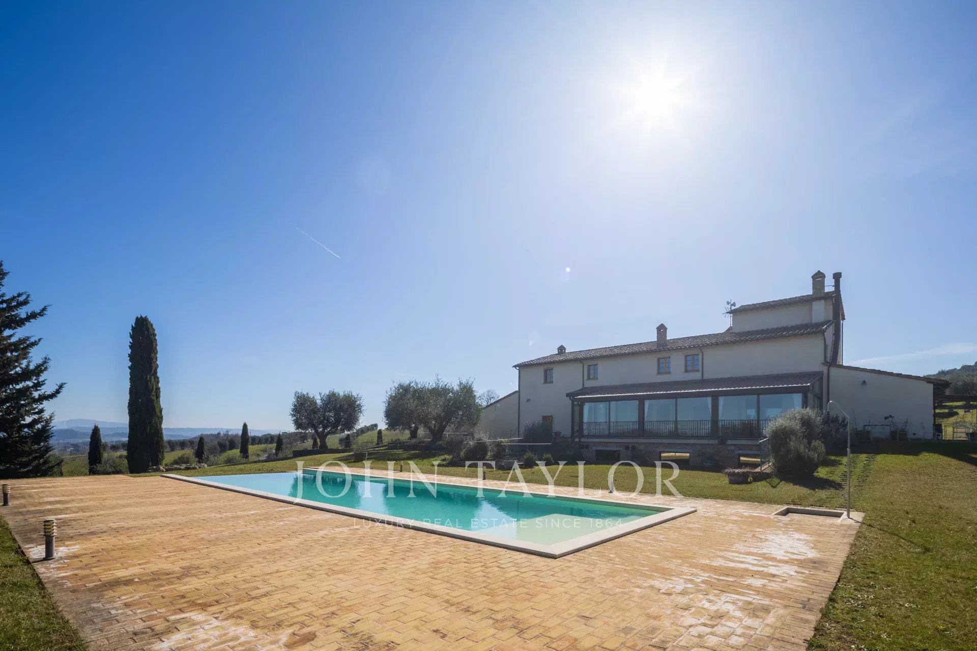 Questa proprietà e' immersa in una superficie di 125 ettari di terreno, tra la val'orcia e la Valdichiana, in zona etrusca e facilmente raggiungibile dagli aeroporti piu' importanti.