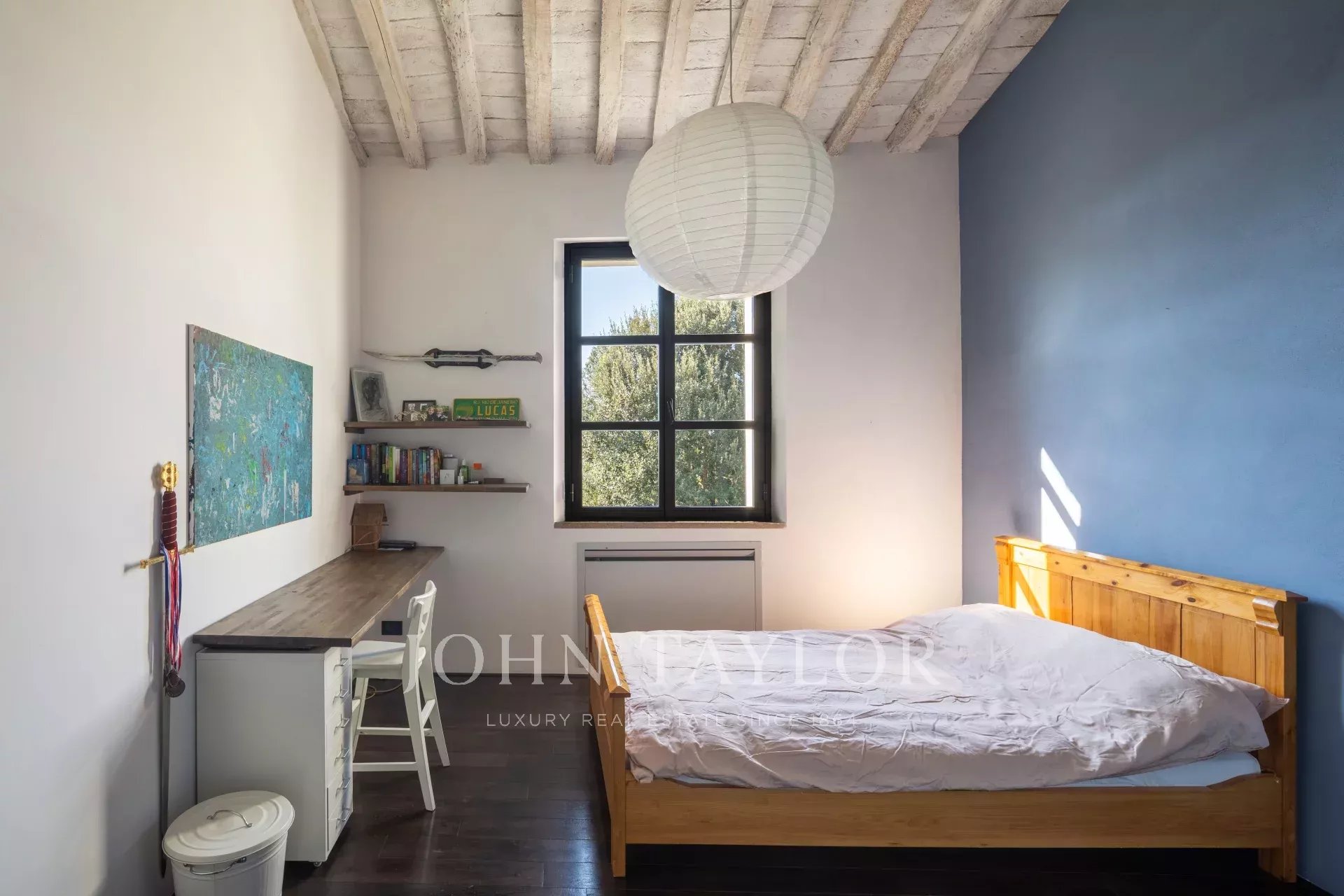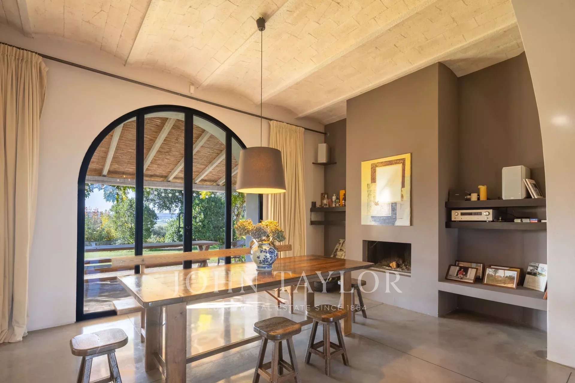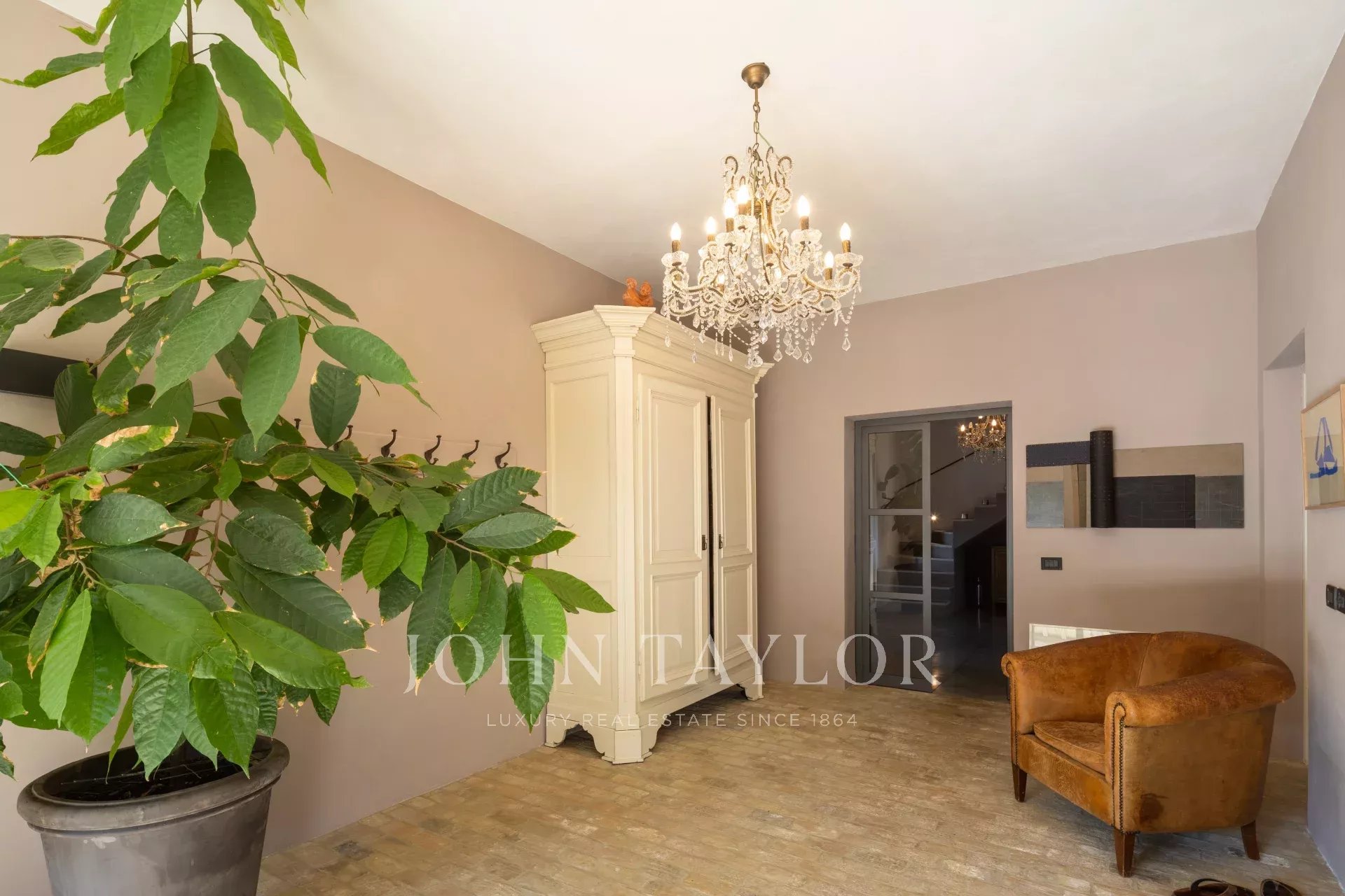L’unità principale accoglie gli ospiti con una zona giorno dal fascino unico, impreziosita da un camino per serate accoglienti, uno studio e una sala da pranzo con vista sul giardino. La cucina adiacente, moderna e funzionale, si inserisce armoniosamente negli interni caratterizzati da soffitti con piccole volte restaurate e sbiancate. Al piano superiore, il parquet dona calore agli ambienti, mentre il comfort è garantito da un sistema di riscaldamento a pavimento con tecnologia geotermica, aria condizionata e numerose finestre che inondano gli spazi di luce naturale.