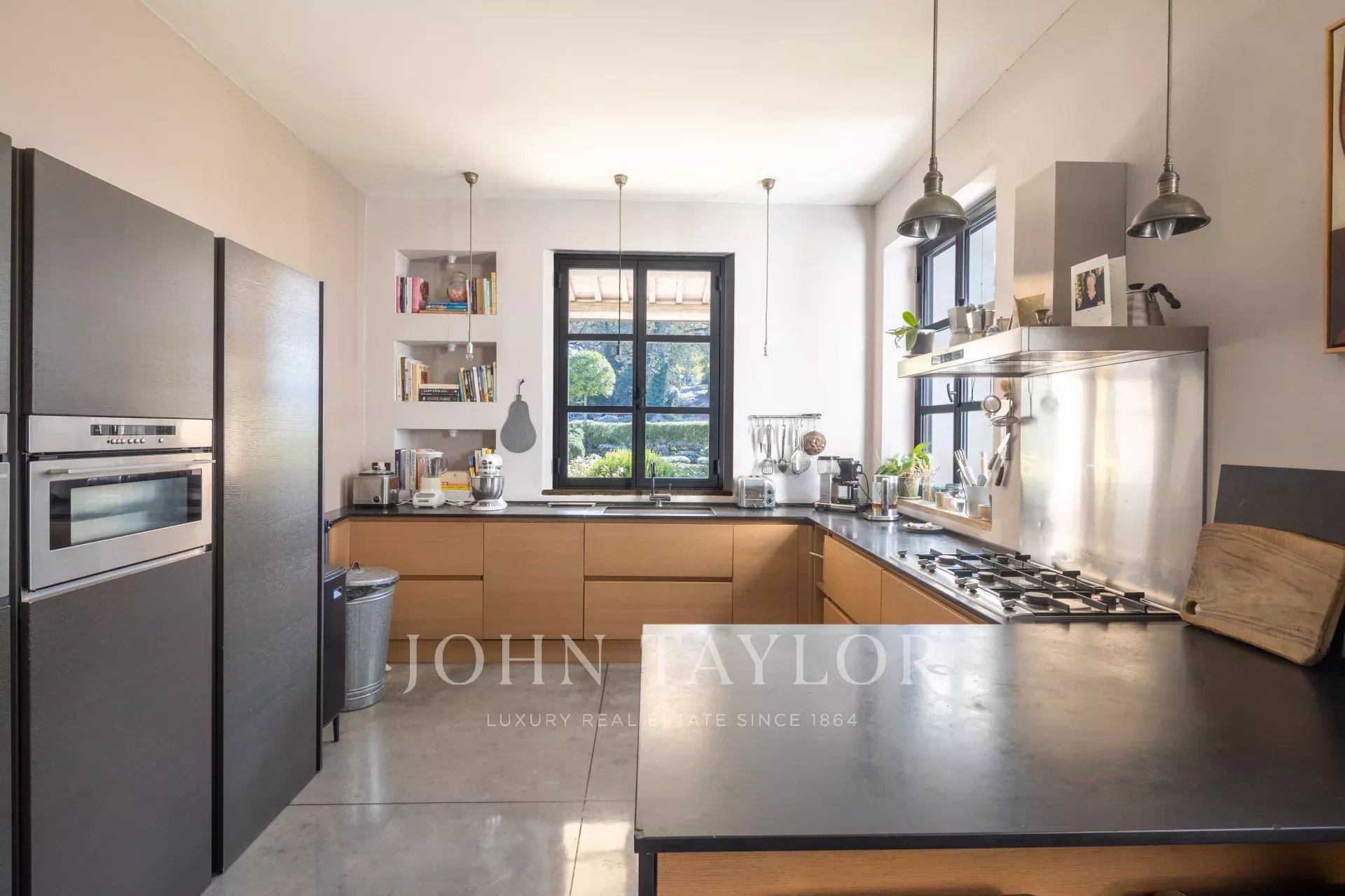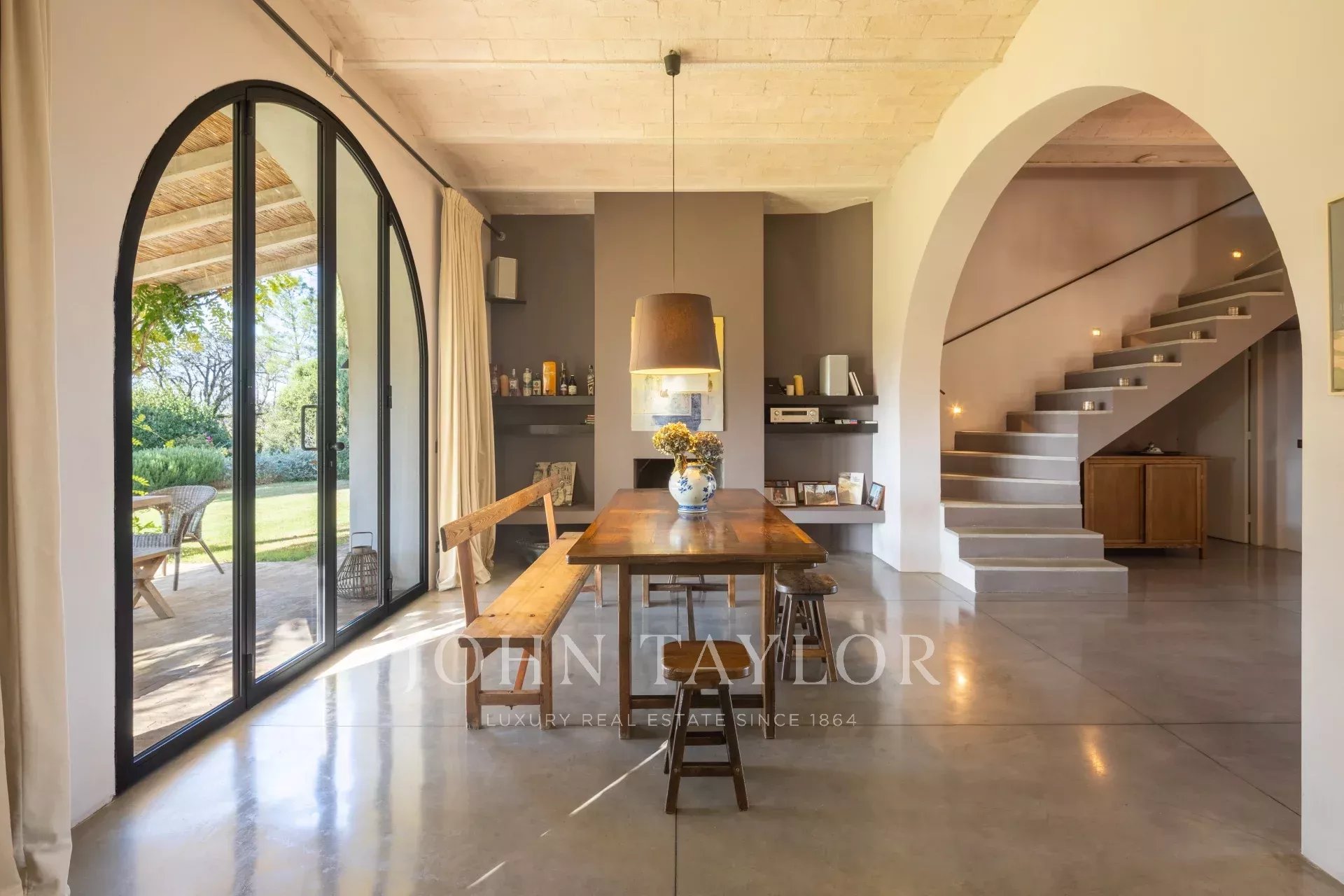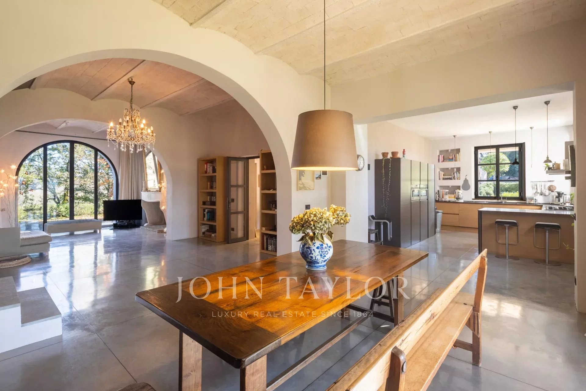 L’unità principale accoglie gli ospiti con una zona giorno dal fascino unico, impreziosita da un camino per serate accoglienti, uno studio e una sala da pranzo con vista sul giardino. La cucina adiacente, moderna e funzionale, si inserisce armoniosamente negli interni caratterizzati da soffitti con piccole volte restaurate e sbiancate. Al piano superiore, il parquet dona calore agli ambienti, mentre il comfort è garantito da un sistema di riscaldamento a pavimento con tecnologia geotermica, aria condizionata e numerose finestre che inondano gli spazi di luce naturale.