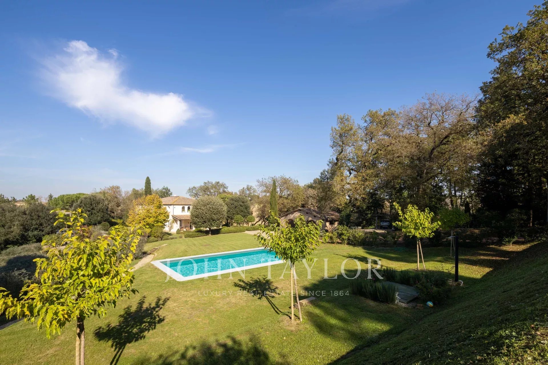 Circondata da un delizioso giardino all’italiana di dimensioni contenute e facilmente gestibile, la proprietà offre uno spettacolare panorama sulle dolci colline, impreziosito da un orto curato, 50 ulivi e una piscina privata con doccia esterna, perfetta per godersi le calde giornate estive.
