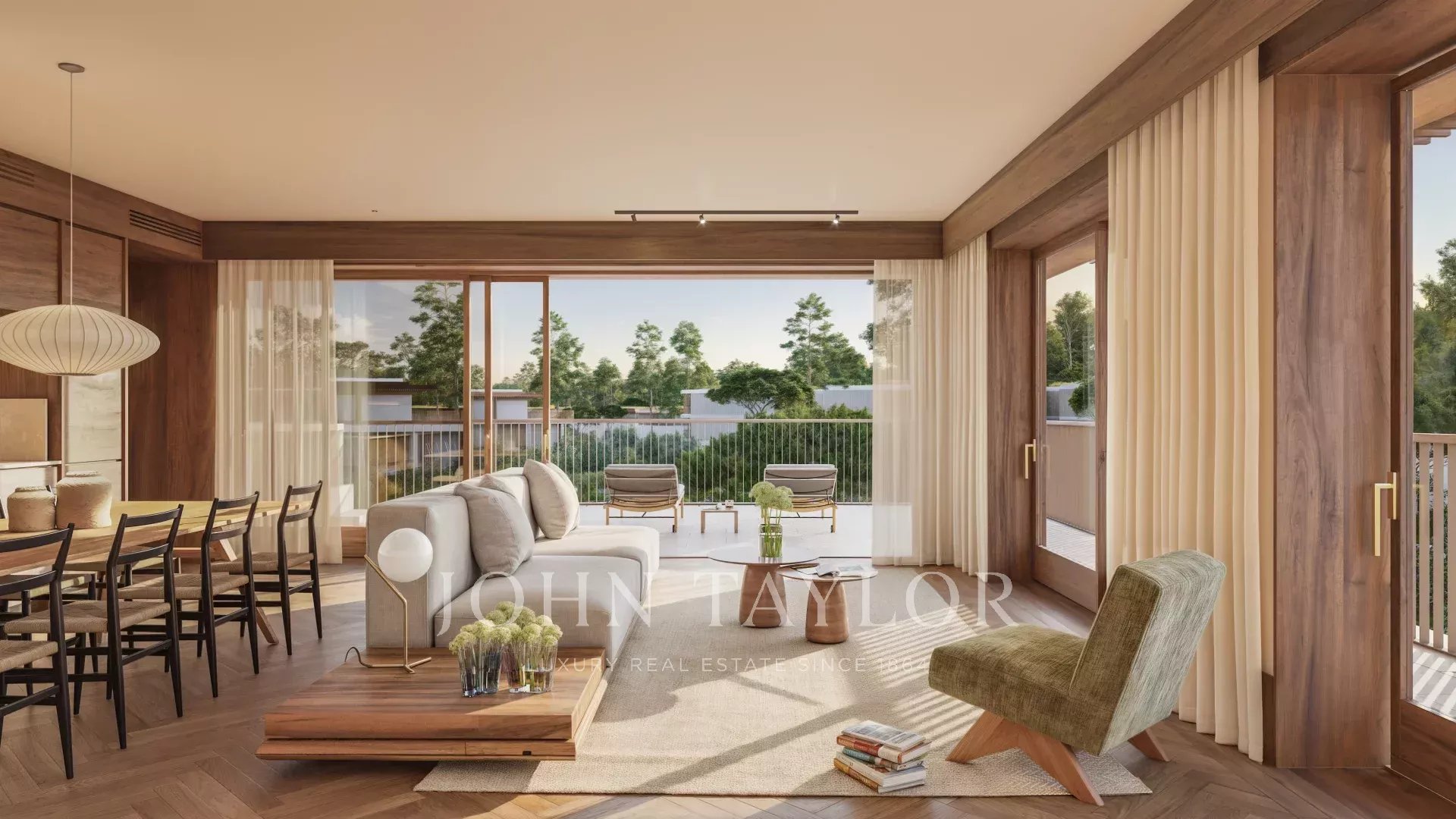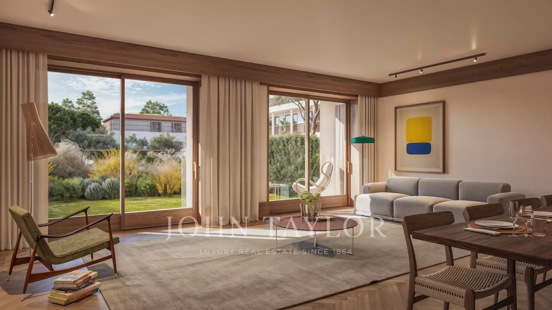 Il duplex con due camere da letto ha una superficie edificata di 147 m². Al piano terra, l'appartamento dispone di un ampio soggiorno e zona pranzo, una cucina completamente attrezzata, un retro cucina, un bagno per gli ospiti, una sala TV. Il soggiorno e la sala da pranzo si aprono su un portico con spazi per mangiare e vivere all'aperto e un giardino.