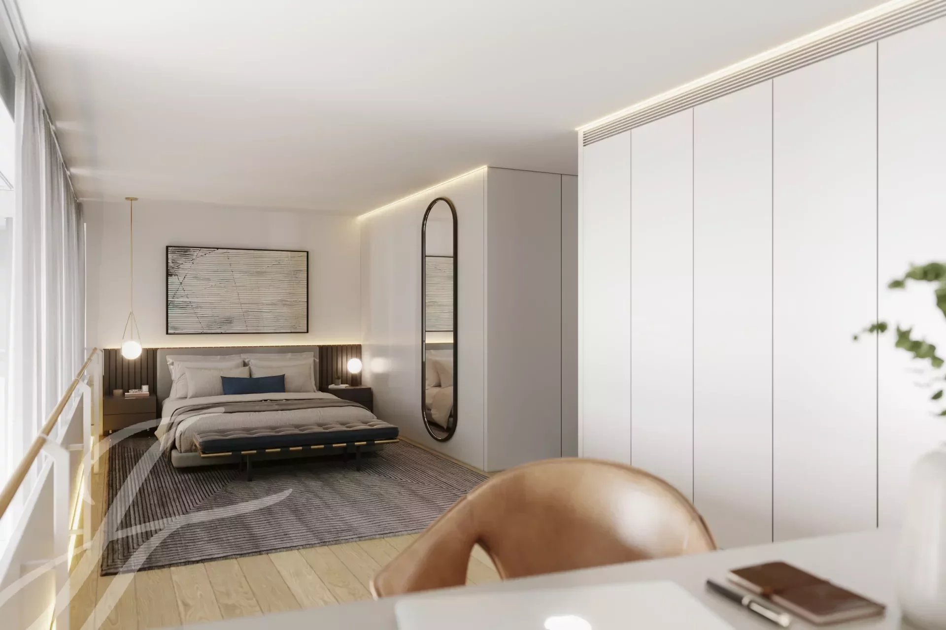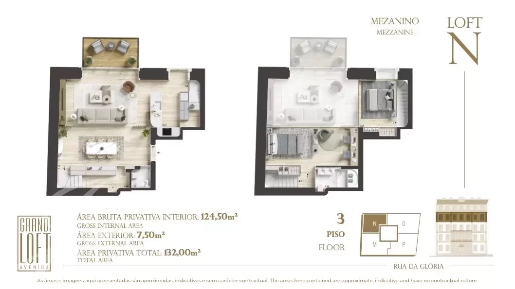 Questo appartamento con una camera da letto e una suite ha una superficie lorda coperta di 124,50 m2 e un balcone di 7,50 m2.