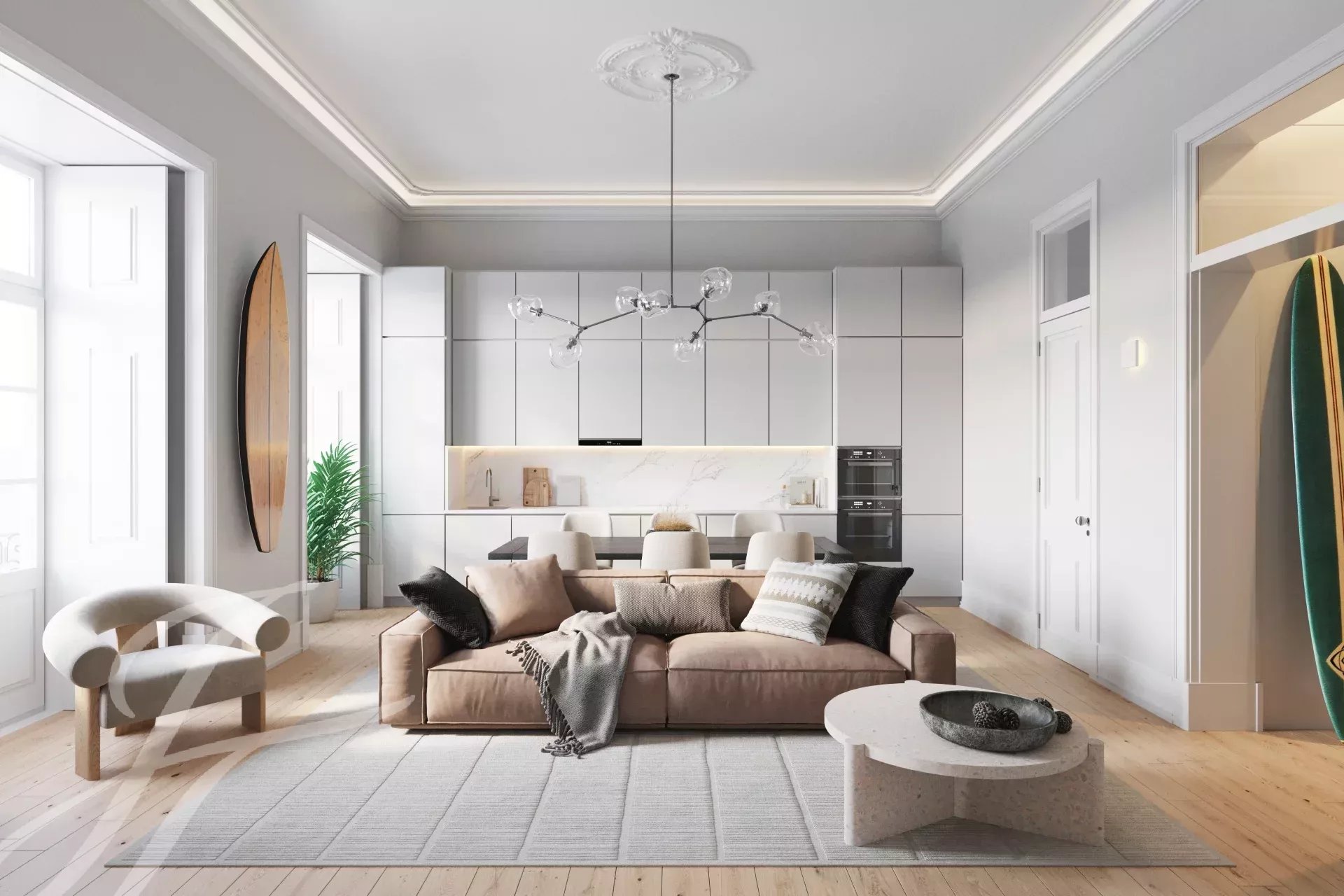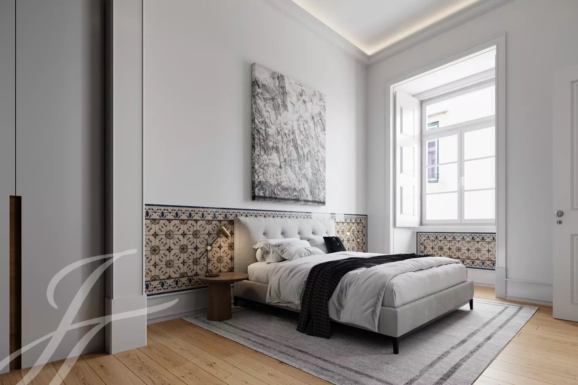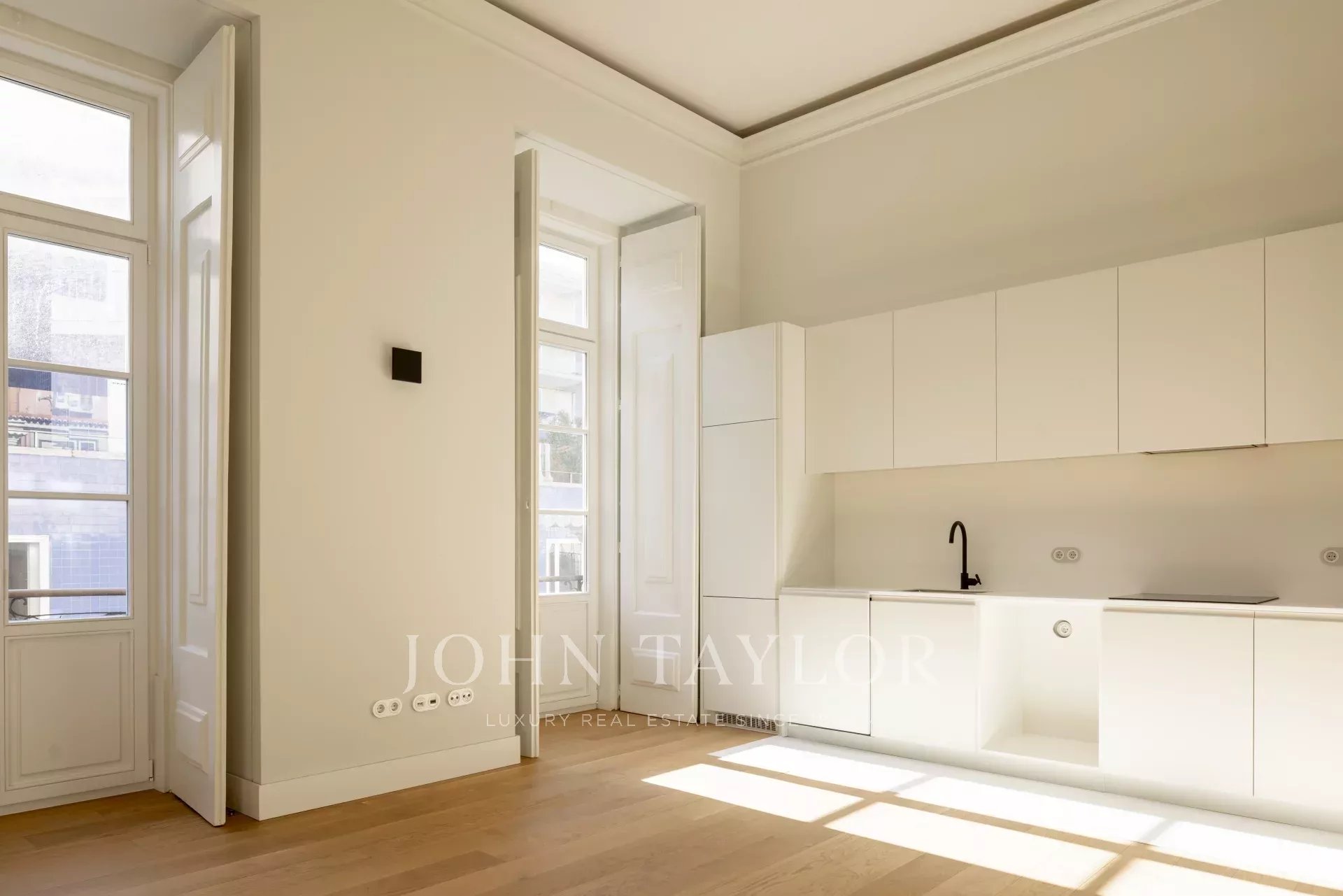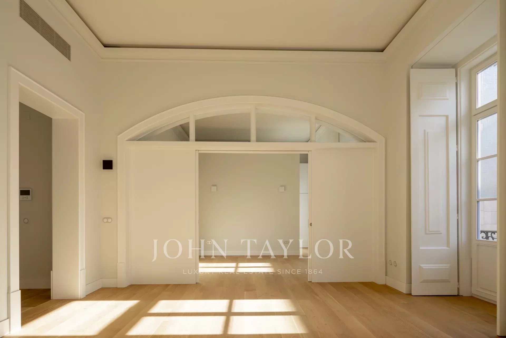 L'appartamento combina finiture di alto livello con materiali di prima qualità e servizi di lusso, creando un ambiente di vita sofisticato ma confortevole. Le ampie finestre offrono un'eccellente luce naturale e viste incantevoli sulle strade storiche di Lisbona.