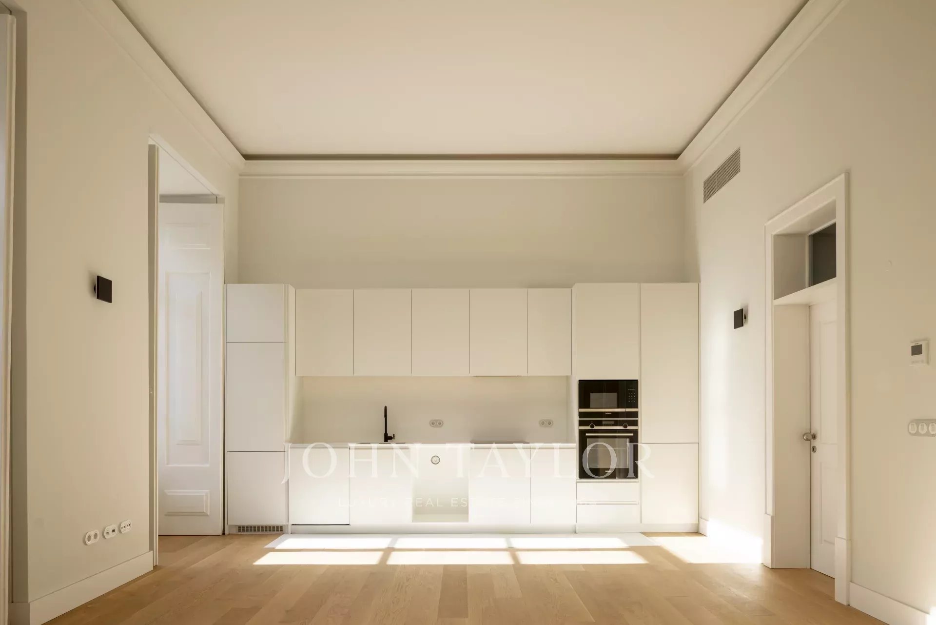 Questo elegante appartamento di 110 m² nell'edificio Alecrim 51, nel Chiado, dispone di 2 spaziose suite, soffitti alti 3 metri, ascensore e raffinata architettura pombalina. Risalente al XVIII secolo, l'edificio è stato accuratamente restaurato per preservare il suo carattere storico e offrire al contempo comfort moderni.