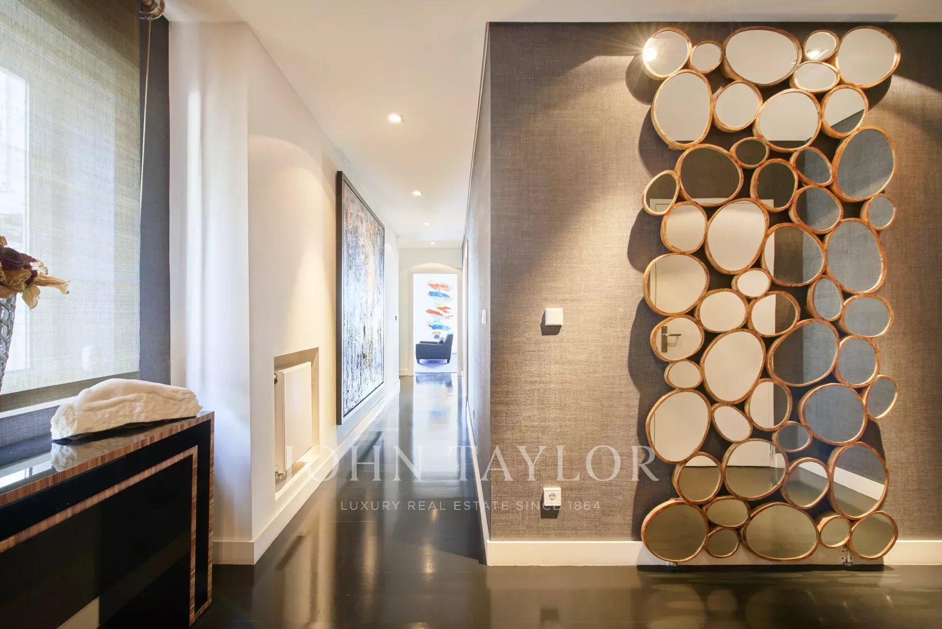 Con 346 m² di superficie lorda privata, la residenza colpisce per le sue proporzioni generose, l'abbondante luce naturale e la transizione senza soluzione di continuità tra spazi abitativi interni ed esterni. L'ampia zona sociale comprende uno spazioso soggiorno e una sala da pranzo che si aprono su un balcone con una vista mozzafiato sul fiume: un ambiente ideale sia per il relax che per intrattenimenti sofisticati.