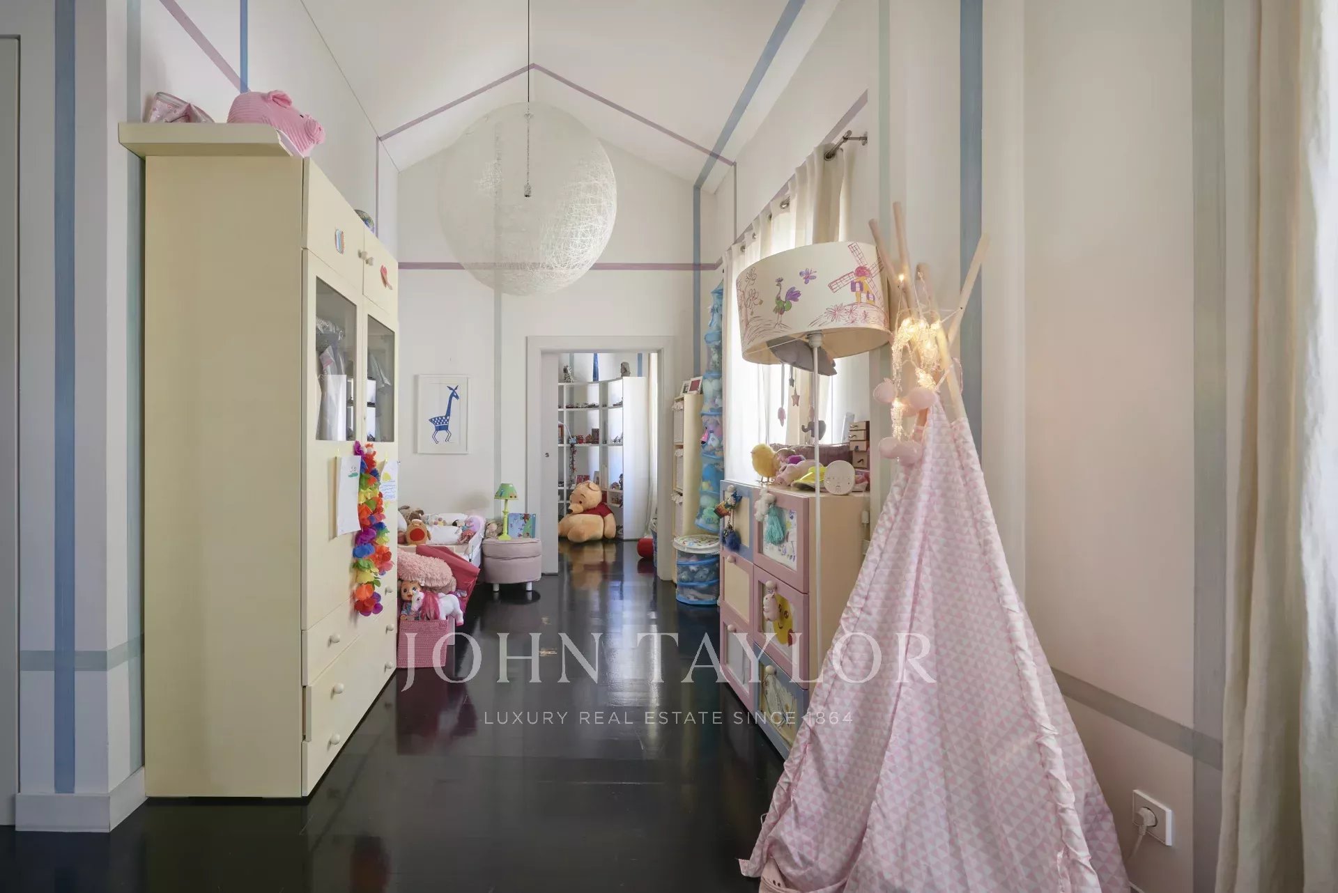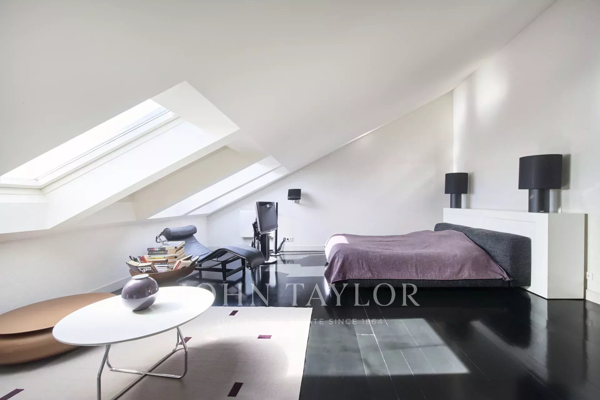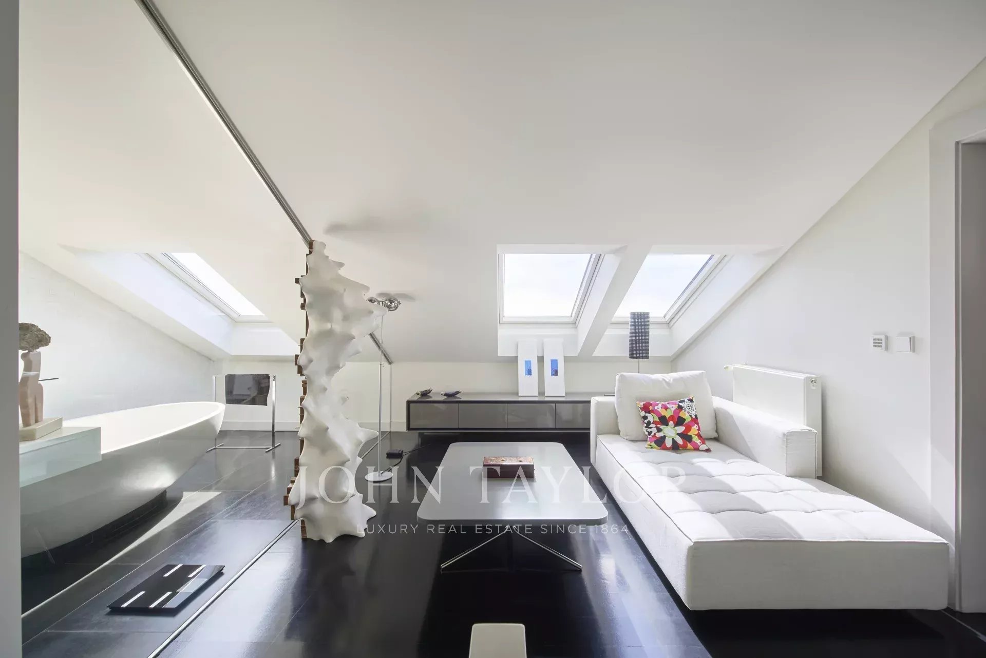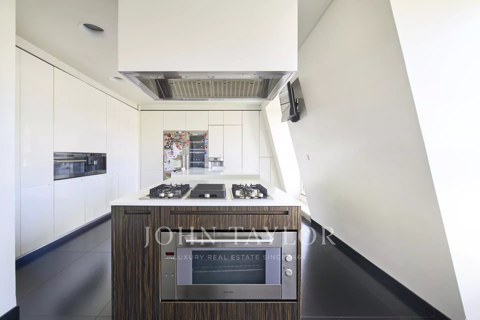 La moderna cucina completamente attrezzata comprende un'isola centrale e un'accogliente zona colazione, ideale per la vita di tutti i giorni. In tutta la casa, le finiture di alta qualità, i soffitti inclinati, le finestre Velux e le linee pulite e contemporanee riflettono un design ponderato e un'eccezionale attenzione ai dettagli.