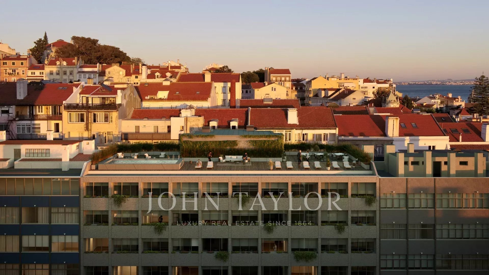 Il condominio Infante Residences ha accesso esclusivo a un elegante tetto con piscina e area di svago, perfetto per godersi la vista panoramica sulla capitale e sul fiume Tago.