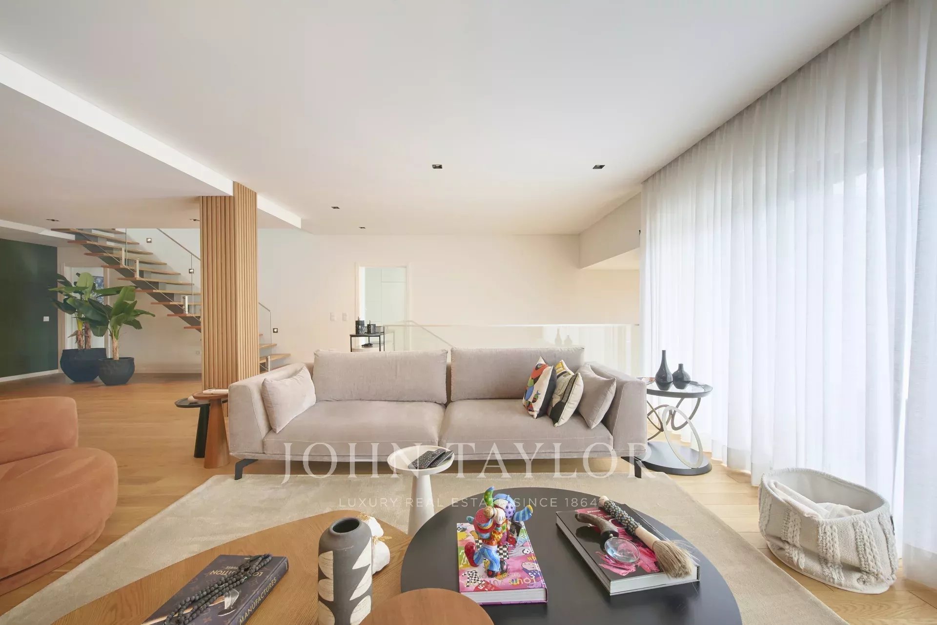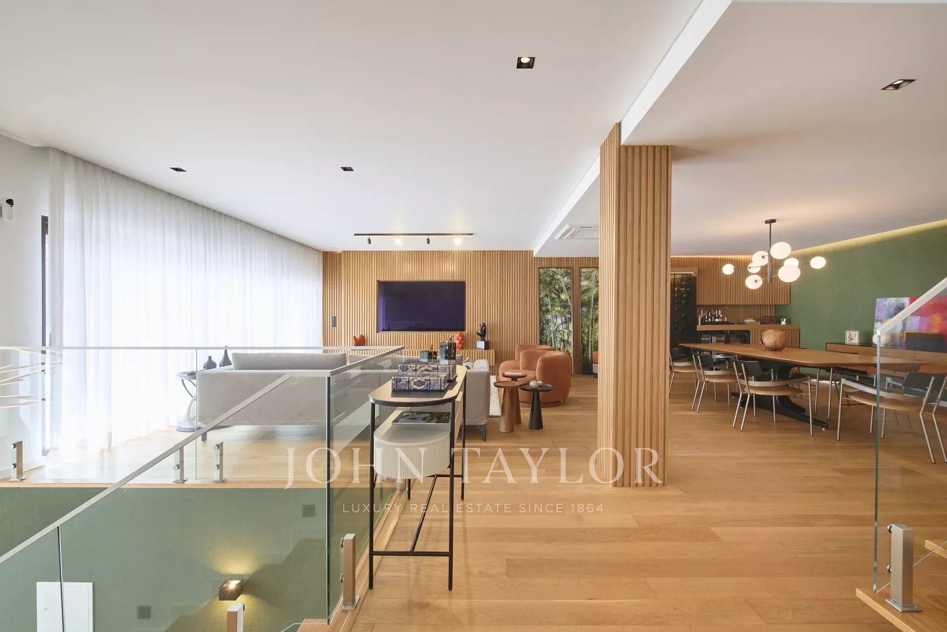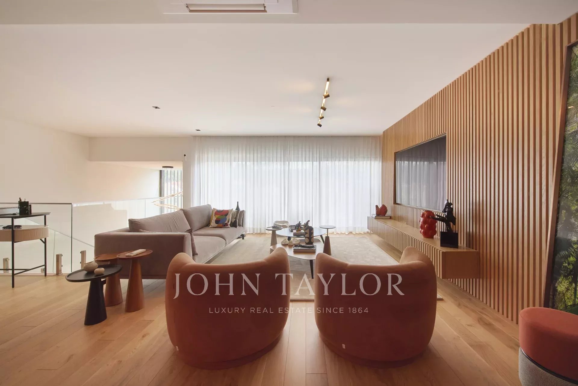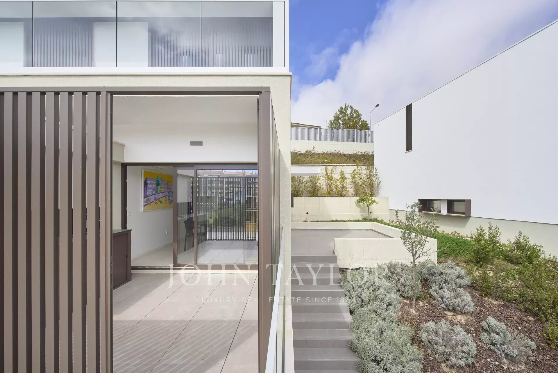 Situata in un prestigioso condominio privato a Estoril, questa moderna residenza su tre livelli offre 445 m² di superficie costruita, progettata con eleganza contemporanea e materiali di alta qualità.