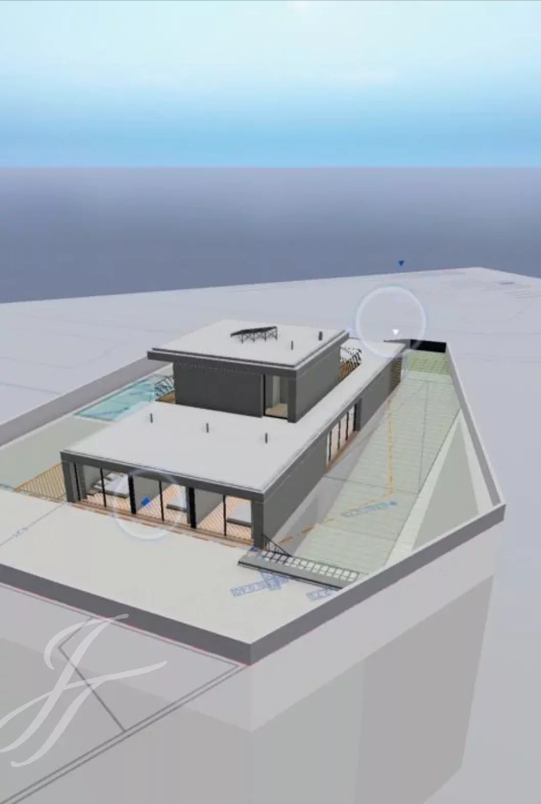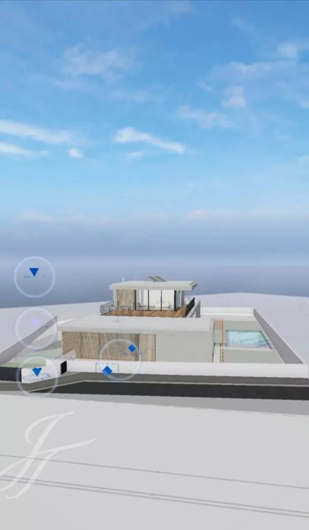 Al piano terra troviamo il soggiorno, una cucina a pianta aperta completamente attrezzata con accesso diretto al giardino e alla piscina. Sullo stesso piano si trovano un ufficio, un bagno per gli ospiti e 3 camere da letto con bagno privato e armadi a muro.