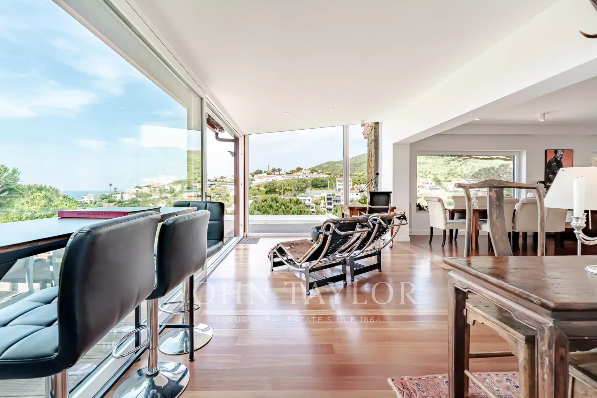 La terrazza esterna e la piscina privata sono posizionate in modo da massimizzare la vista sul mare, offrendo un forte legame con il paesaggio circostante e una totale privacy. Ogni livello della casa sfrutta l'orientamento e la vista, rendendola una rarità in questa parte della costa.