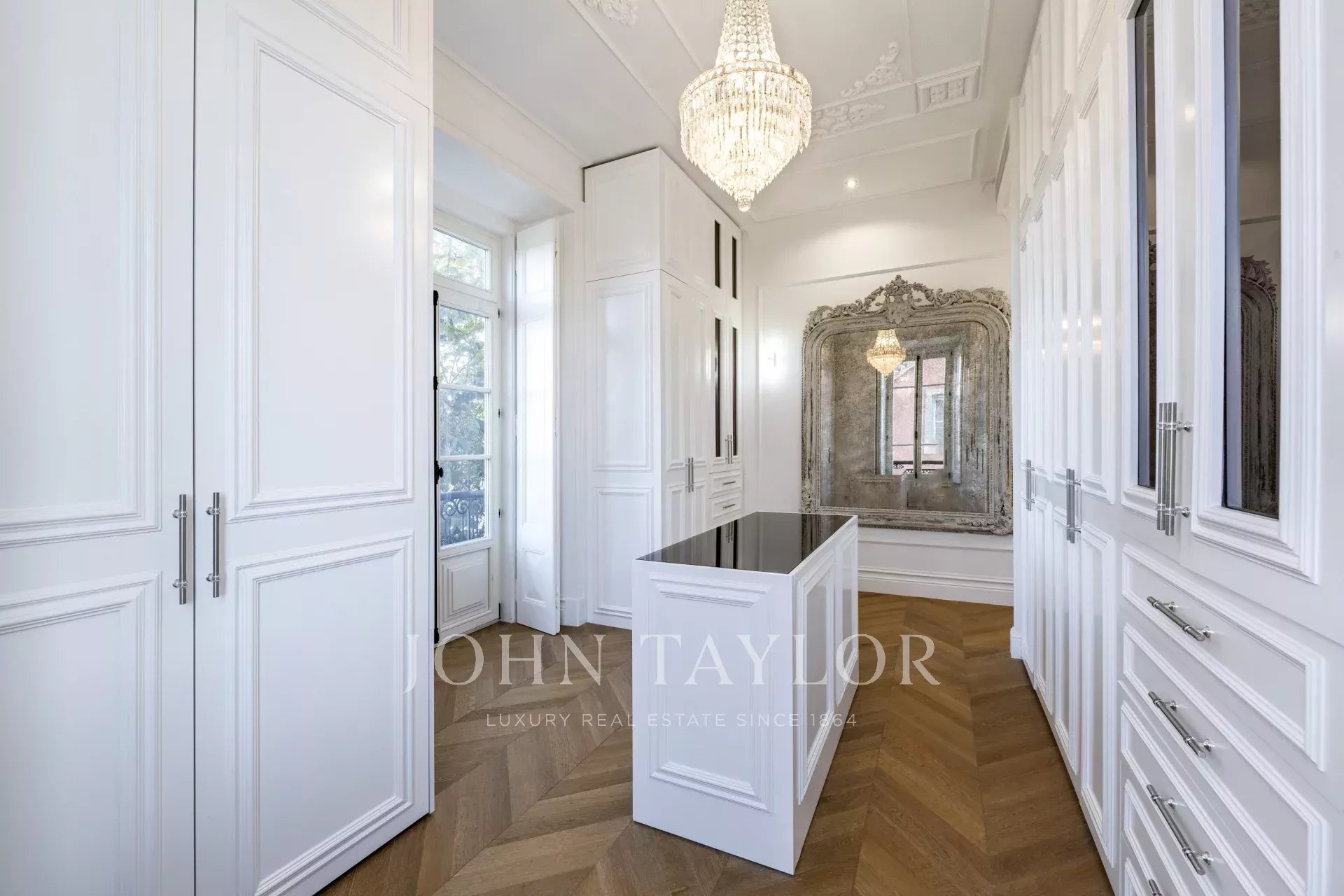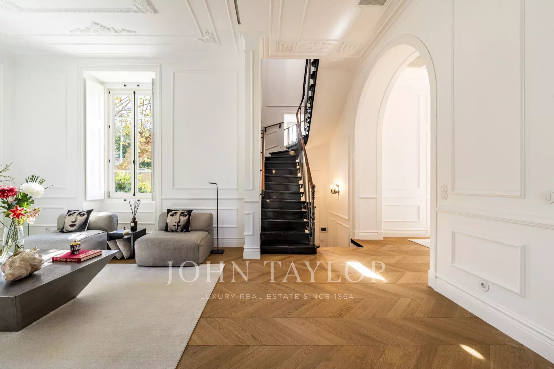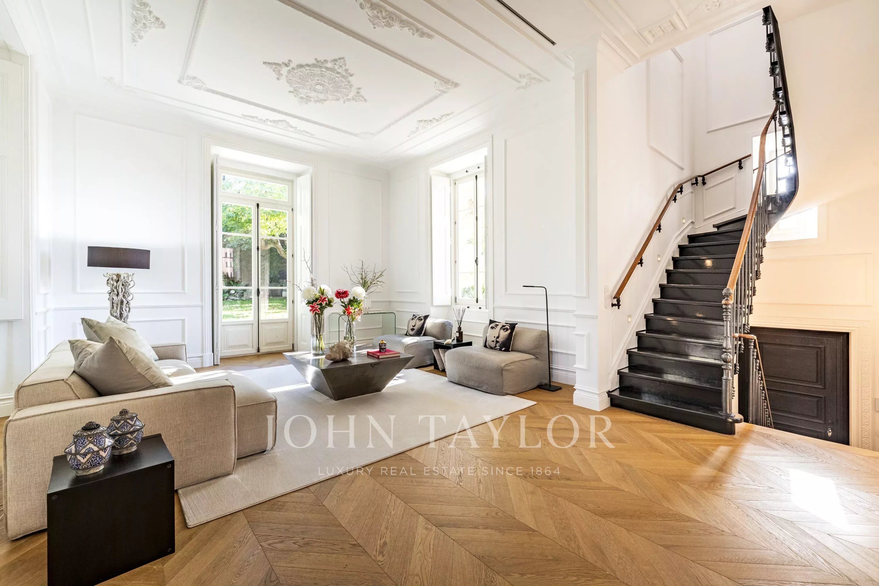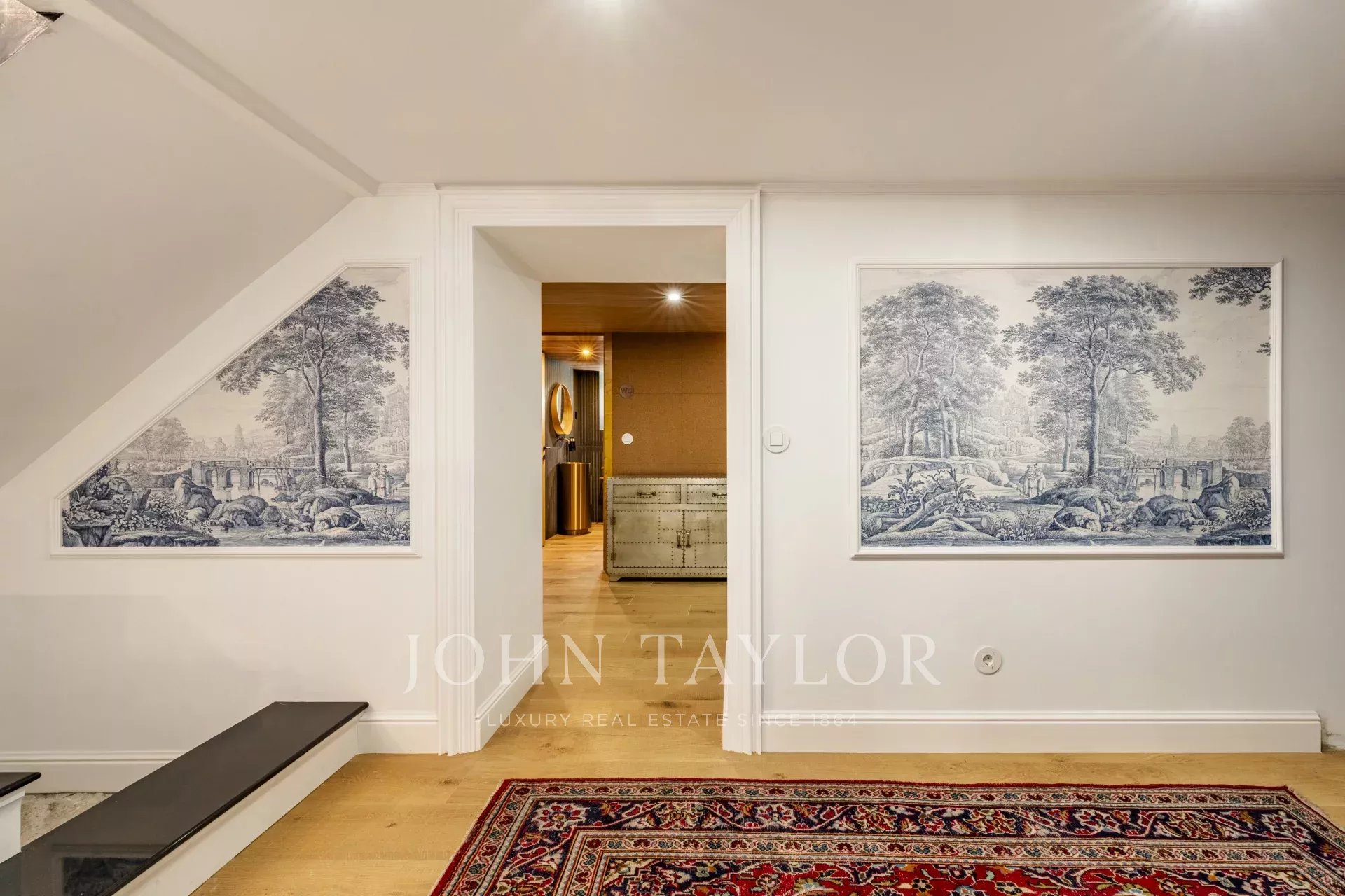 Distribuito su quattro piani, il piano terra è caratterizzato da un ampio soggiorno che si apre su un giardino splendidamente paesaggistico, collegando senza soluzione di continuità gli spazi interni ed esterni. Una sala da pranzo formale e una cucina completamente attrezzata sono perfette per intrattenimenti sia informali che formali.