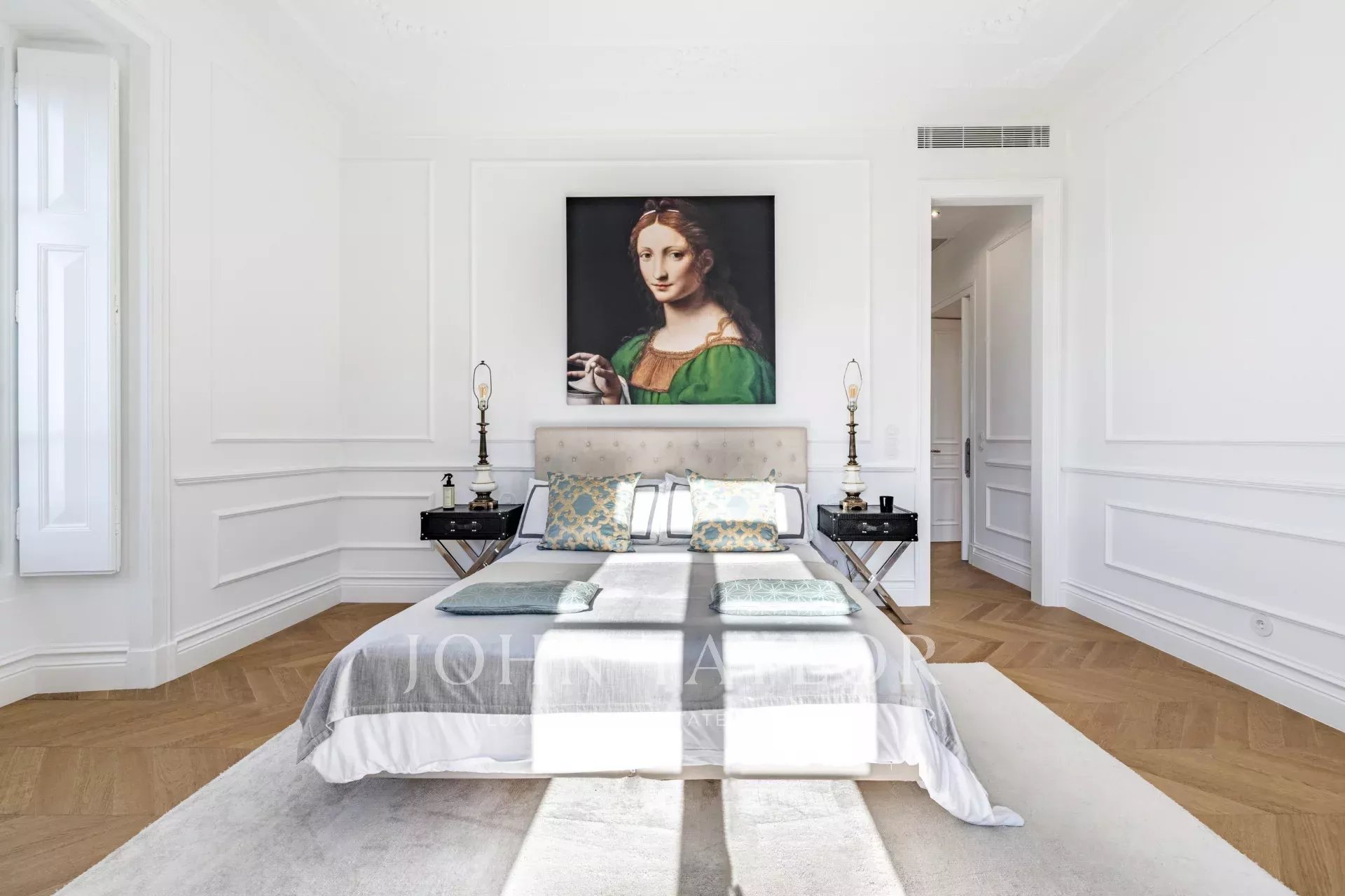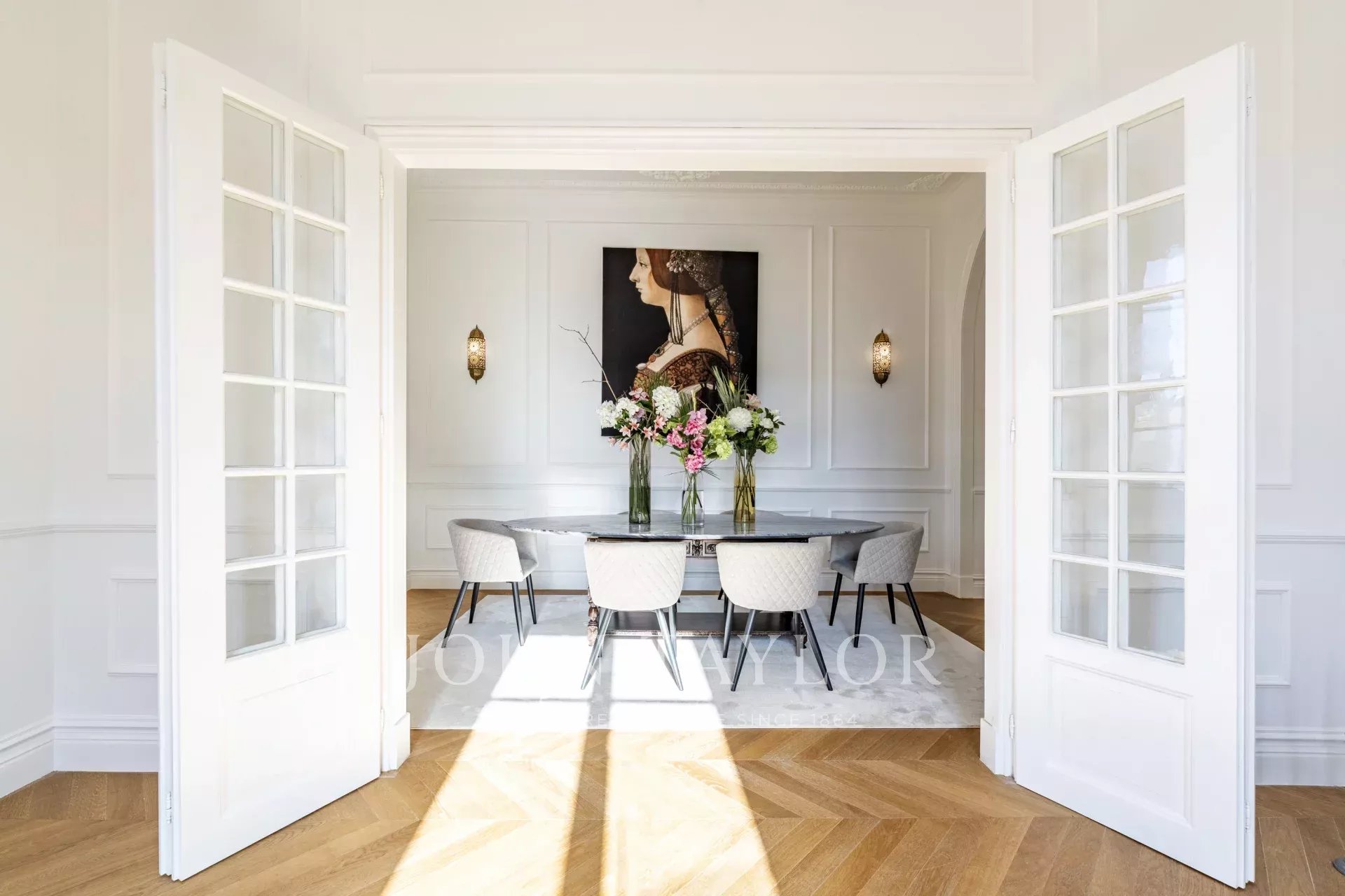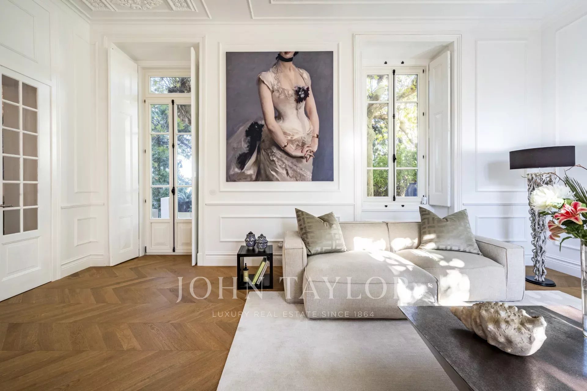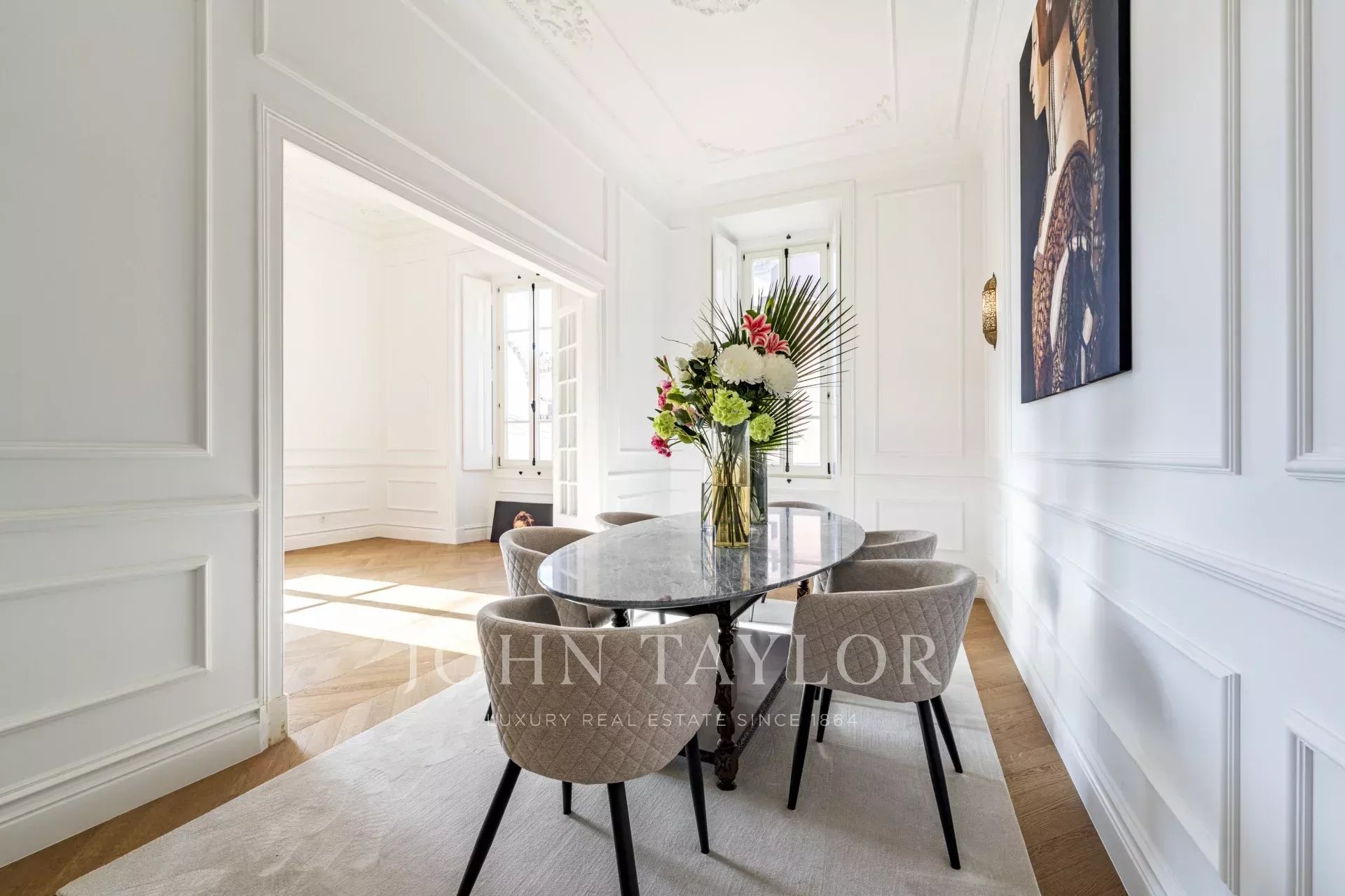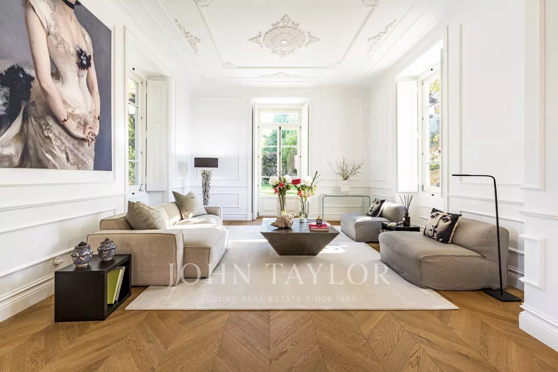 Distribuito su quattro piani, il piano terra è caratterizzato da un ampio soggiorno che si apre su un giardino splendidamente paesaggistico, collegando senza soluzione di continuità gli spazi interni ed esterni. Una sala da pranzo formale e una cucina completamente attrezzata sono perfette per intrattenimenti sia informali che formali.