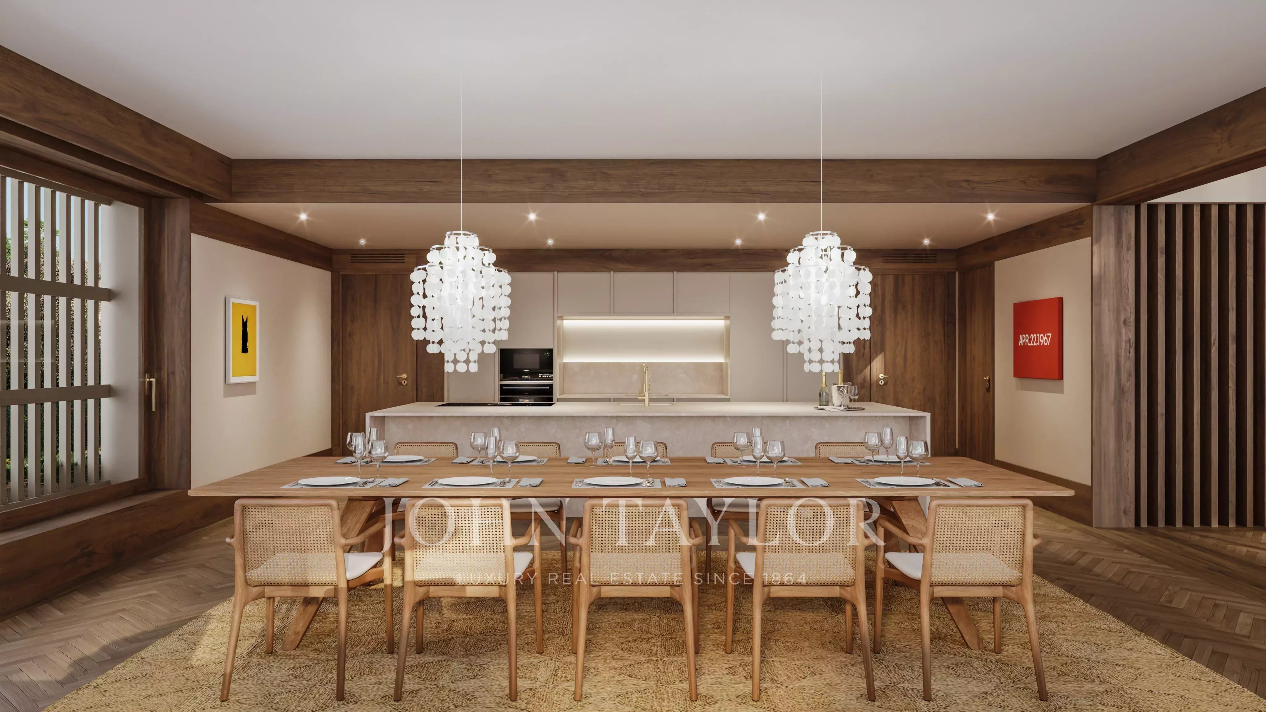Al piano superiore si trovano una seconda zona giorno, una suite padronale e due camere da letto con bagno privato, tutte con accesso a un ampio balcone con vista mozzafiato.