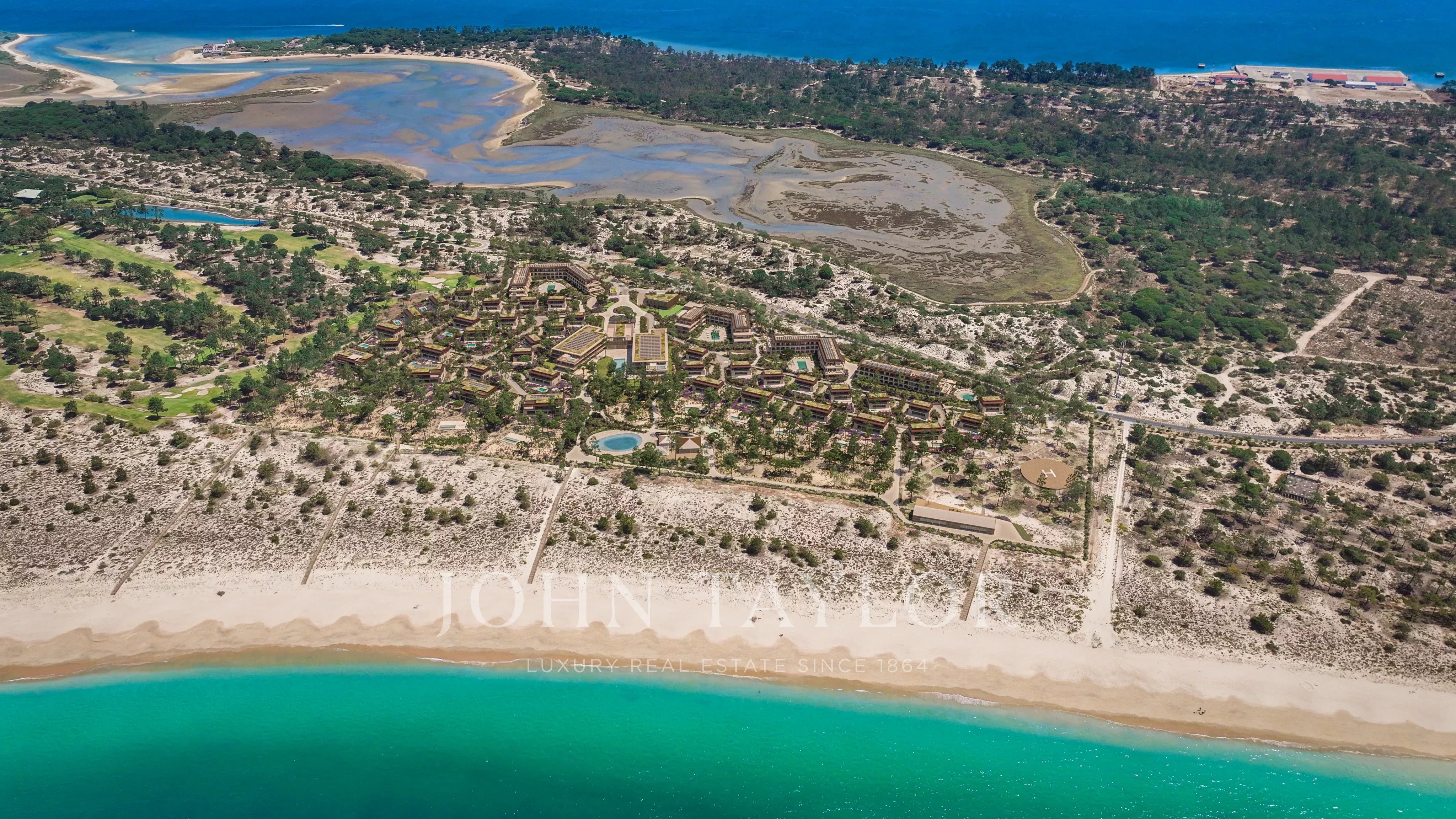 Il resort è attualmente in fase di sviluppo e comprenderà un lussuoso hotel a 5 stelle, 37 ville sulla spiaggia e 71 eleganti appartamenti, tutti progettati secondo gli standard più elevati. I servizi includono reception 24 ore su 24, parcheggio sotterraneo, campi da padel e da tennis, una spa, piscine di acqua salata, un beach club, un miniclub, una palestra e un eliporto. Si trova inoltre a soli 5 minuti dal rinomato Troia Golf Club.