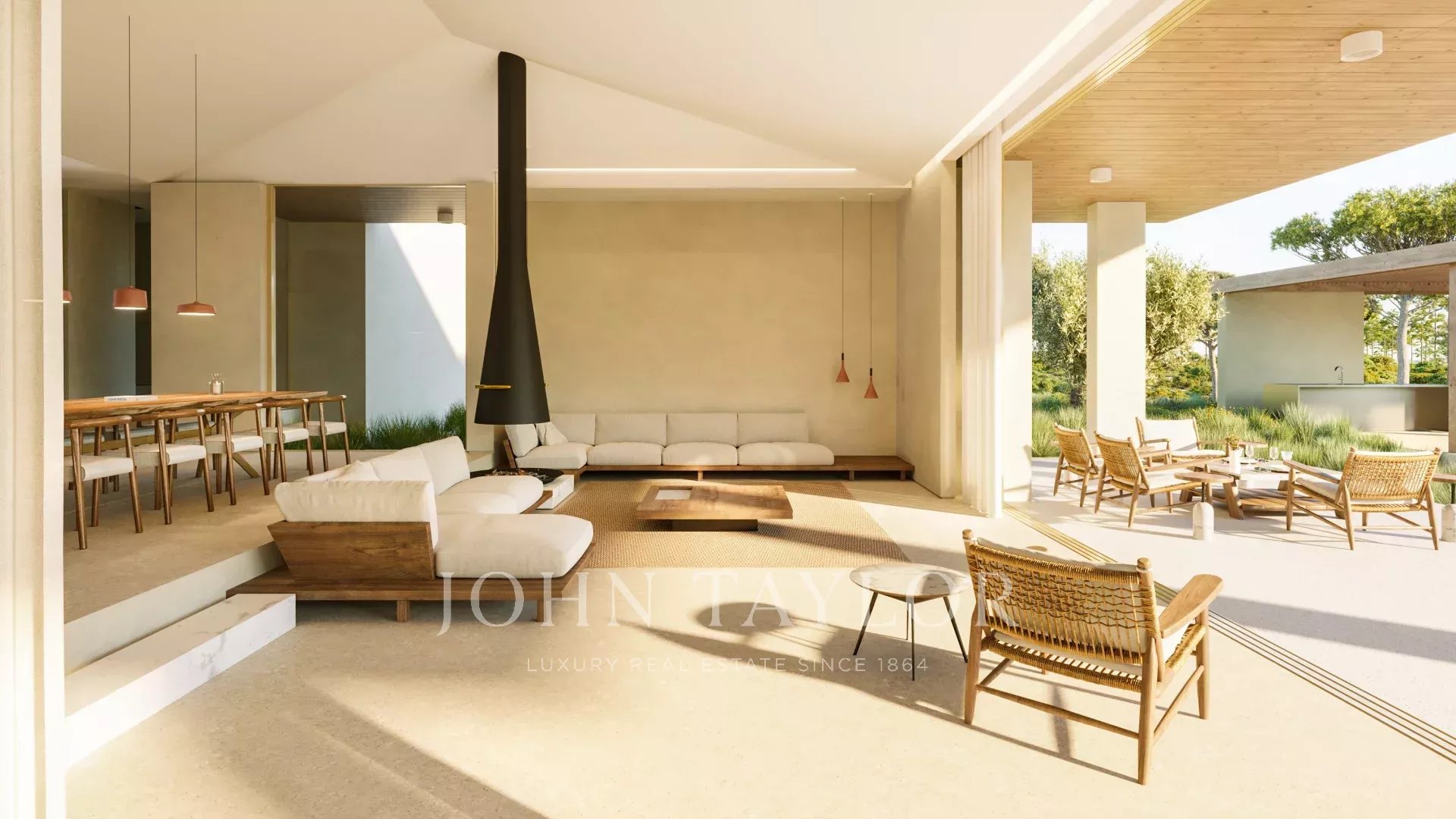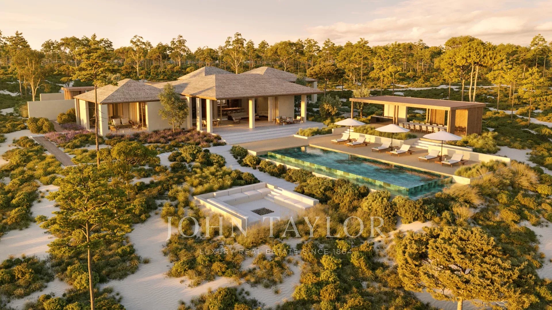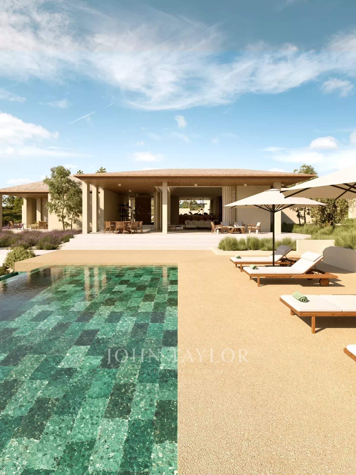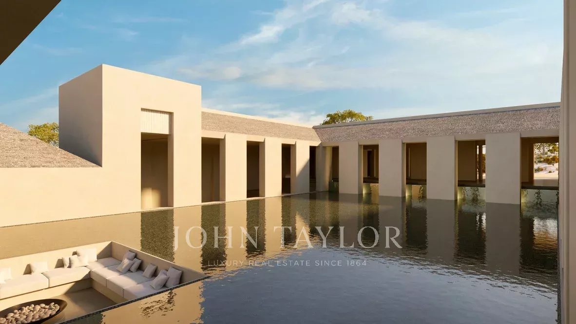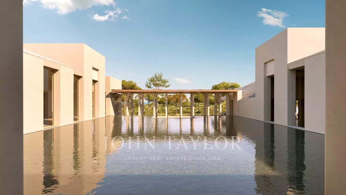 Situata su un terreno di 10.000 m², la villa di 526 m² dispone di due spaziose suite e di due camere da letto aggiuntive, ognuna con una terrazza privata. La cucina, la sala da pranzo e il soggiorno a pianta aperta si aprono sulla vista di uliveti e querce da sughero. Gli spazi esterni comprendono due piscine, una a sfioro di 15 x 5 metri e una per bambini di 14 mq, oltre a una cucina all'aperto, un caminetto, ampie terrazze per un totale di 139 mq e un posto auto coperto per due auto.