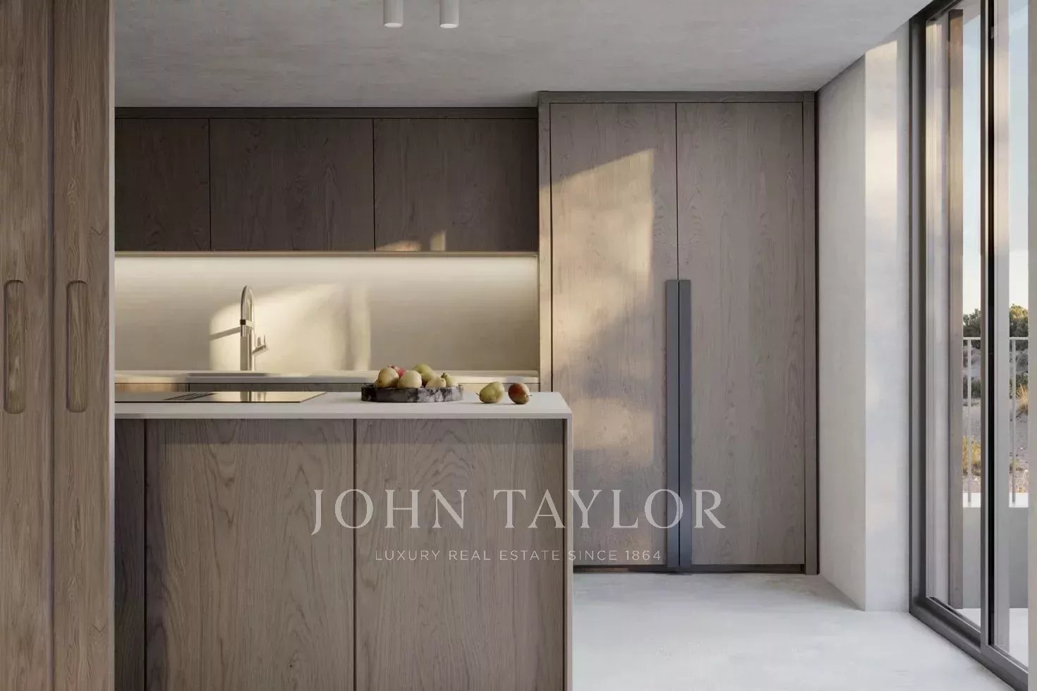 Le finiture comprendono pareti interne in intonaco tipo Marmorino beige, finestre a doppio vetro con telai in alluminio grigio, pergole e persiane in legno di Cambala, che combinano il calore naturale con la durata e il design contemporaneo.