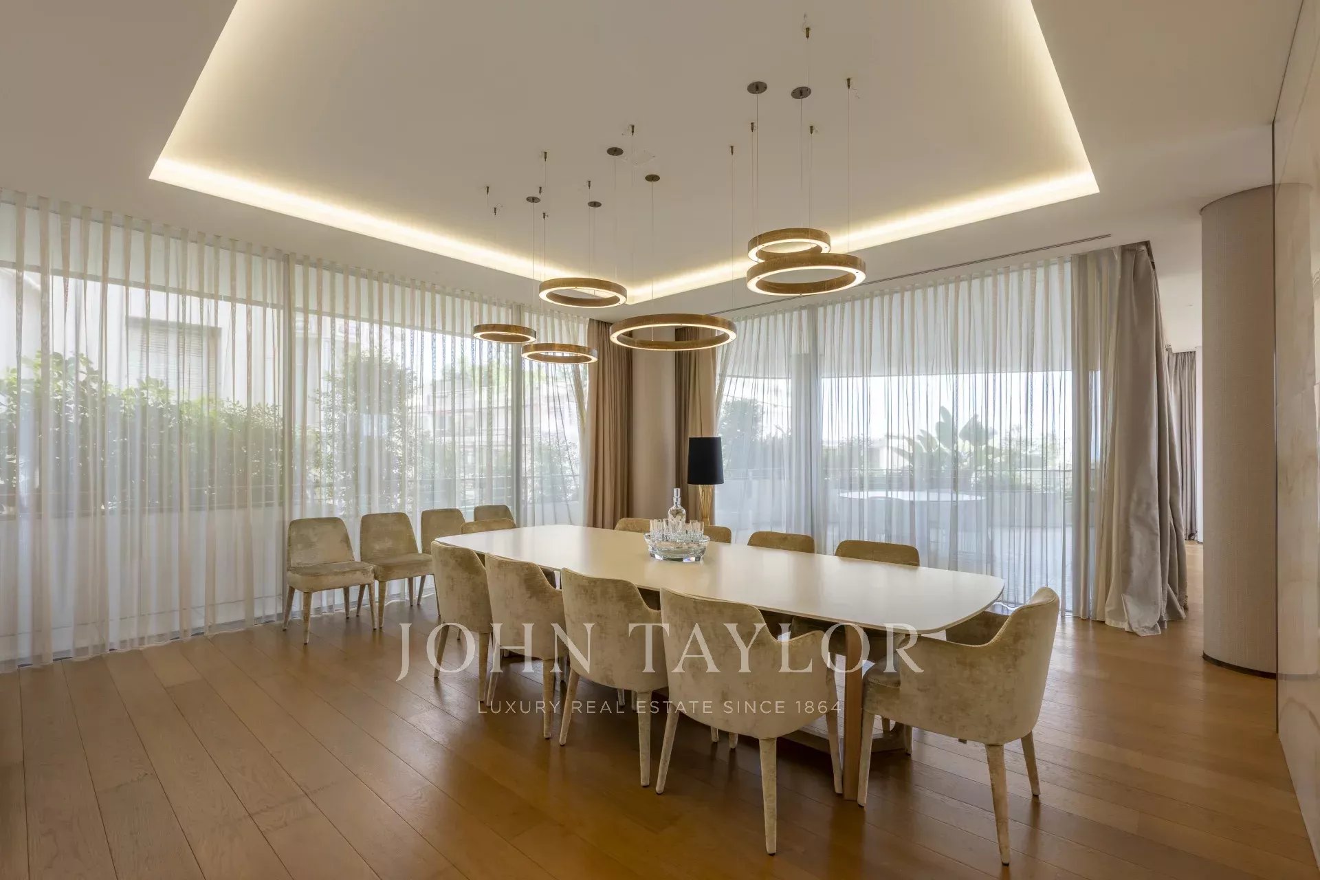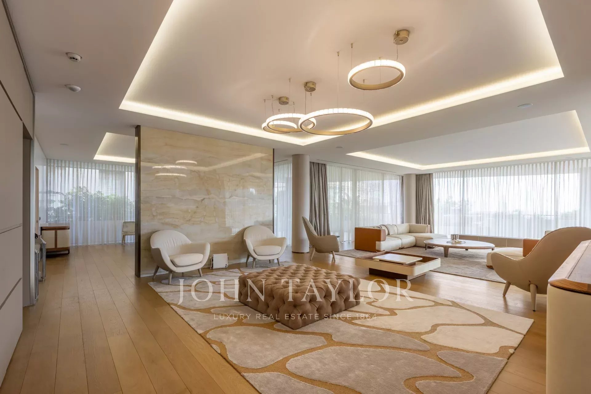 Composto da sette ambienti principali, l’appartamento si distingue per l’ampia terrazza che offre una vista spettacolare sui giardini e sul paesaggio circostante. Il risultato è uno spazio abitativo armonioso, dove prestigio, comfort e privacy si fondono perfettamente.