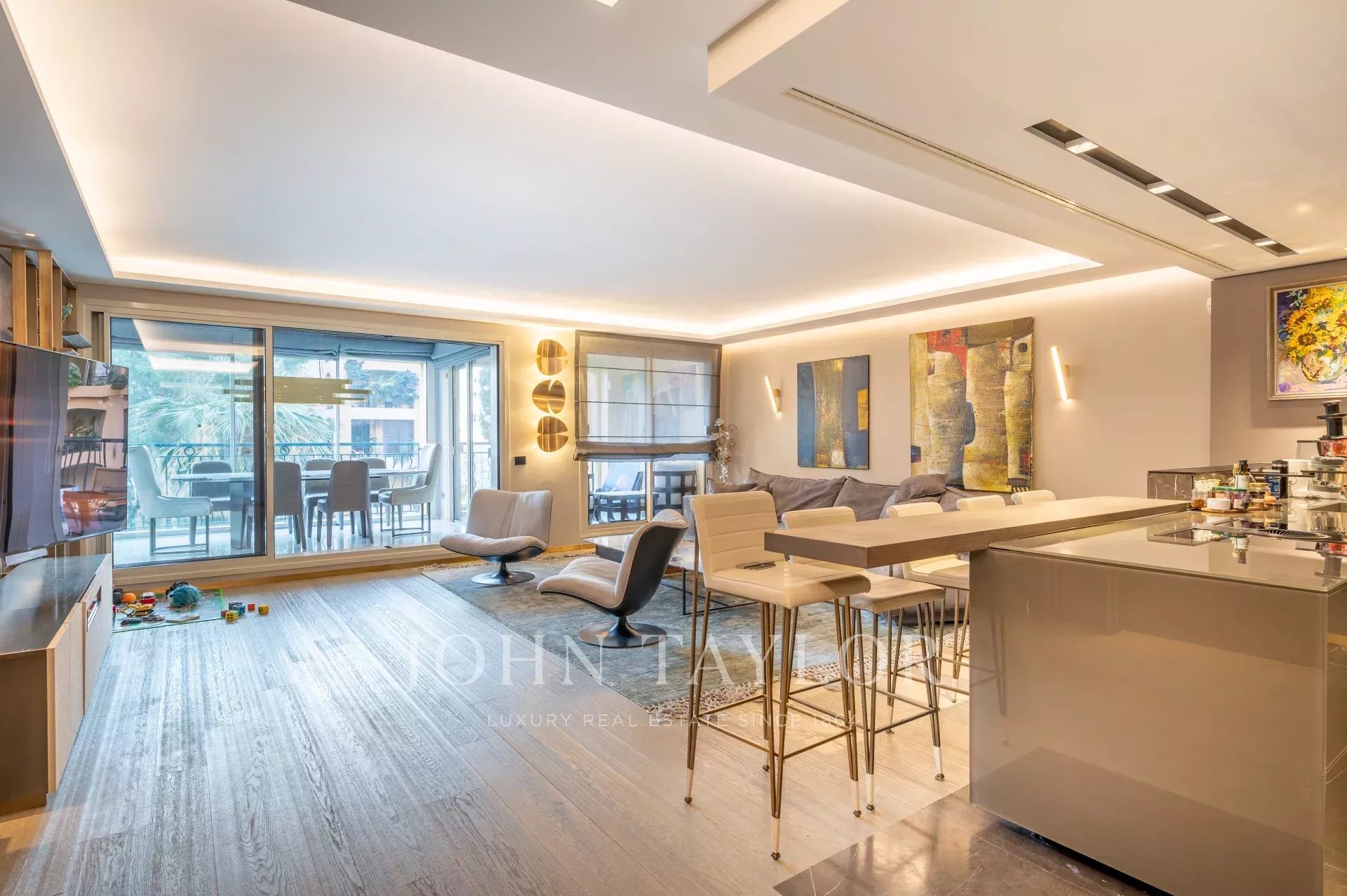 Con una superficie di 245 m², questo elegante appartamento, completamente ristrutturato in un lussuoso stile contemporaneo, è esposto a sud ed è luminoso e soleggiato.