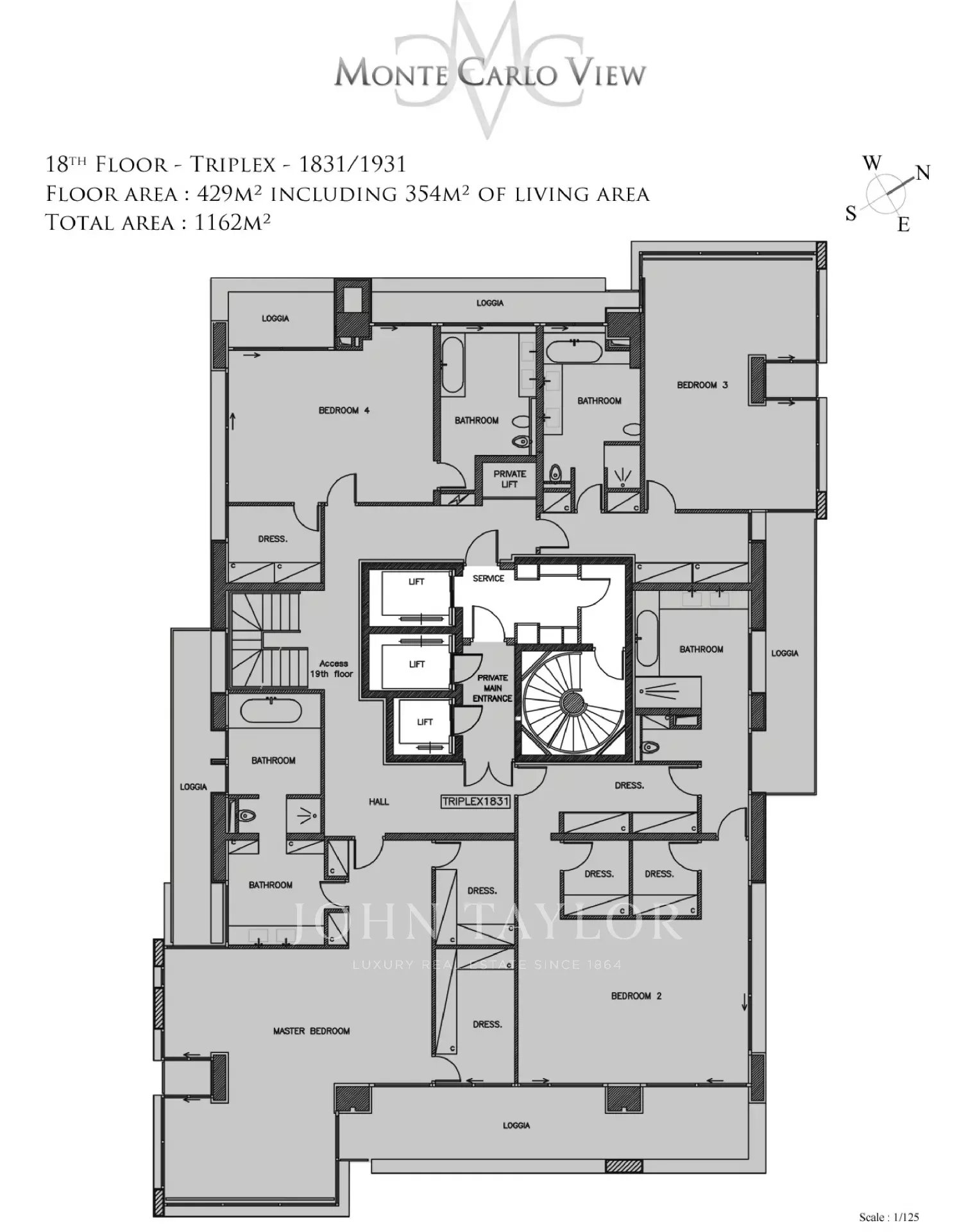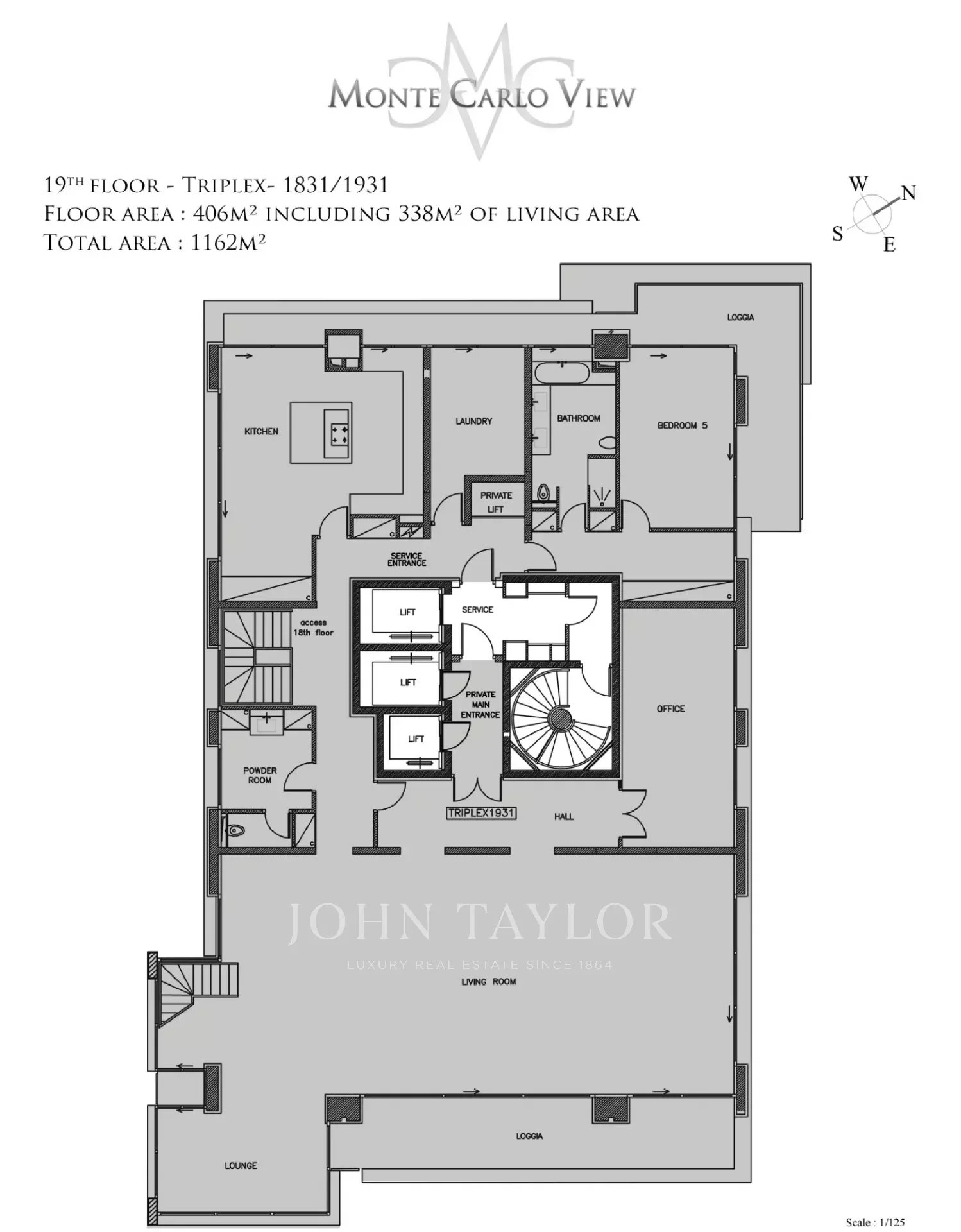 Questo appartamento padronale unico nel suo genere dispone di una piscina privata all'ultimo piano e di un ascensore privato che serve tutti e tre i piani dell'appartamento.