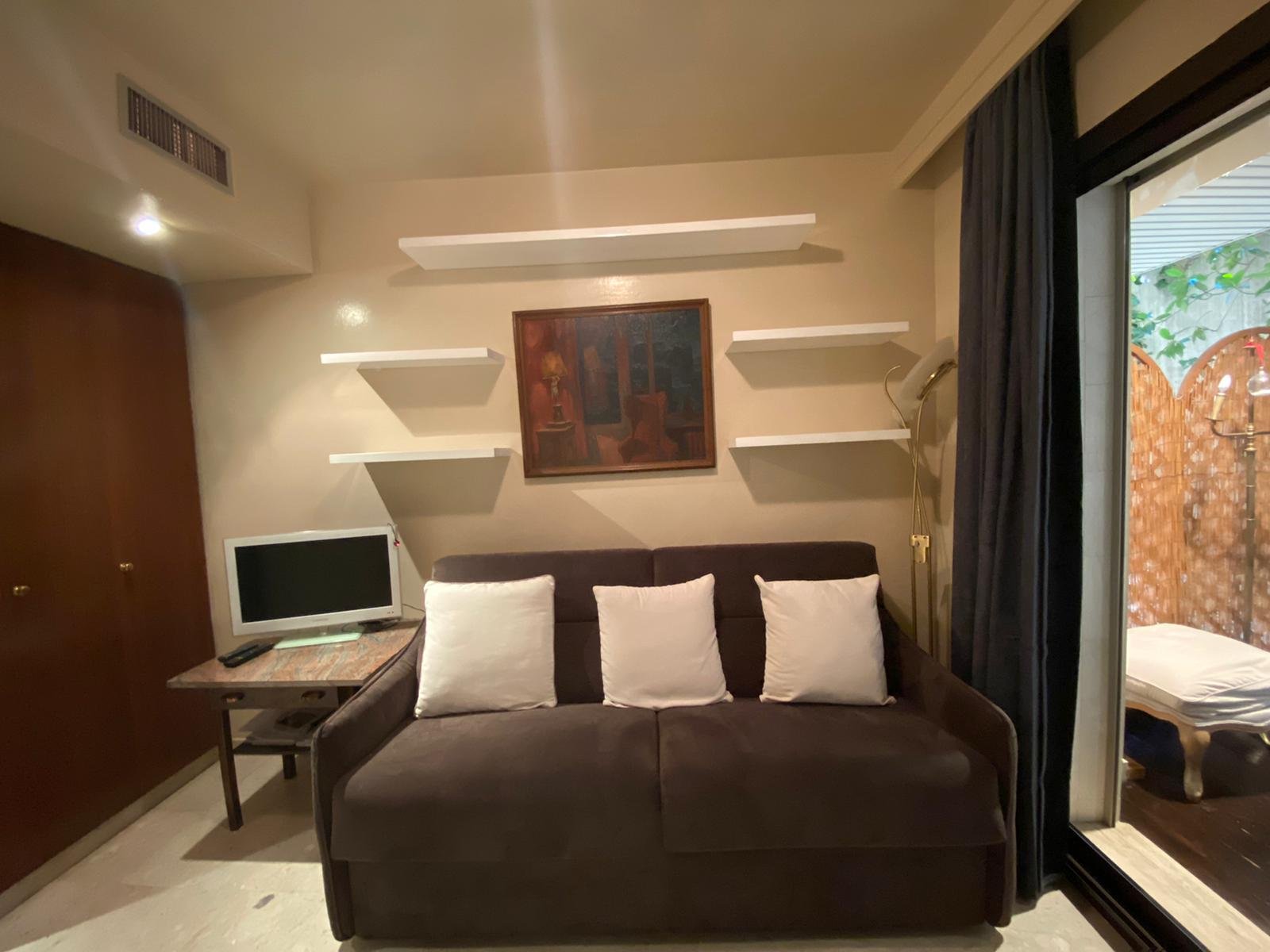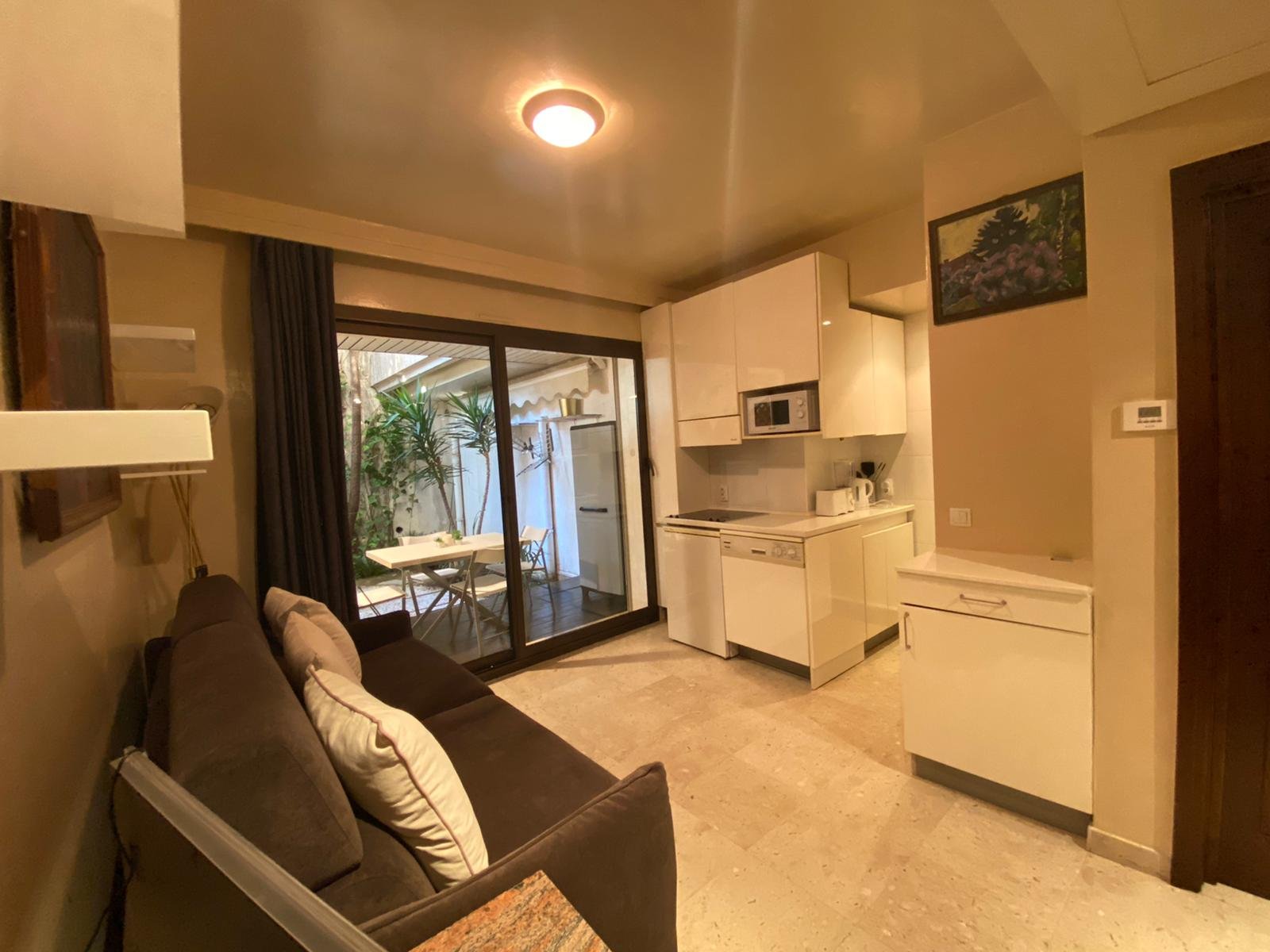 In affitto a MONACO, settore Moneghetti, LE BEVERLY PALACE, blocco A, residenza di lusso, monolocale arredato (24 m²) con giardino privato recintato (17 m²).