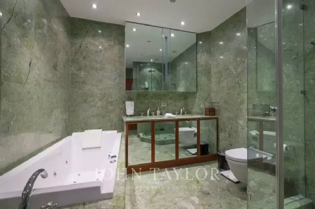 Un bagno supplementare e una toilette per gli ospiti con doccia, che aggiungono un tocco di funzionalità e raffinatezza a questo spazio abitativo esclusivo.