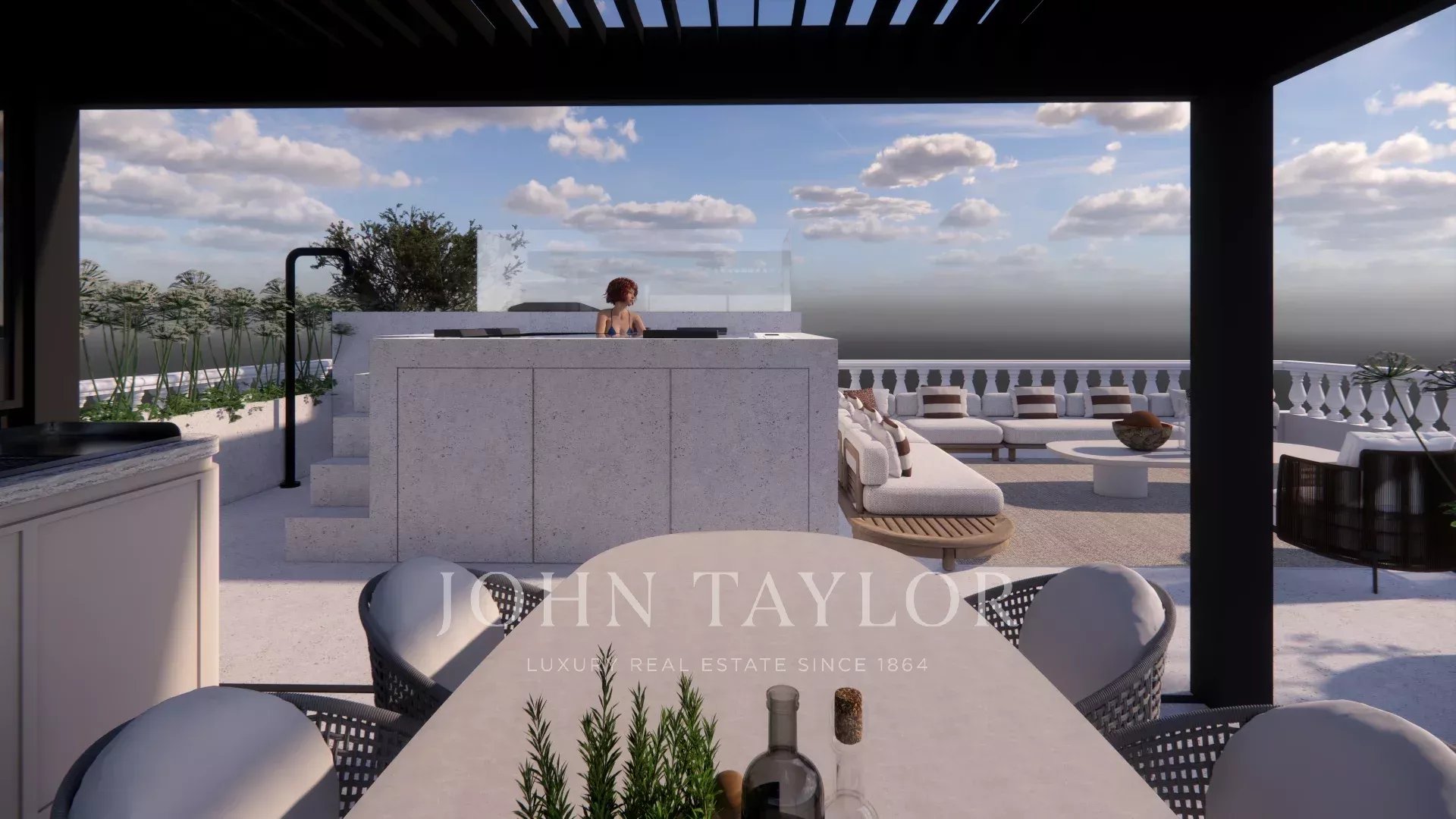 Due grandi terrazze con zona relax. A completare la proprietà, un roof esclusivo con cucina estiva e jacuzzi privata: uno spazio unico per rilassarsi o ricevere ospiti con stile, sopra i tetti di Monte-Carlo.