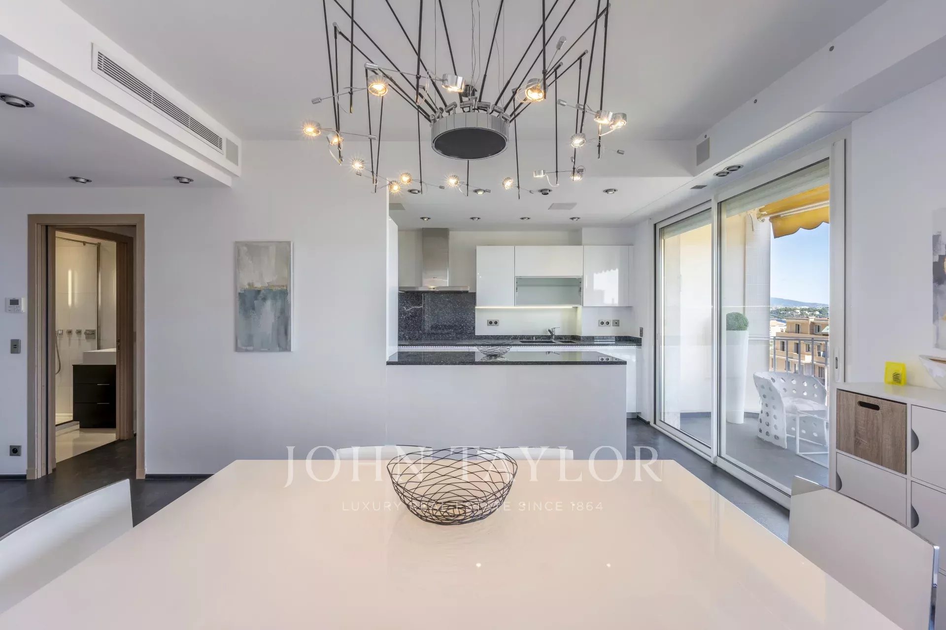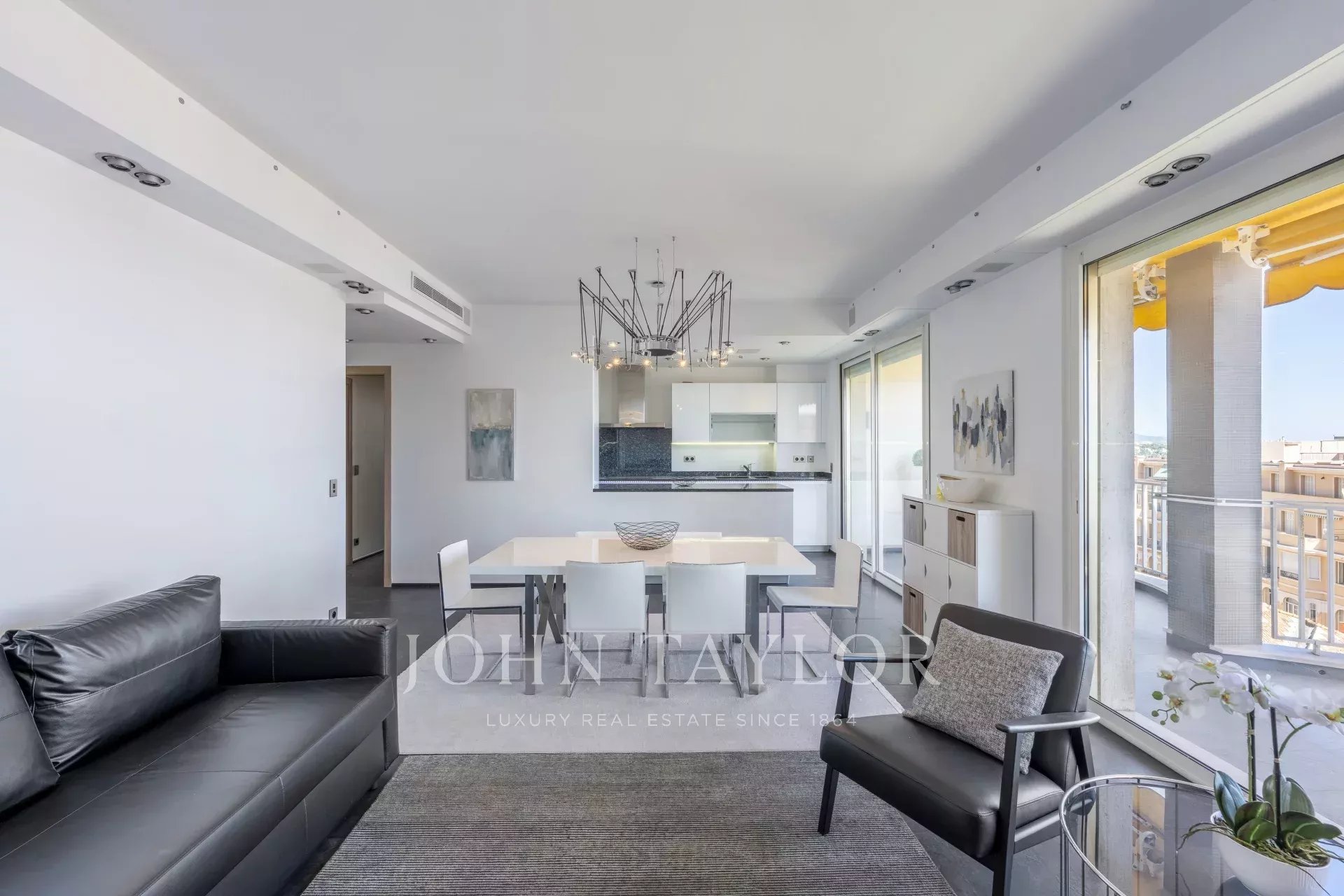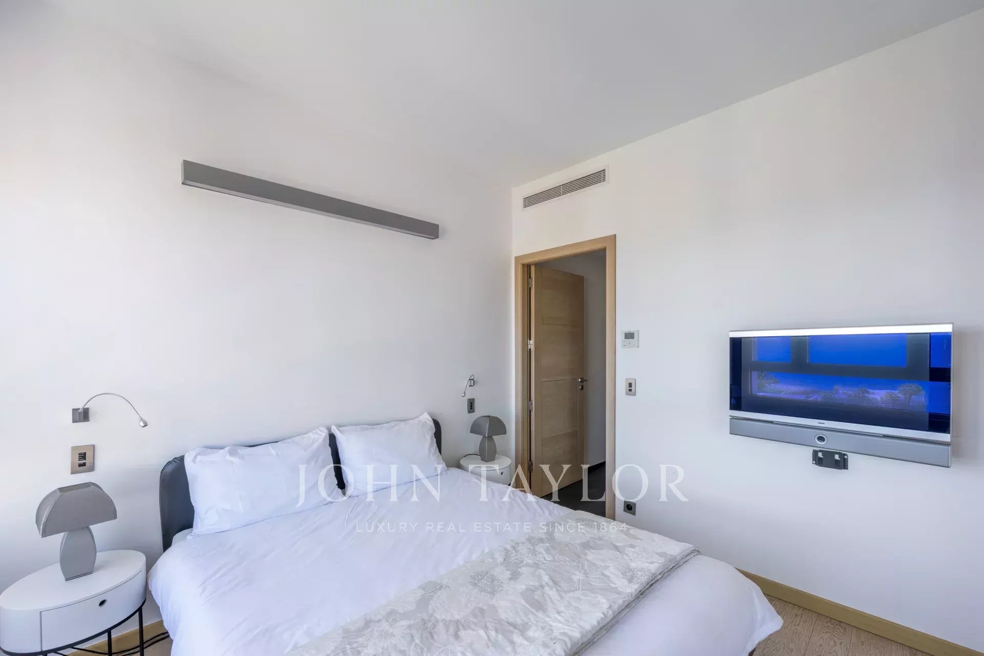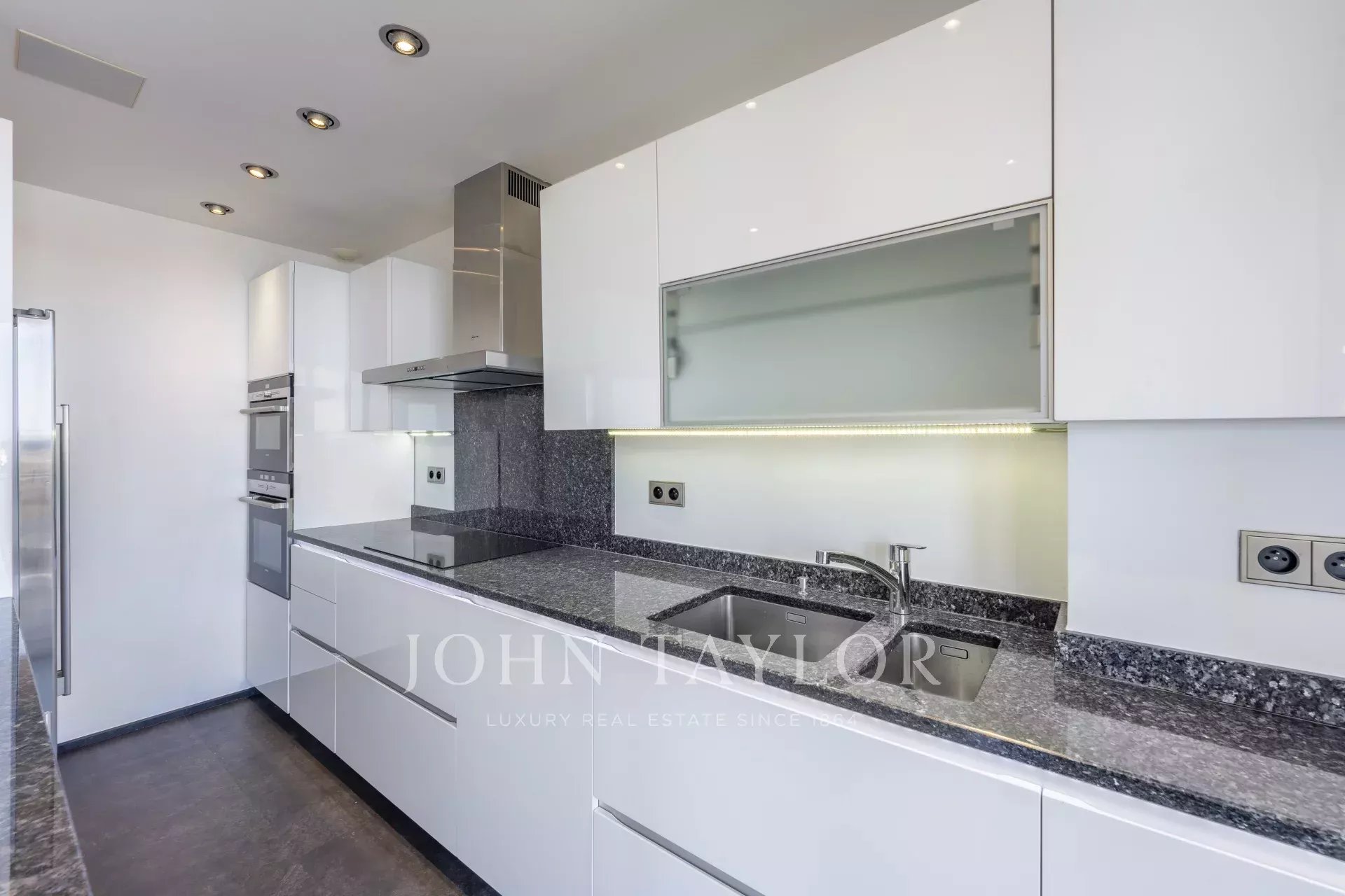 Questo splendido appartamento con tre camere da letto è composto da un ingresso, un ampio soggiorno con zona pranzo e una cucina a pianta aperta completamente attrezzata, che si apre su una grande terrazza con vista panoramica sul mare. La suite padronale dispone di bagno privato e balcone privato. Una seconda camera da letto con doccia e un WC per gli ospiti con ripostiglio completano l'insieme.