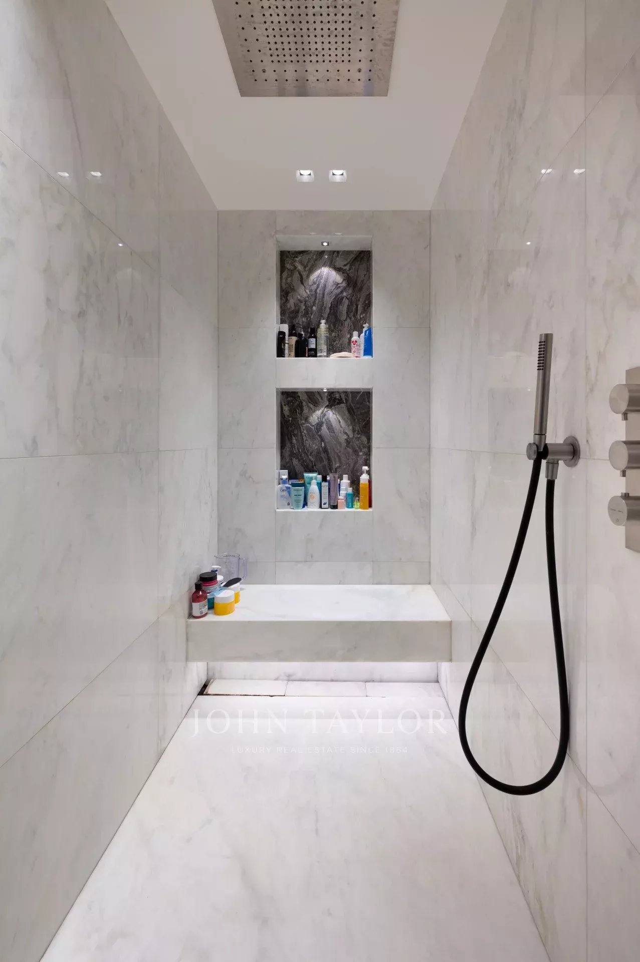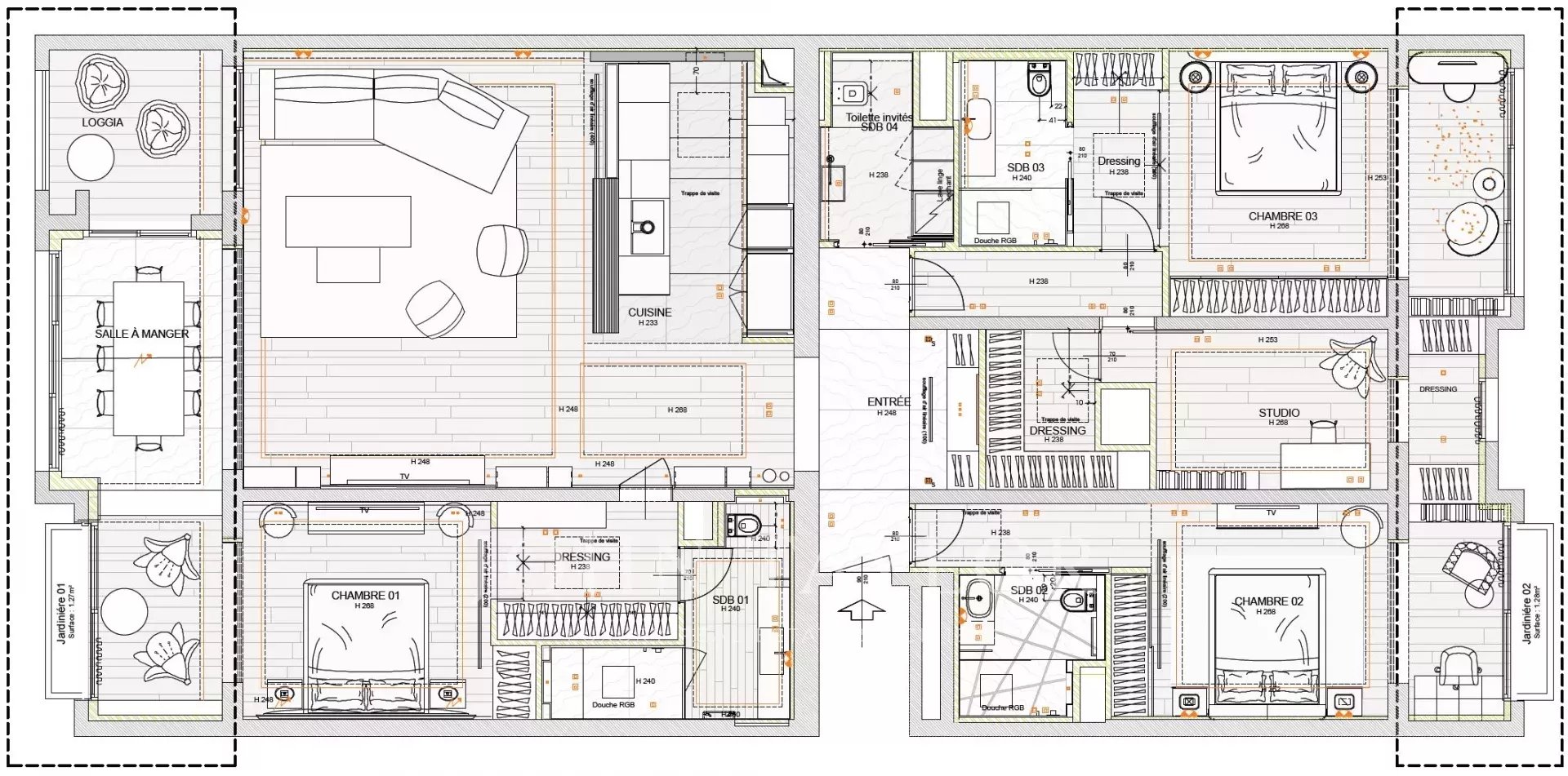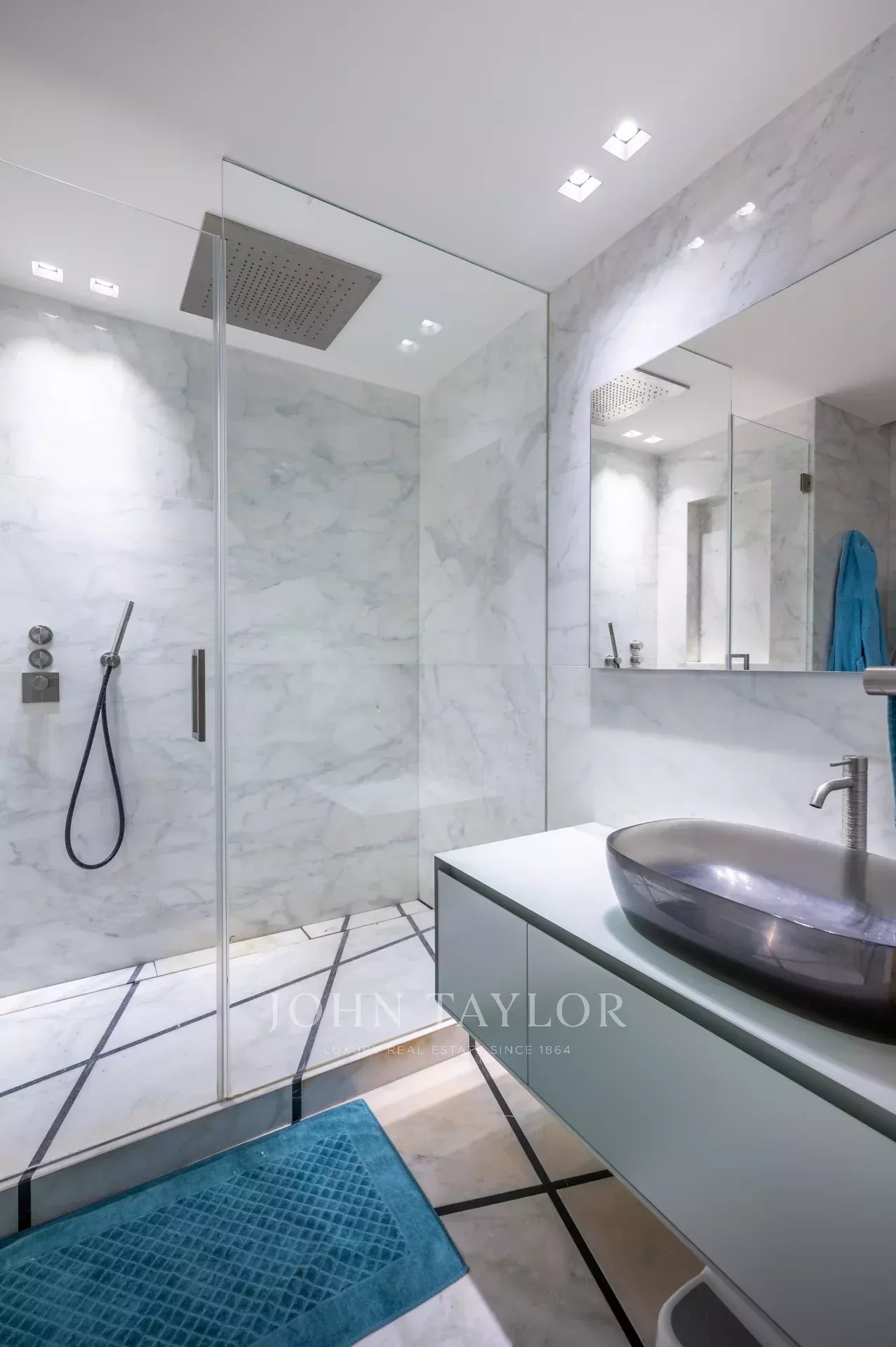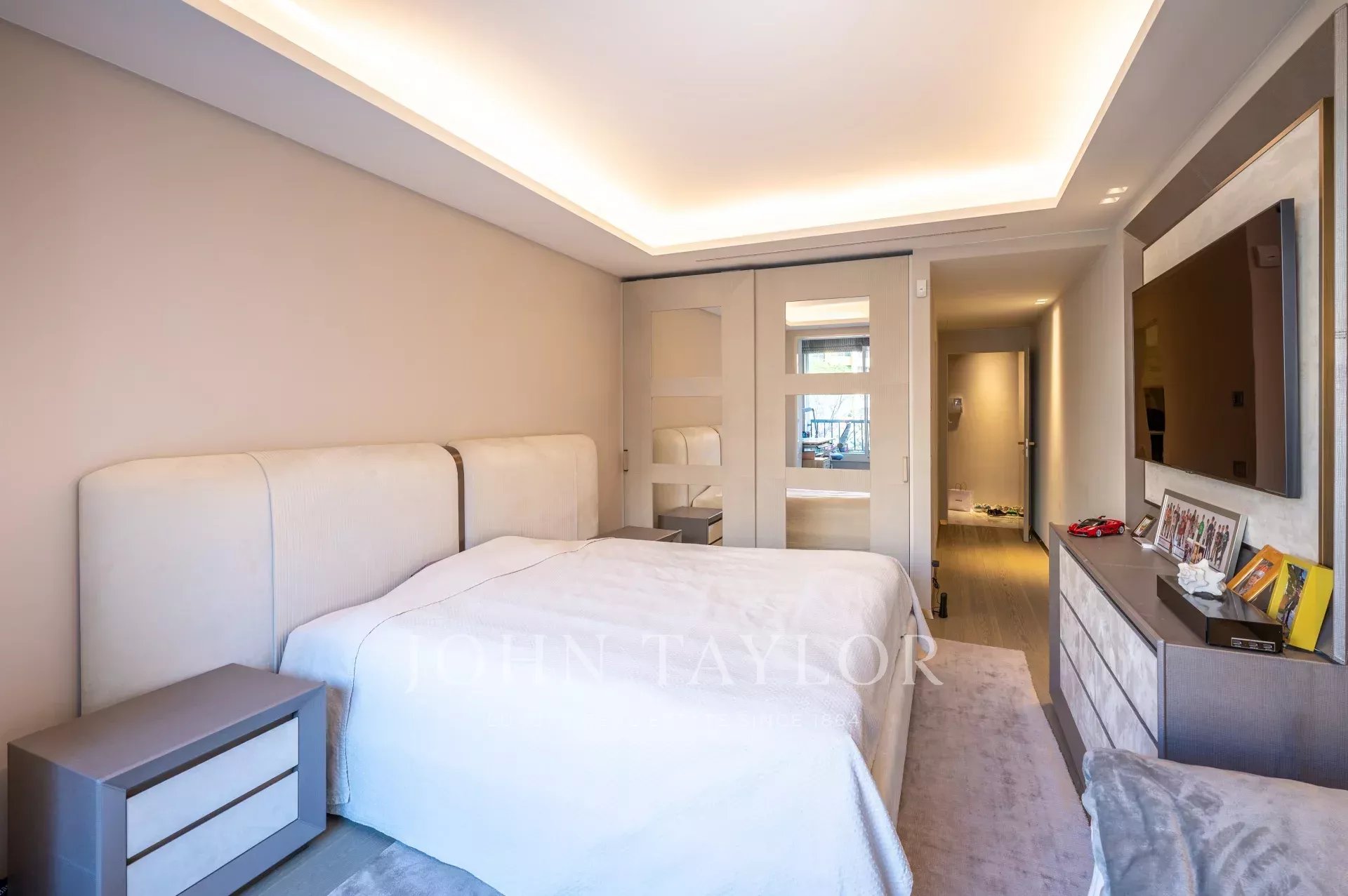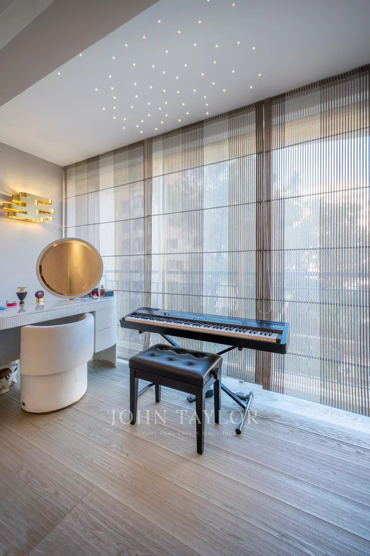 Con una superficie di 245 mq, esposto a sud, questo elegante appartamento, completamente ristrutturato in un lussuoso stile contemporaneo, è molto luminoso e soleggiato.