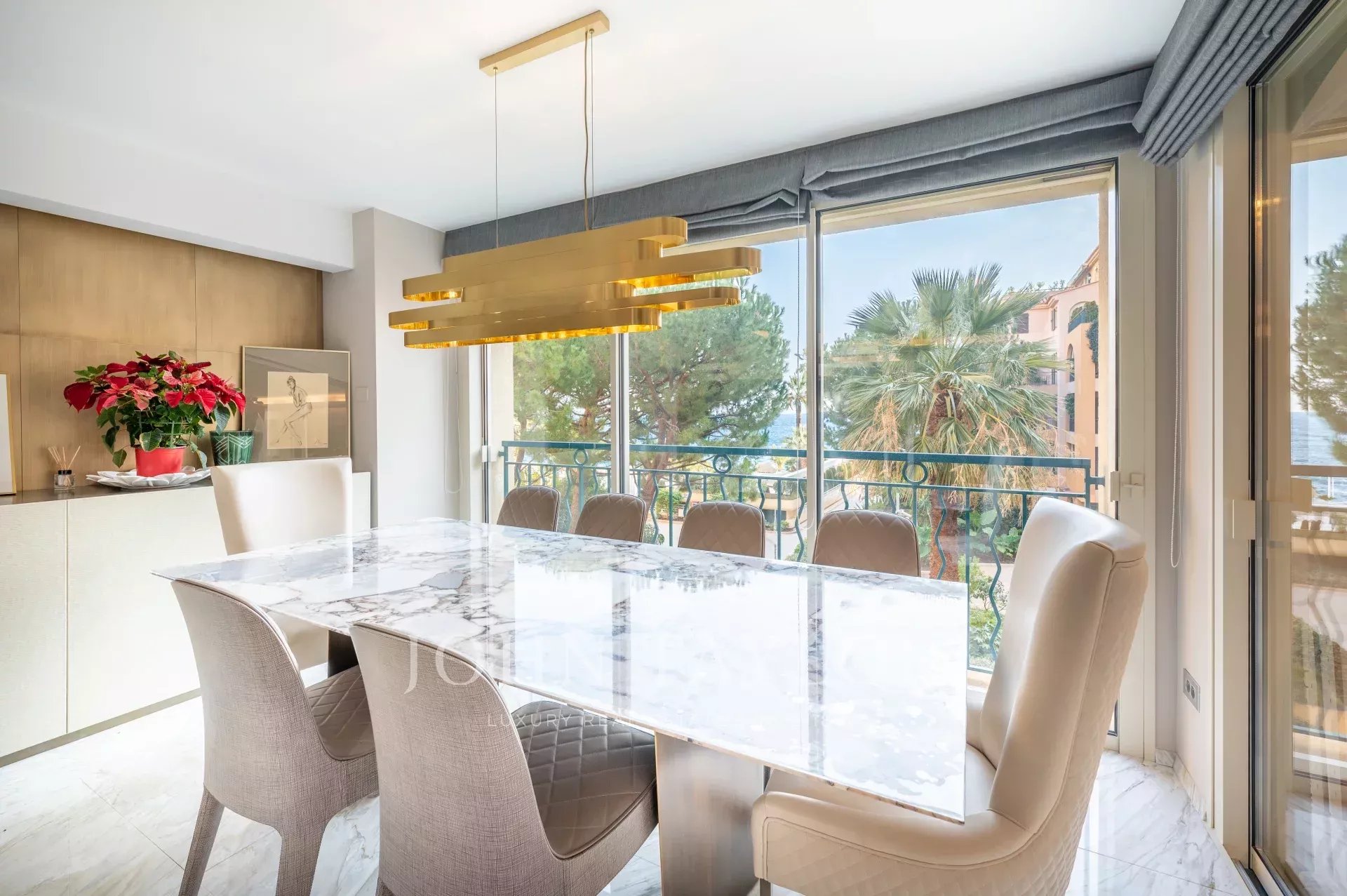 Magnifico appartamento padronale di 5 locali, arredato, a Les Cyclades, residenza con piscina e portineria, molto ambita a Fontvieille, vicino al lungomare, al mare, ai parchi, ai ristoranti e a tutti i servizi.