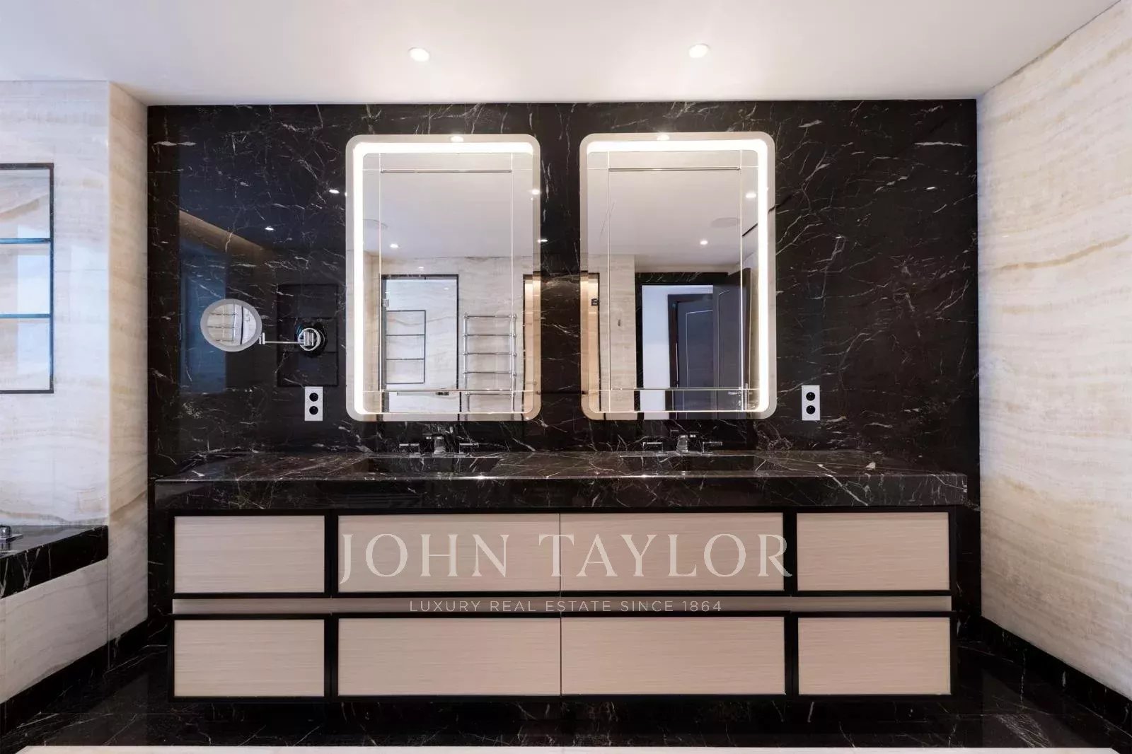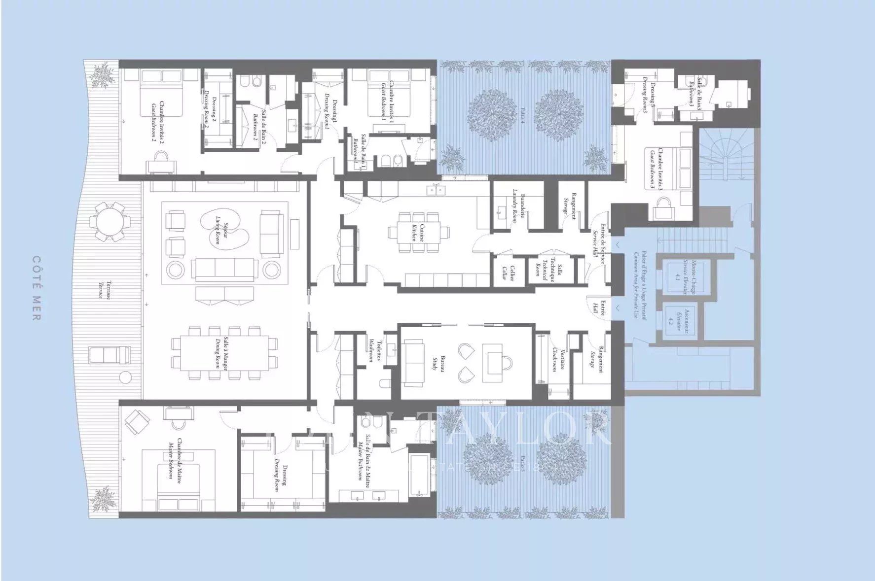 La cucina separata e completamente attrezzata si affianca a una lavanderia, a un ingresso di servizio e a numerosi spazi di stoccaggio, tra cui una dispensa e un locale tecnico. Un ufficio, un guardaroba per gli ospiti e un patio privato completano questa proprietà eccezionale.