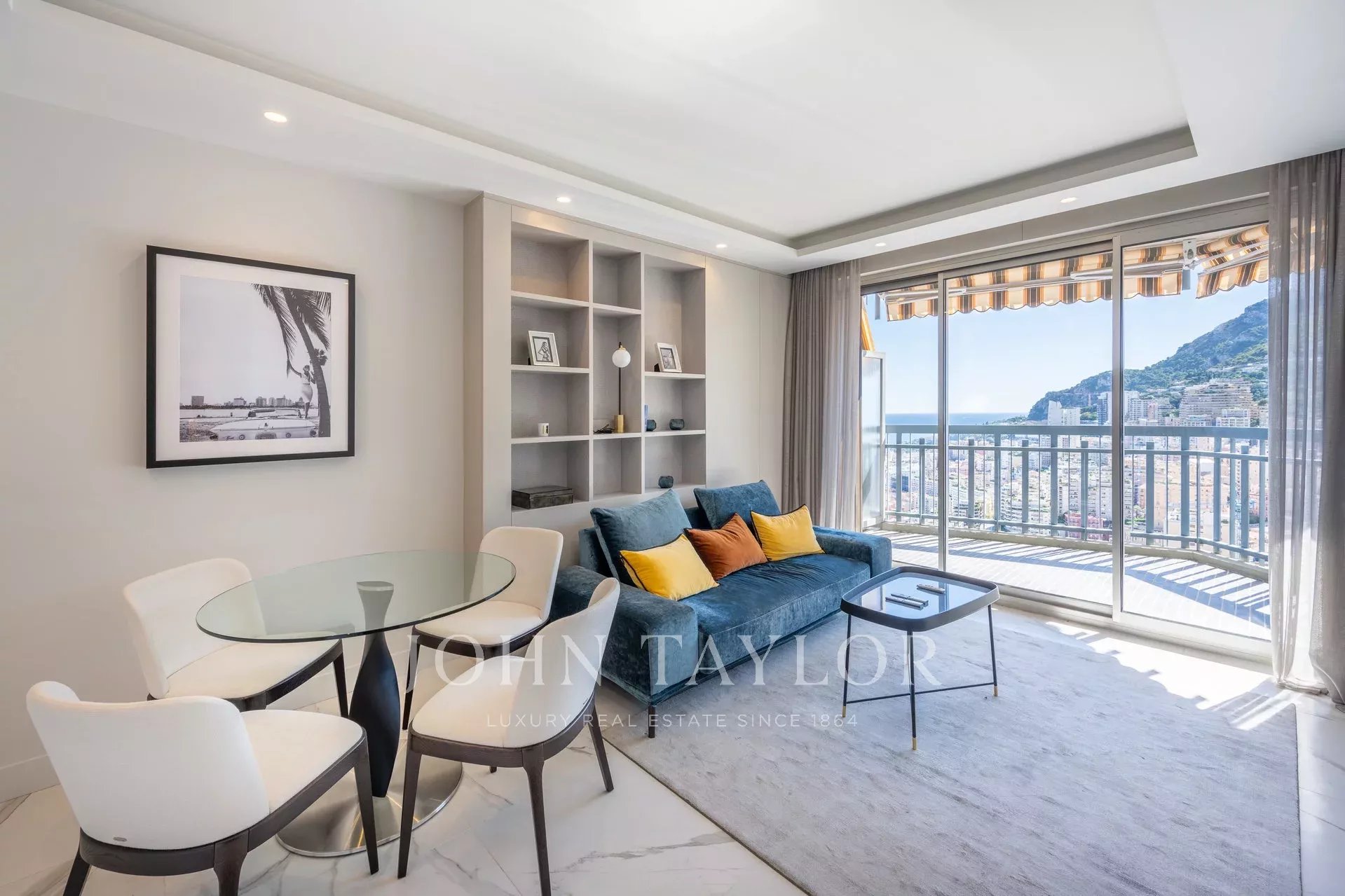 Vicino al Carré d'Or, in una residenza di lusso con portineria, bellissimo appartamento bilocale completamente ristrutturato. Situato al 27 ° piano, l'appartamento gode di una vista panoramica sul mare e sullo rocca di Monaco. Esposto ad ovest.