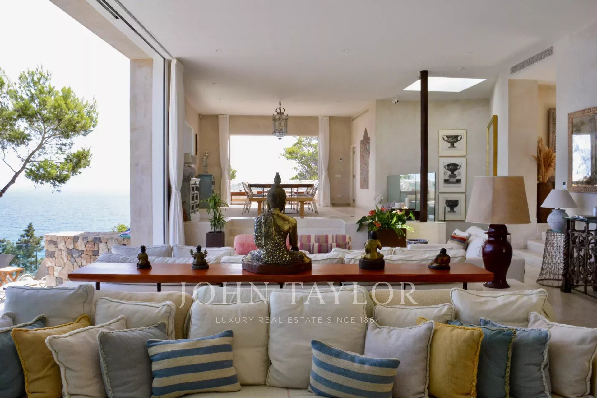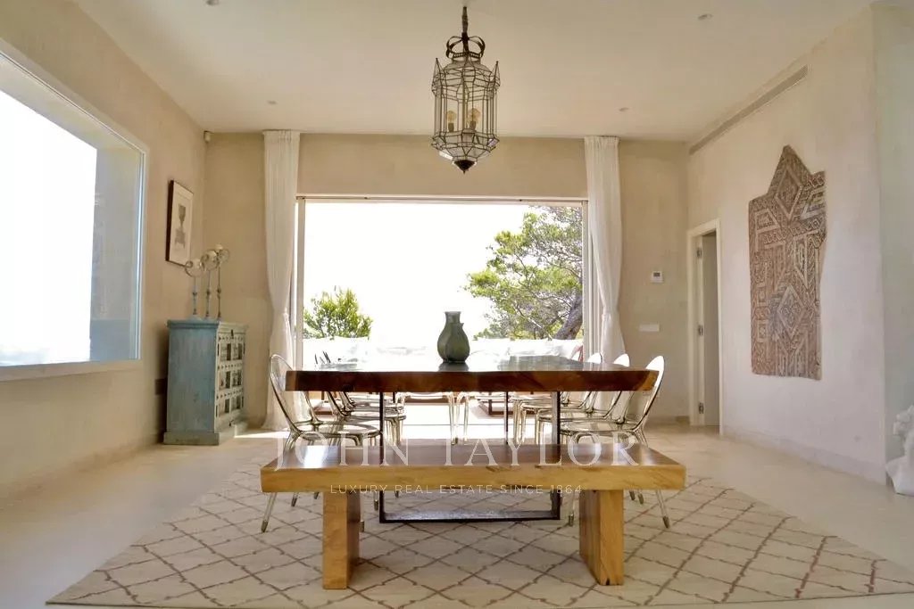 Questa splendida villa fronte mare offre un’esperienza unica sulla costa di Ibiza. Con oltre 800 m² di interni eleganti e ampi spazi esterni, unisce perfettamente lusso, privacy e natura. La sua posizione privilegiata permette di godere di una piacevole brezza marina nei mesi più caldi, mentre le terrazze si affacciano sul Mar Mediterraneo.
