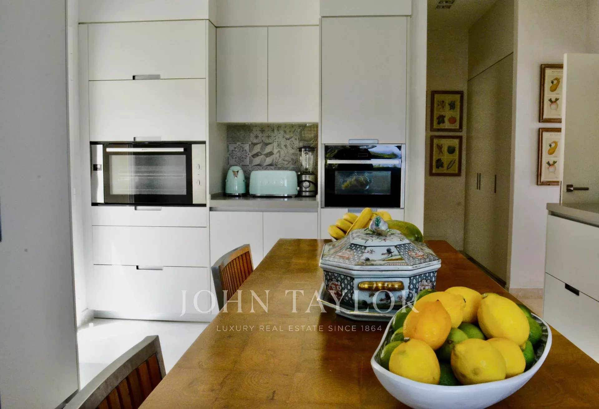 All’arrivo, un ulivo millenario accanto al parcheggio accoglie gli ospiti, anticipando il carattere straordinario della residenza. All’interno, il soggiorno con soffitti alti crea un ambiente luminoso e arioso. La sala da pranzo può ospitare dieci o più persone, ideale per momenti conviviali. La villa dispone di quattro camere matrimoniali, tutte con bagno privato e vista mare, oltre a un alloggio separato per il personale.