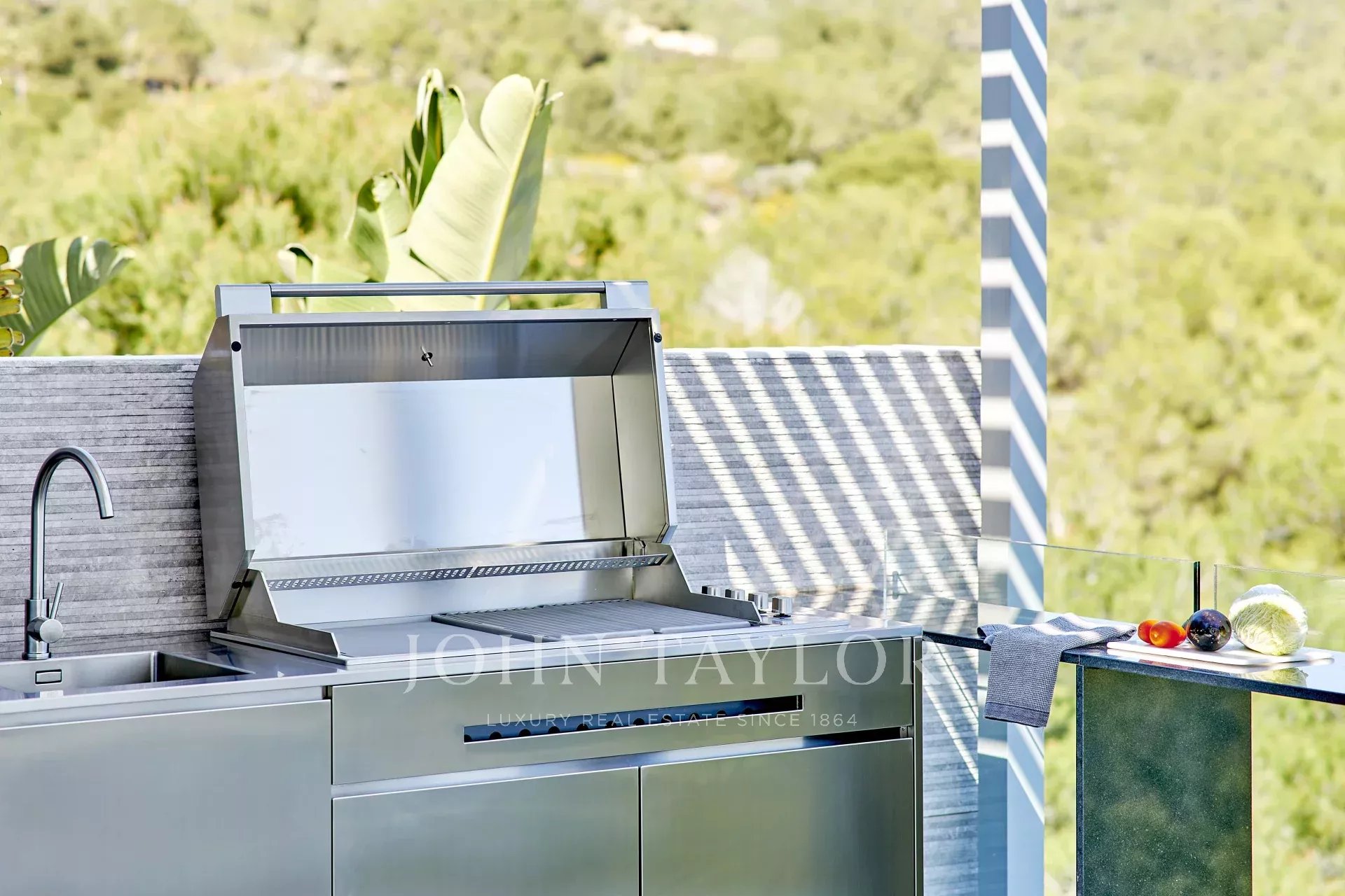 Il rooftop è perfetto per l'intrattenimento, con comodi divani e un'area pranzo ideale per cocktail al tramonto. La cucina all'aperto completamente attrezzata consente di cenare all'aperto mentre si ammirano le splendide viste.