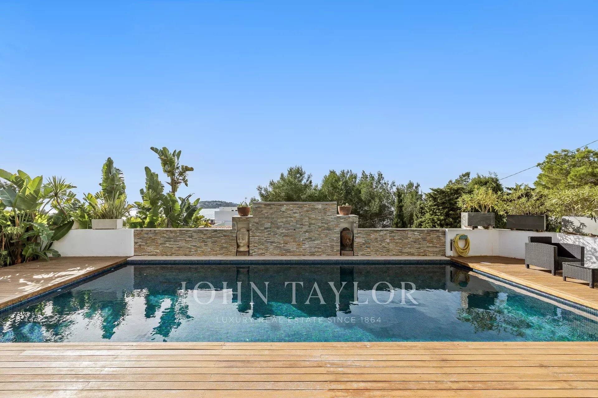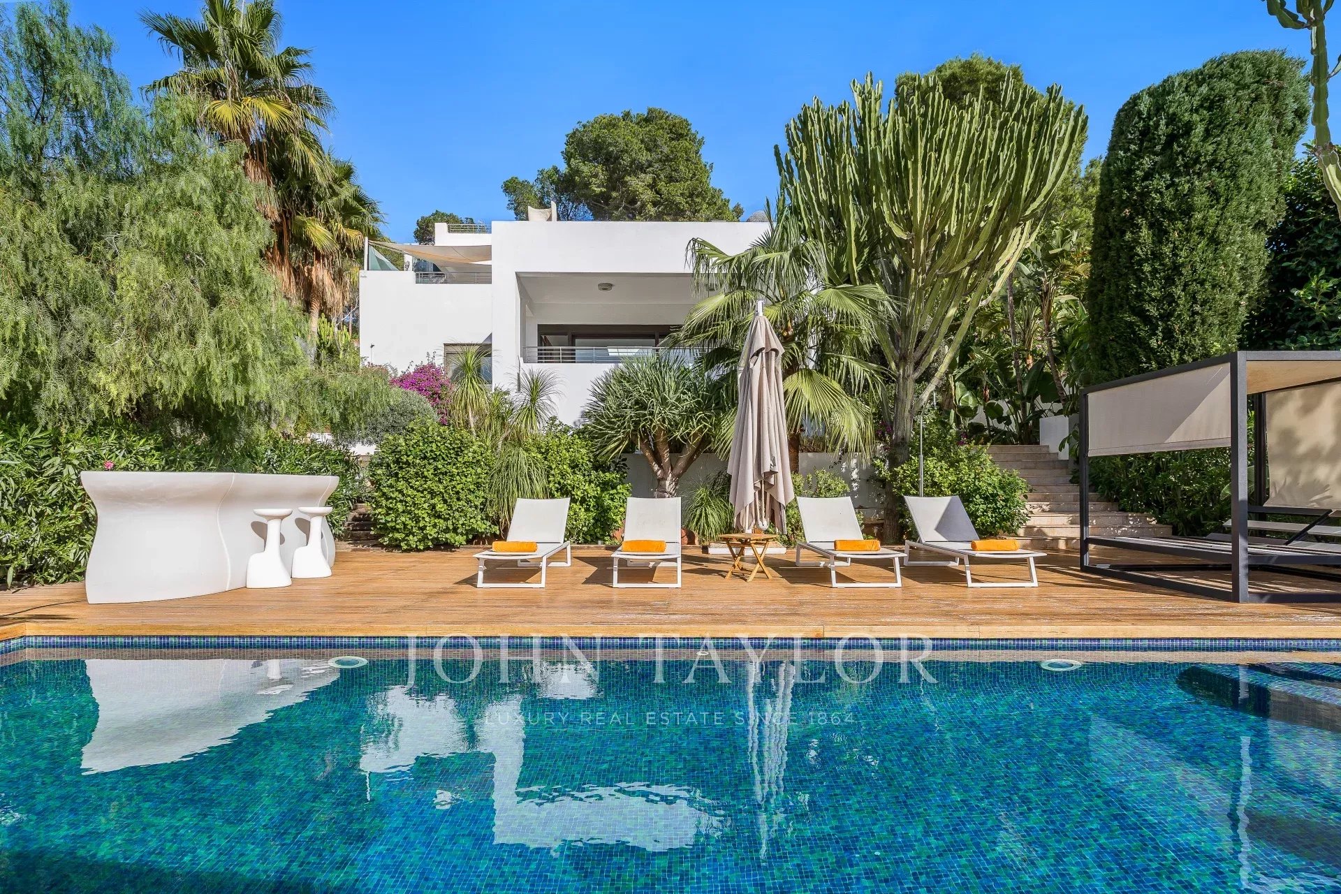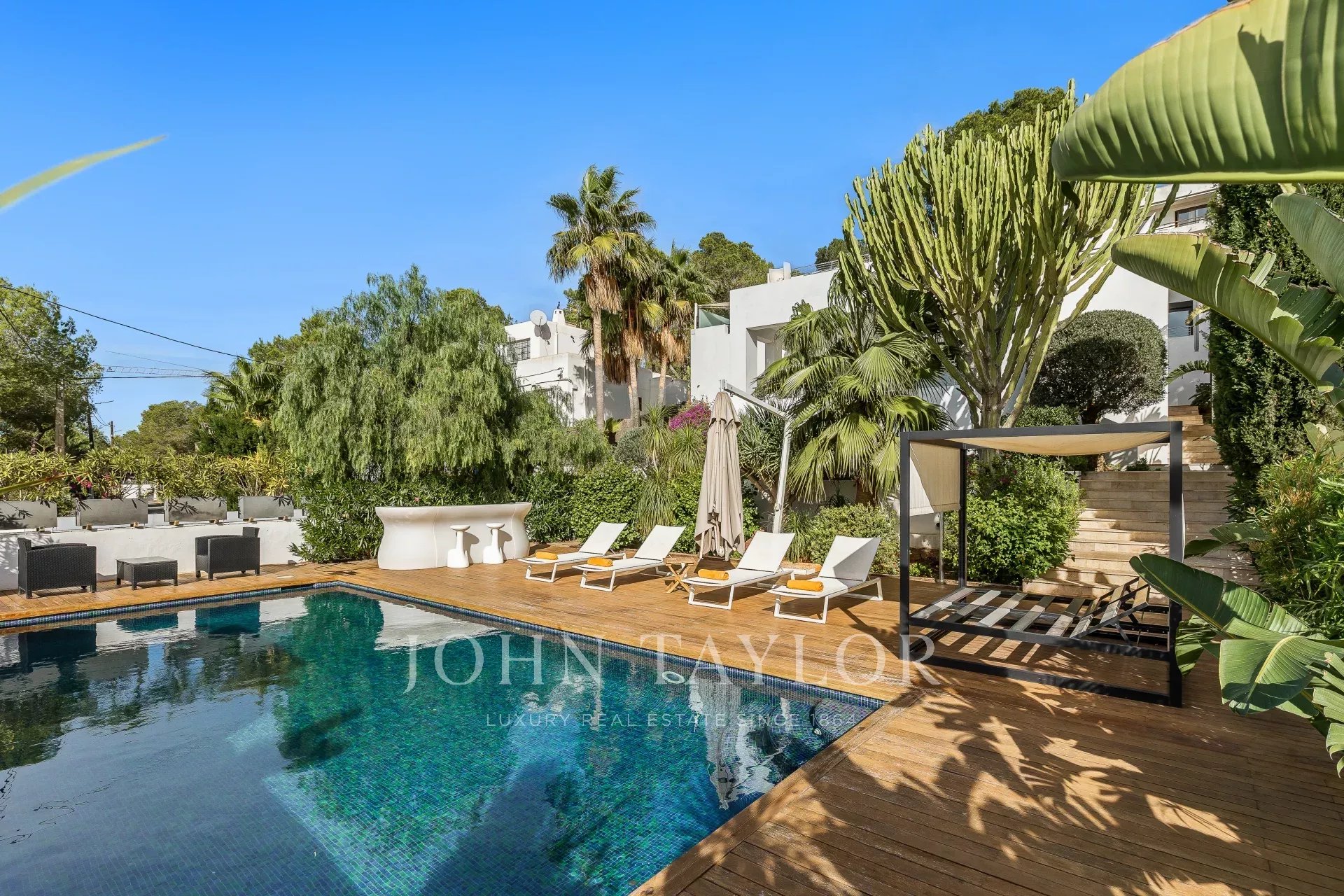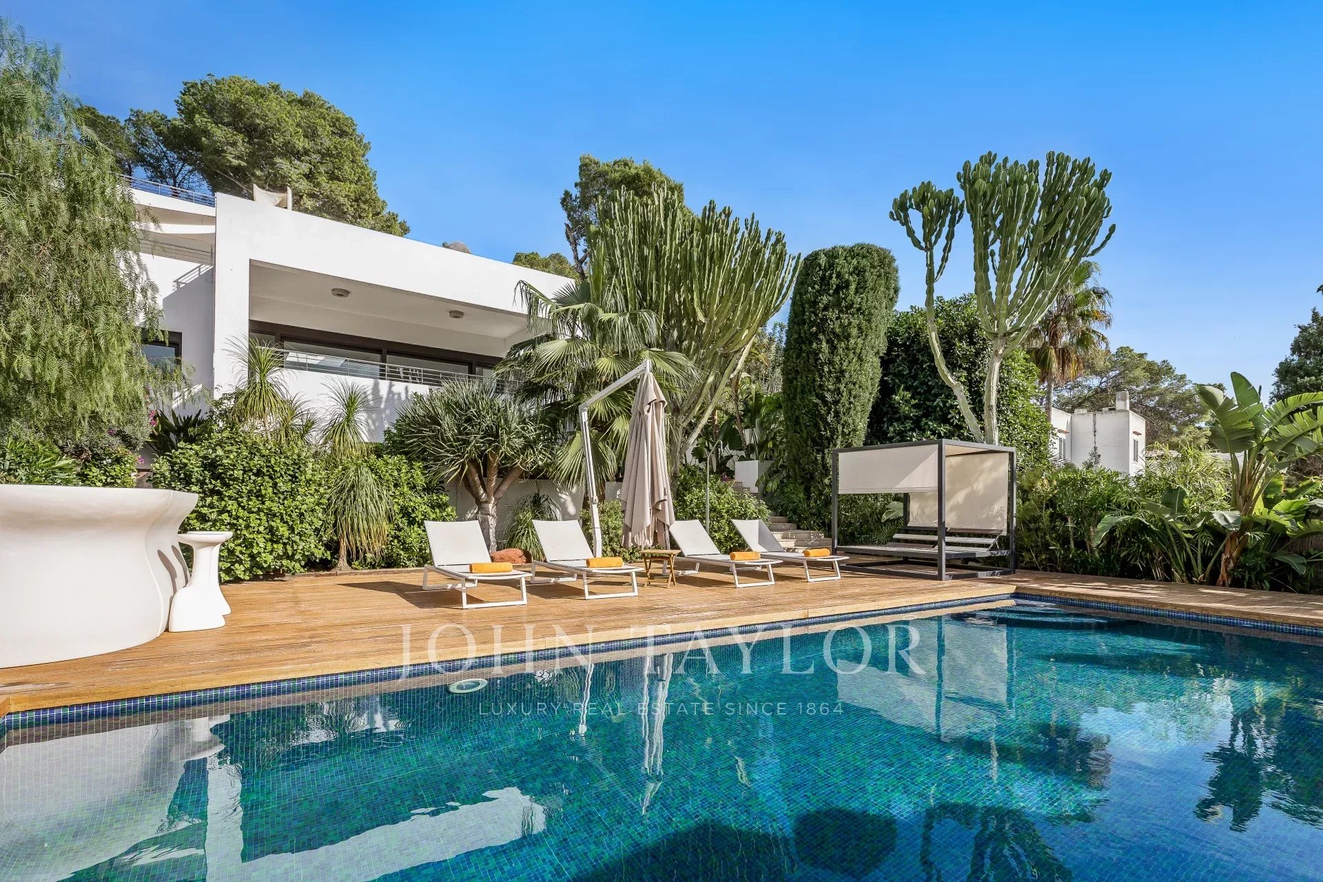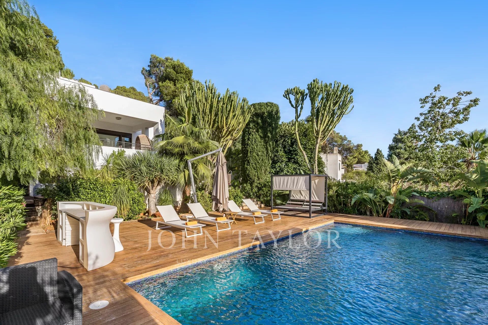 Scopri il lusso in questo impressionante rifugio a Cap Martinet, Ibiza. Con viste sul mare che tolgono il fiato, questa proprietà combina la tranquillità di un ambiente sereno con la vibrante vita notturna di Ibiza, a soli pochi minuti di distanza.
