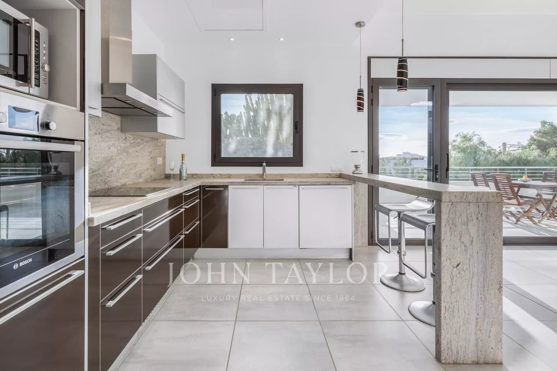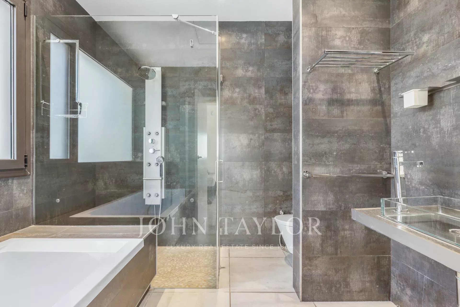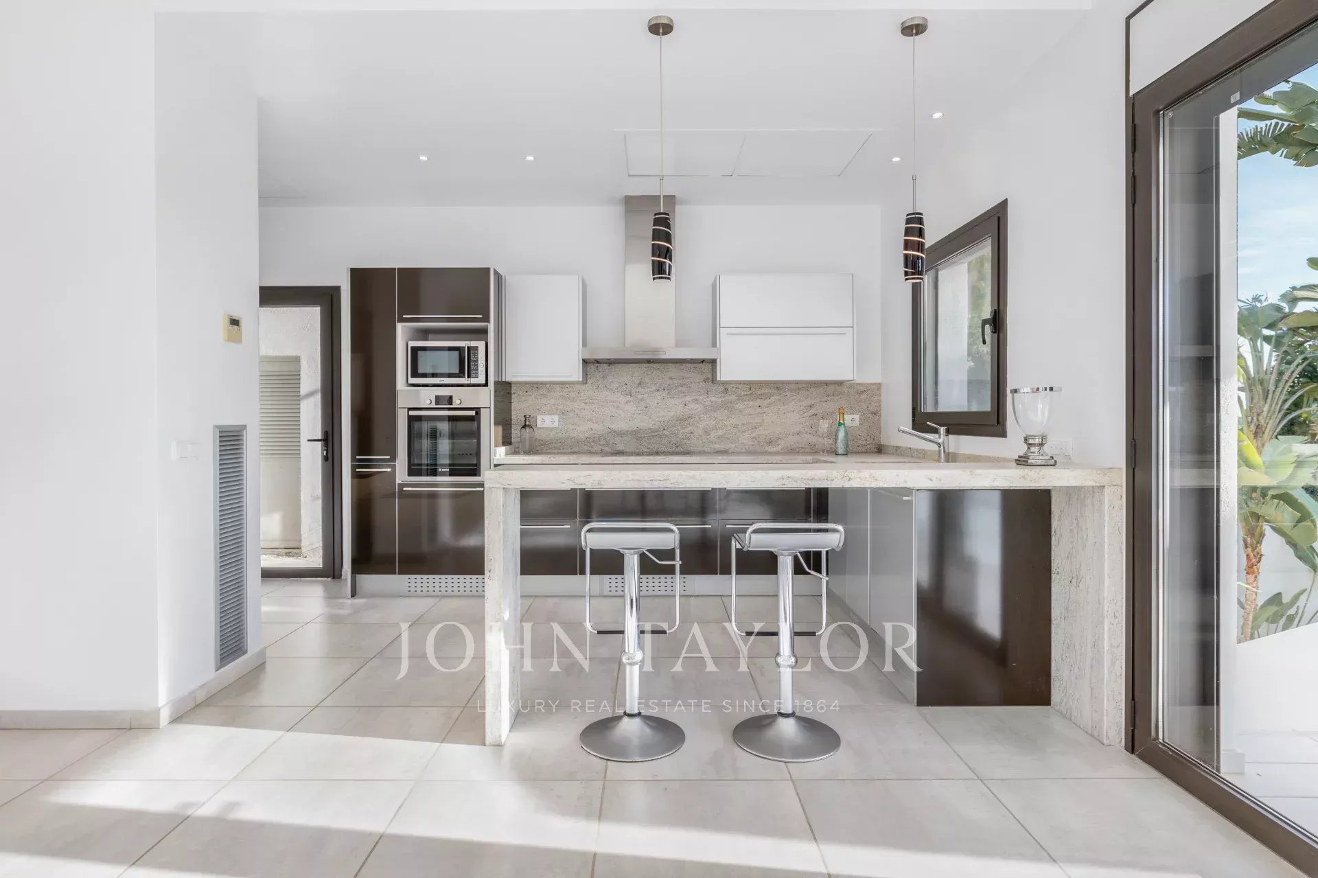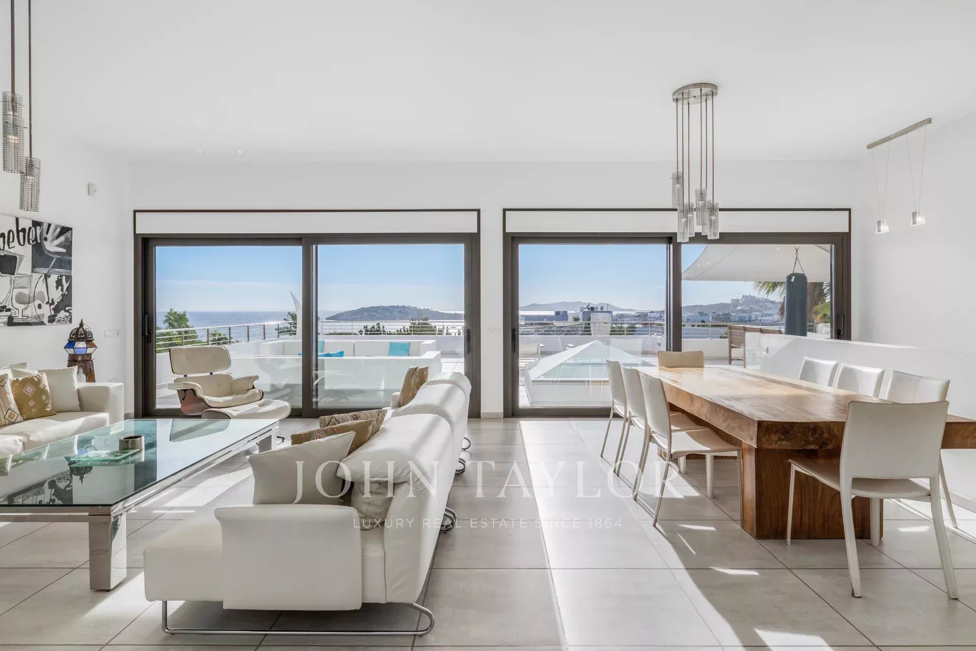 L'alloggio dispone di una spaziosa camera da letto principale e quattro camere doppie con bagno privato, ognuna con letti queen size, garantendo un soggiorno confortevole e rilassante. La cucina completamente attrezzata e la sala da pranzo, con vista sul mare, sono perfette per gustare pasti in famiglia. Il soggiorno si apre su una magnifica terrazza che ospita una scintillante piscina, lettini, barbecue e aree relax e pranzo, il tutto con una vista mozzafiato sulla baia di Talamanca e Dalt Vila.