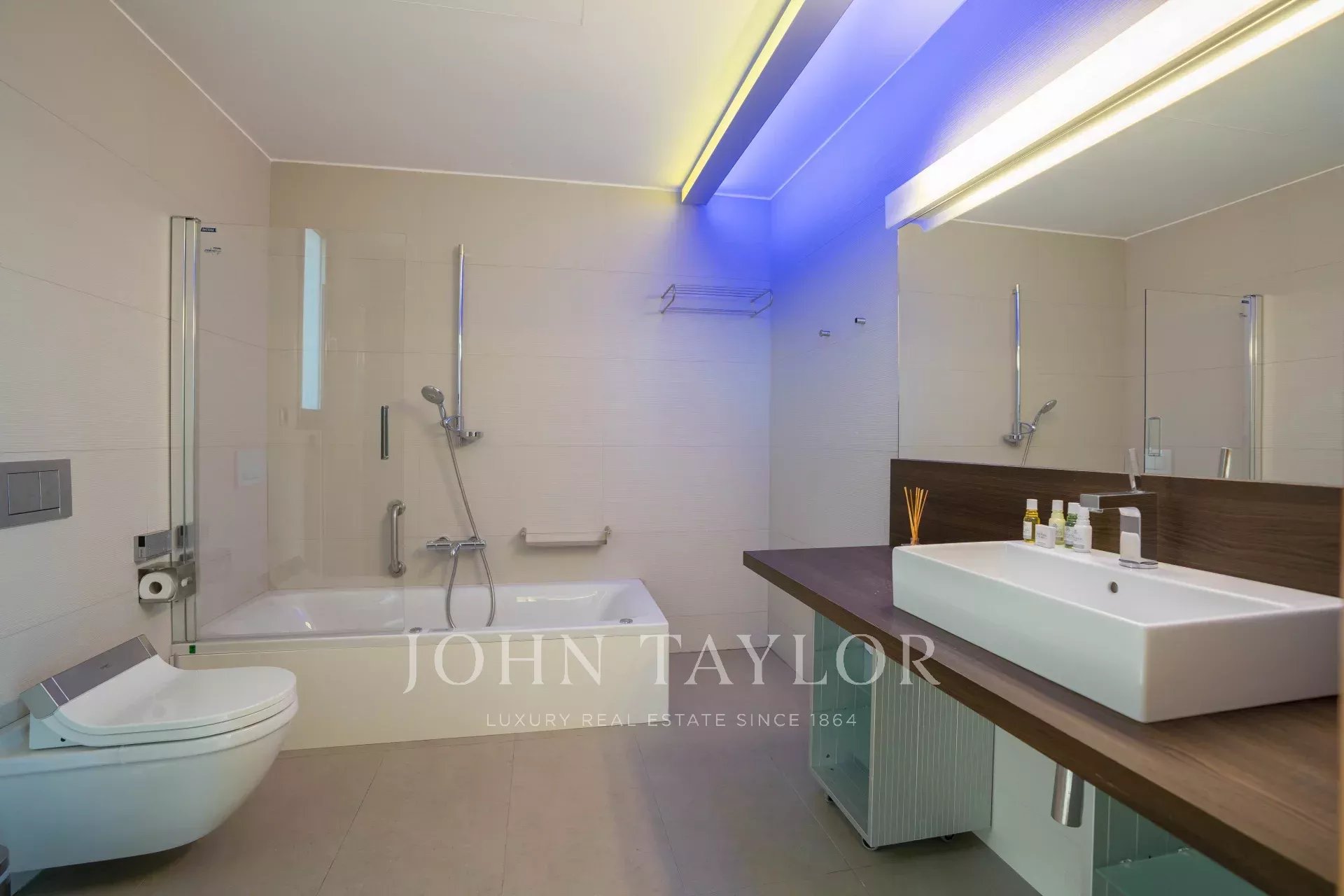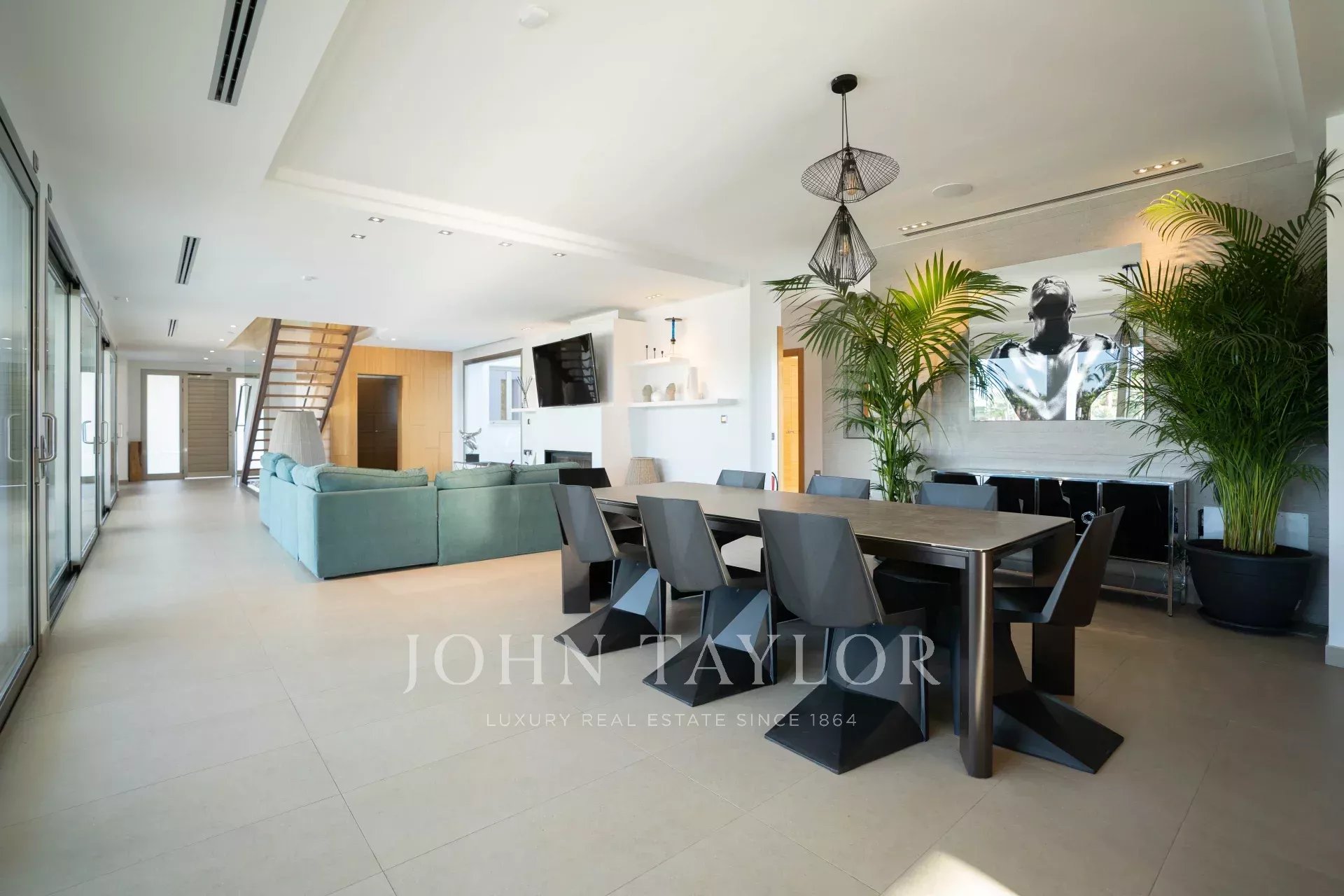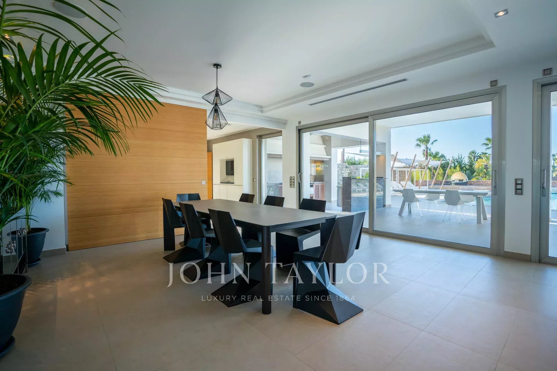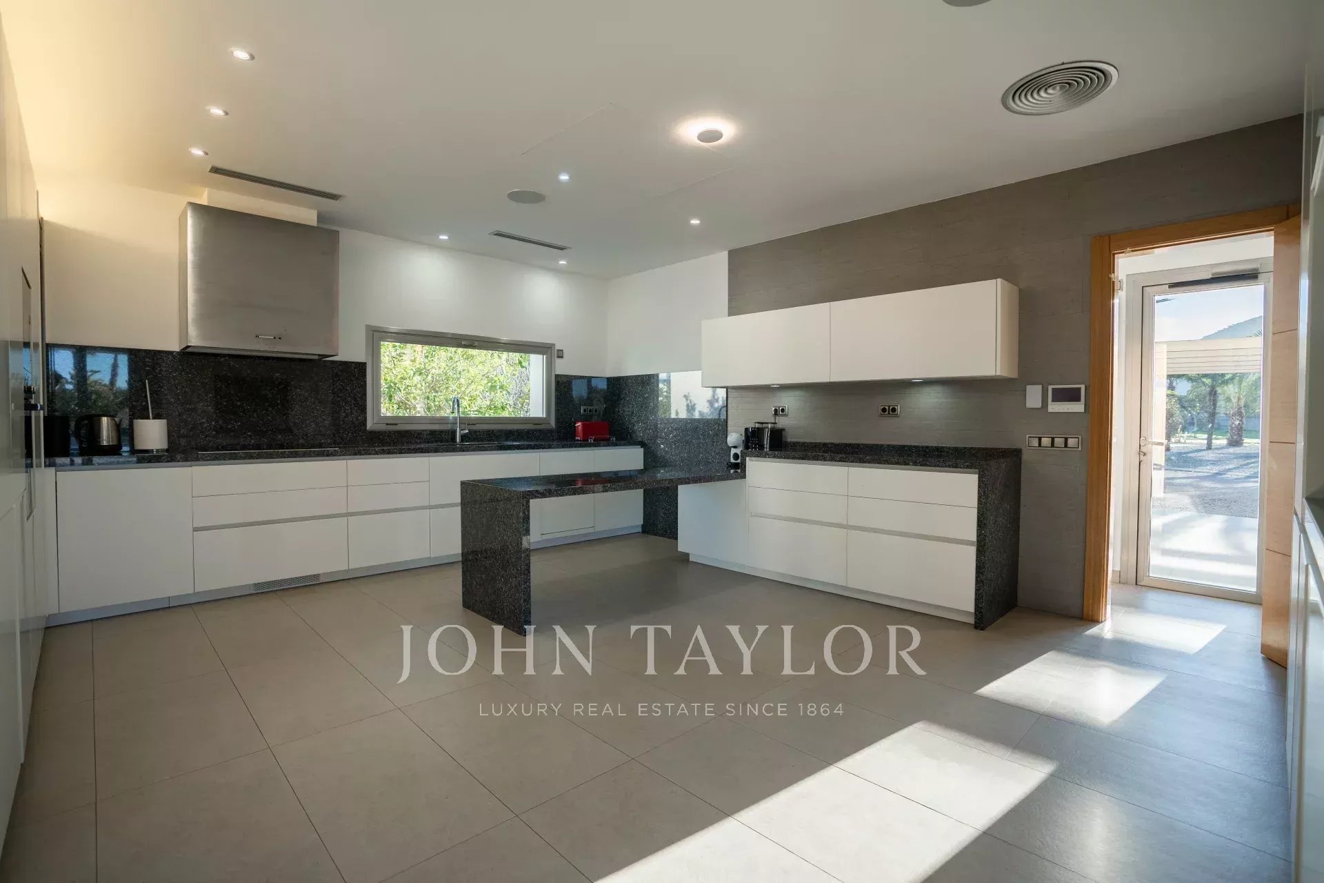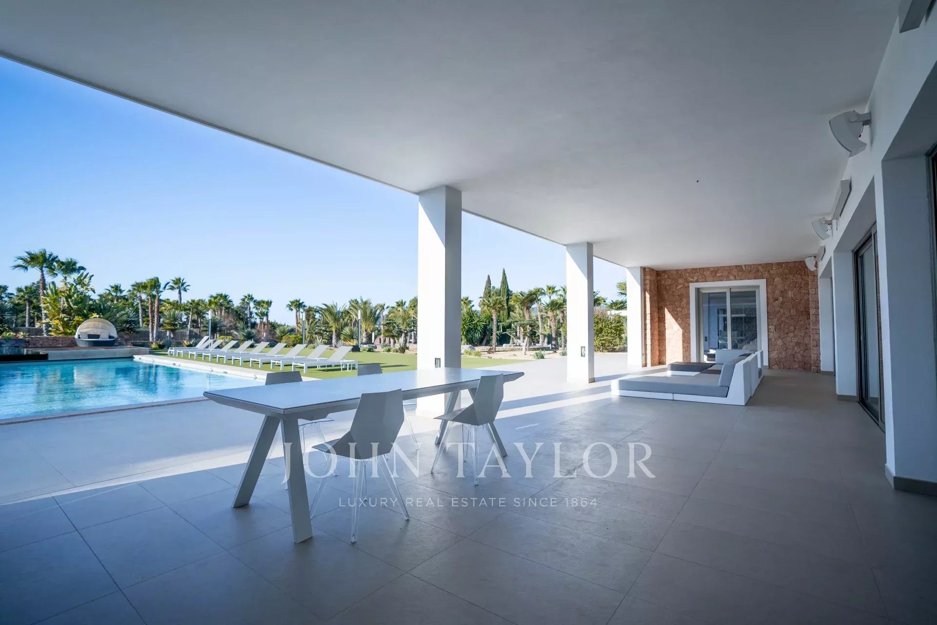 Questa lussuosa villa è immersa in un ampio giardino con piscina e terrazza, oltre a una guest house, un'area barbecue, una palestra e un mini club, tra gli altri servizi.