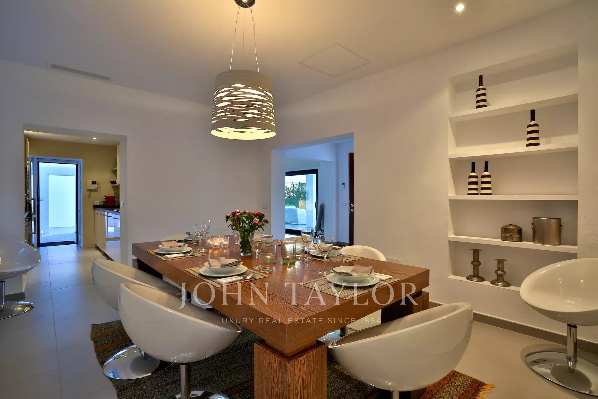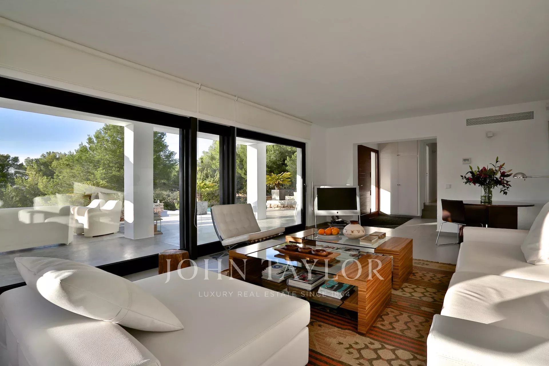 Situata su una splendida collina tra San José e Cala Tarida, questa villa moderna ti invita a godere di uno stile di vita esclusivo con vista mozzafiato sul mare e sul paesaggio ibizenco. All’ingresso, sarai accolto da un luminoso soggiorno e una zona pranzo accogliente, dotati di aria condizionata e sistema audio che crea l’atmosfera perfetta. Il camino aggiunge un tocco caldo e accogliente, mentre le ampie finestre lasciano entrare la luce naturale, connettendoti alla terrazza e alla piscina.