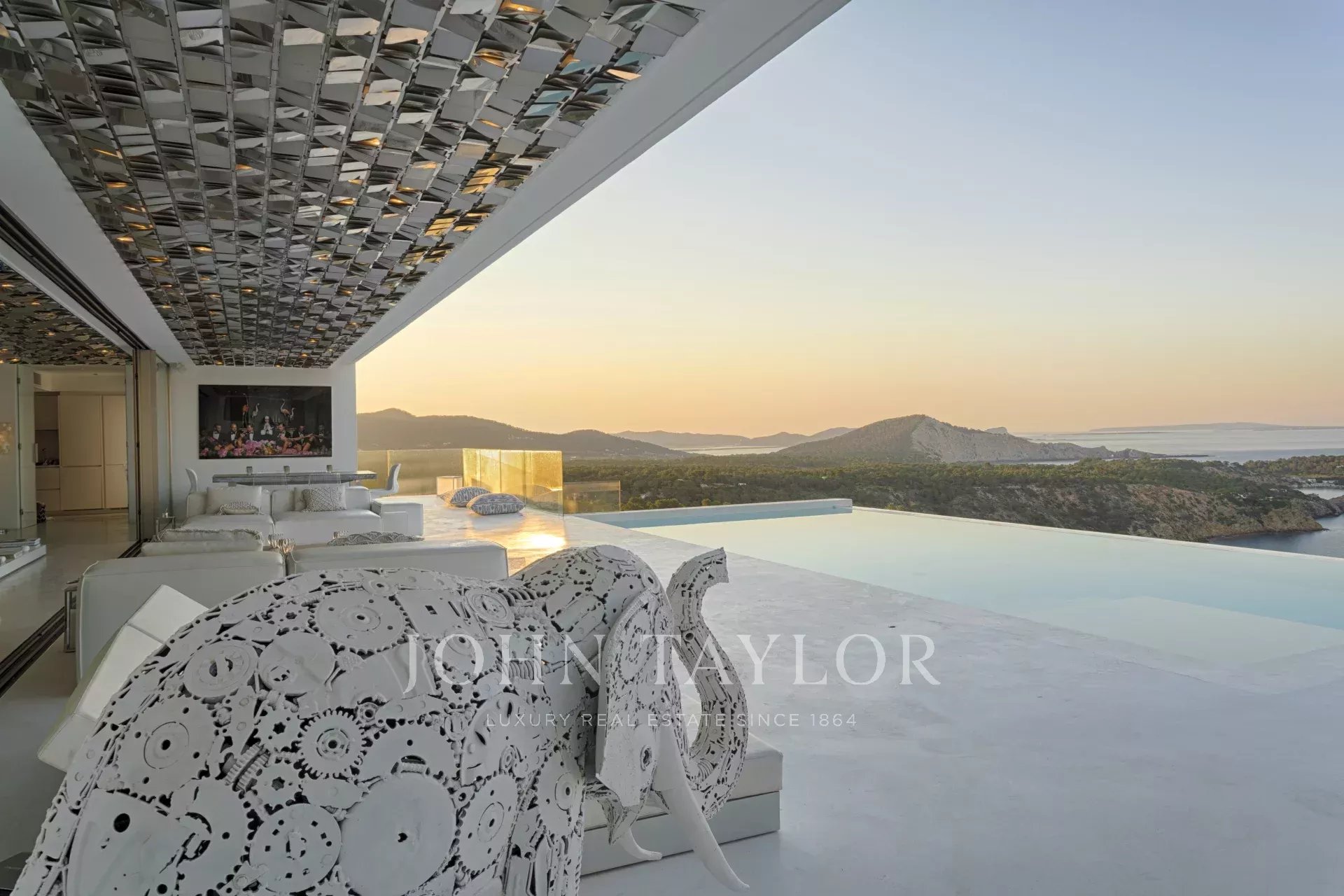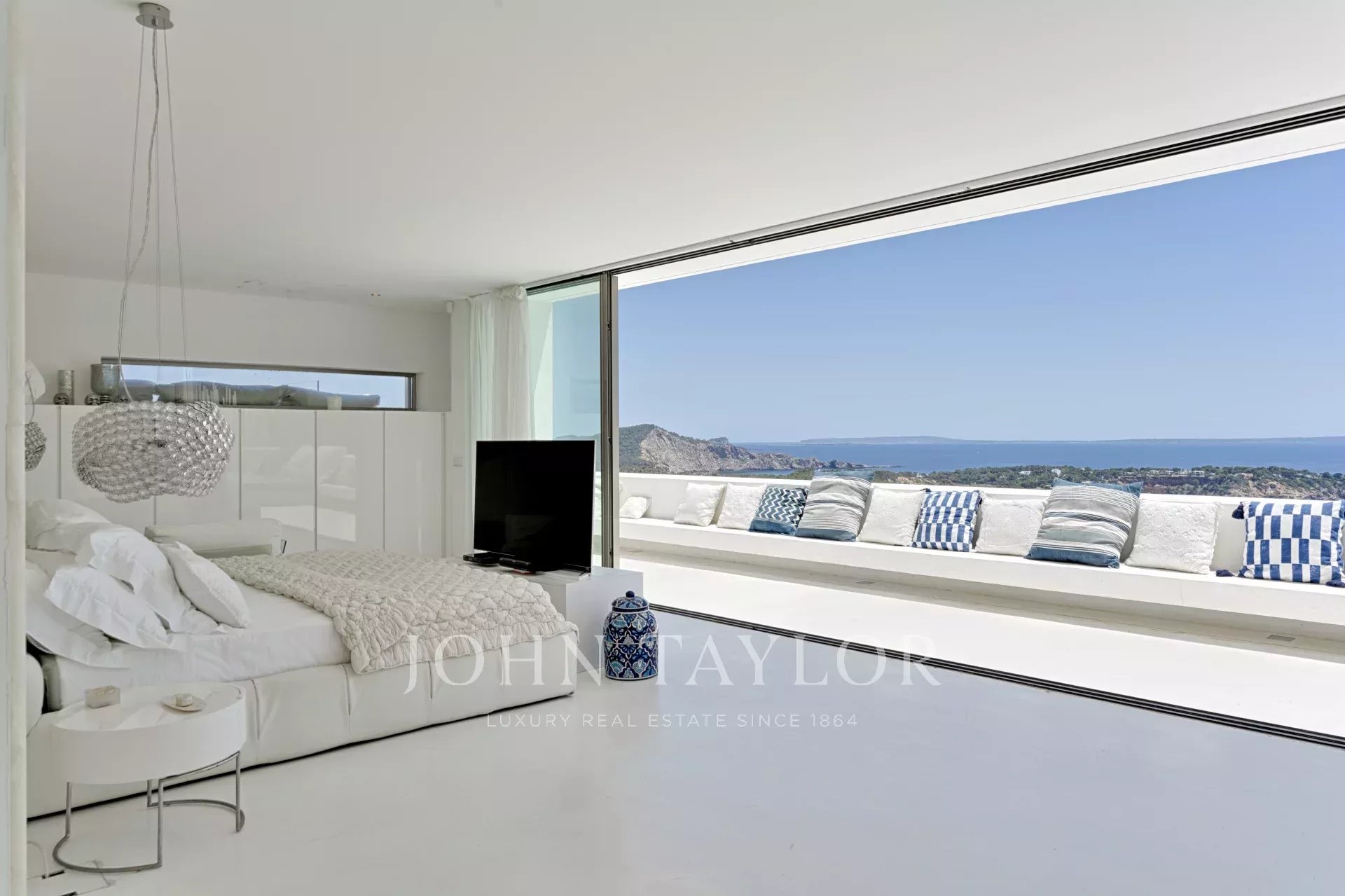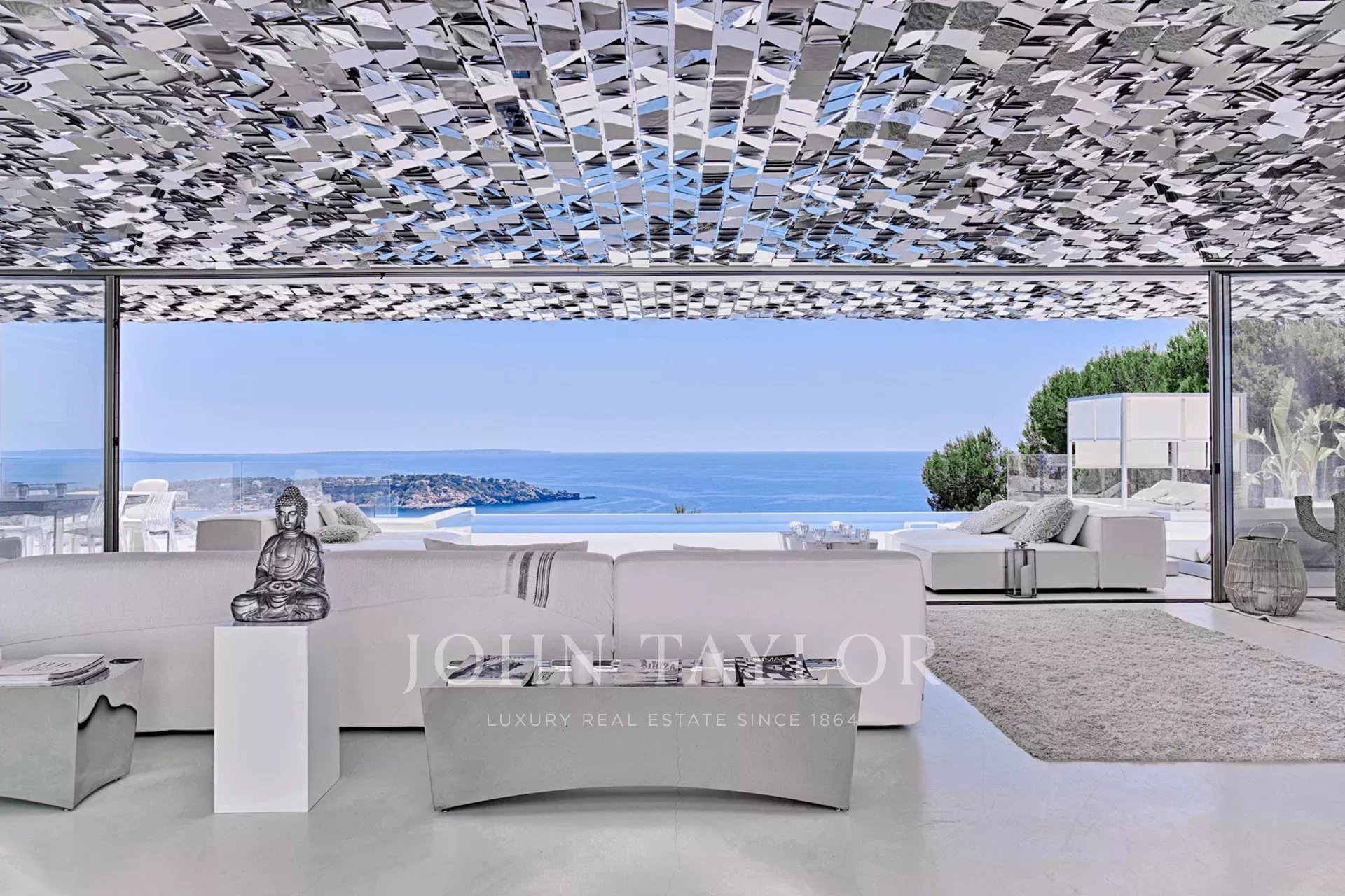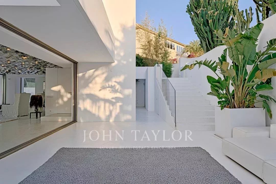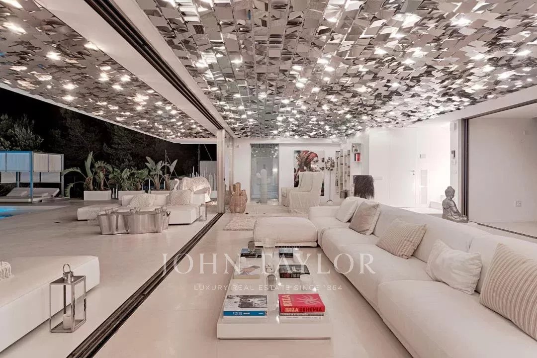 Elegante residenza situata nel distinto condominio Vista Alegre, una delle più prestigiose comunità recintate di Ibiza, nota per la sua sicurezza e sorveglianza 24 ore al giorno. Strategicamente posizionata in cima a una montagna, questa proprietà offre un'impareggiabile vista panoramica sullo scintillante Mar Mediterraneo, nonché sugli incantevoli paesaggi di Formentera e sulle pittoresche cittadine di Es Cubells, Salinas e Porroig.