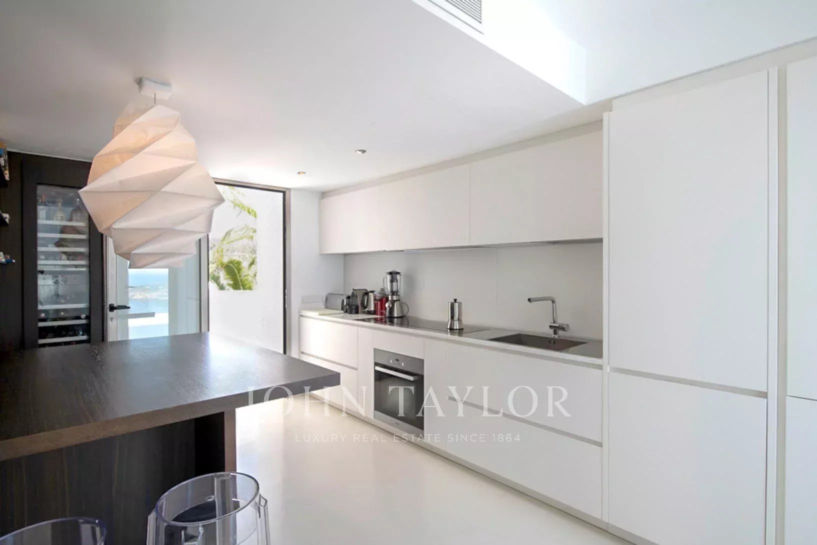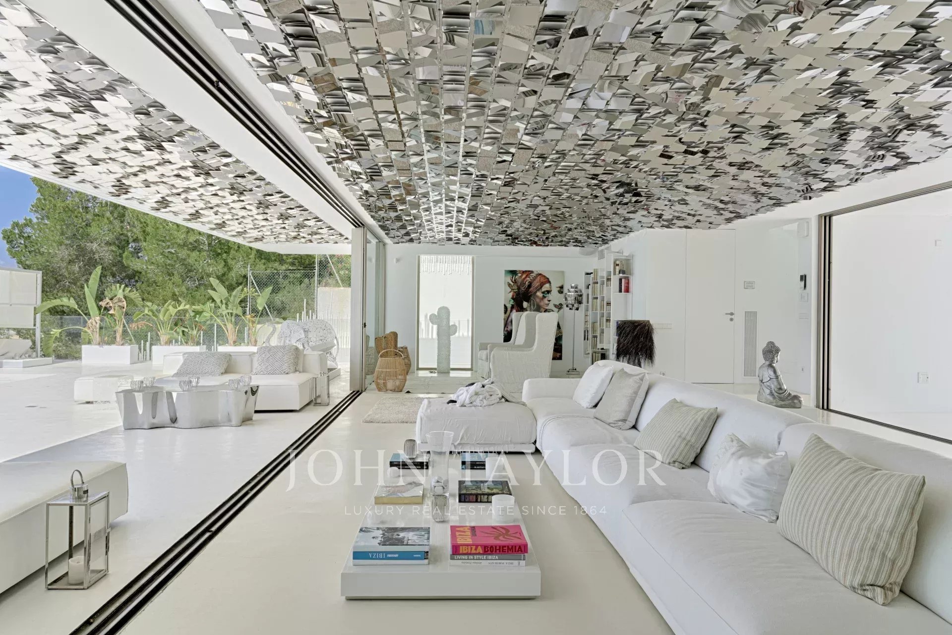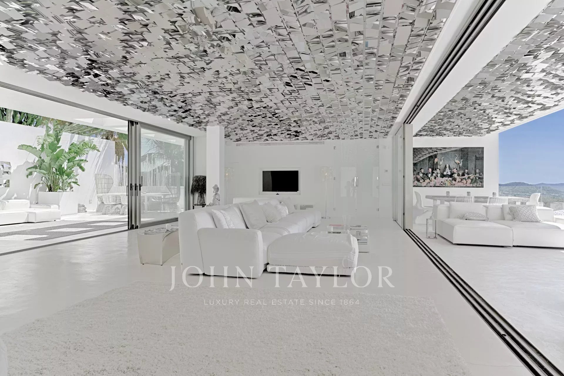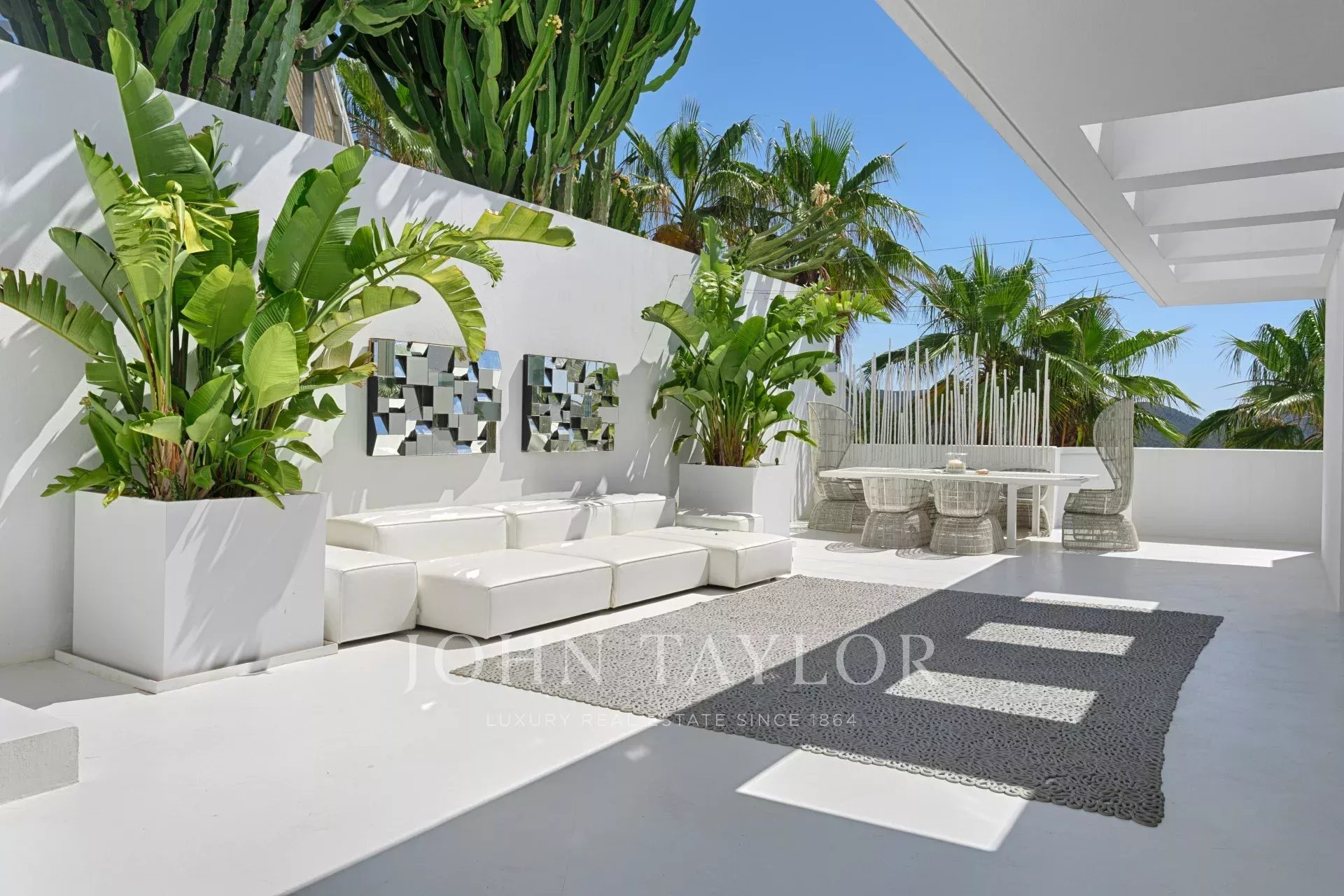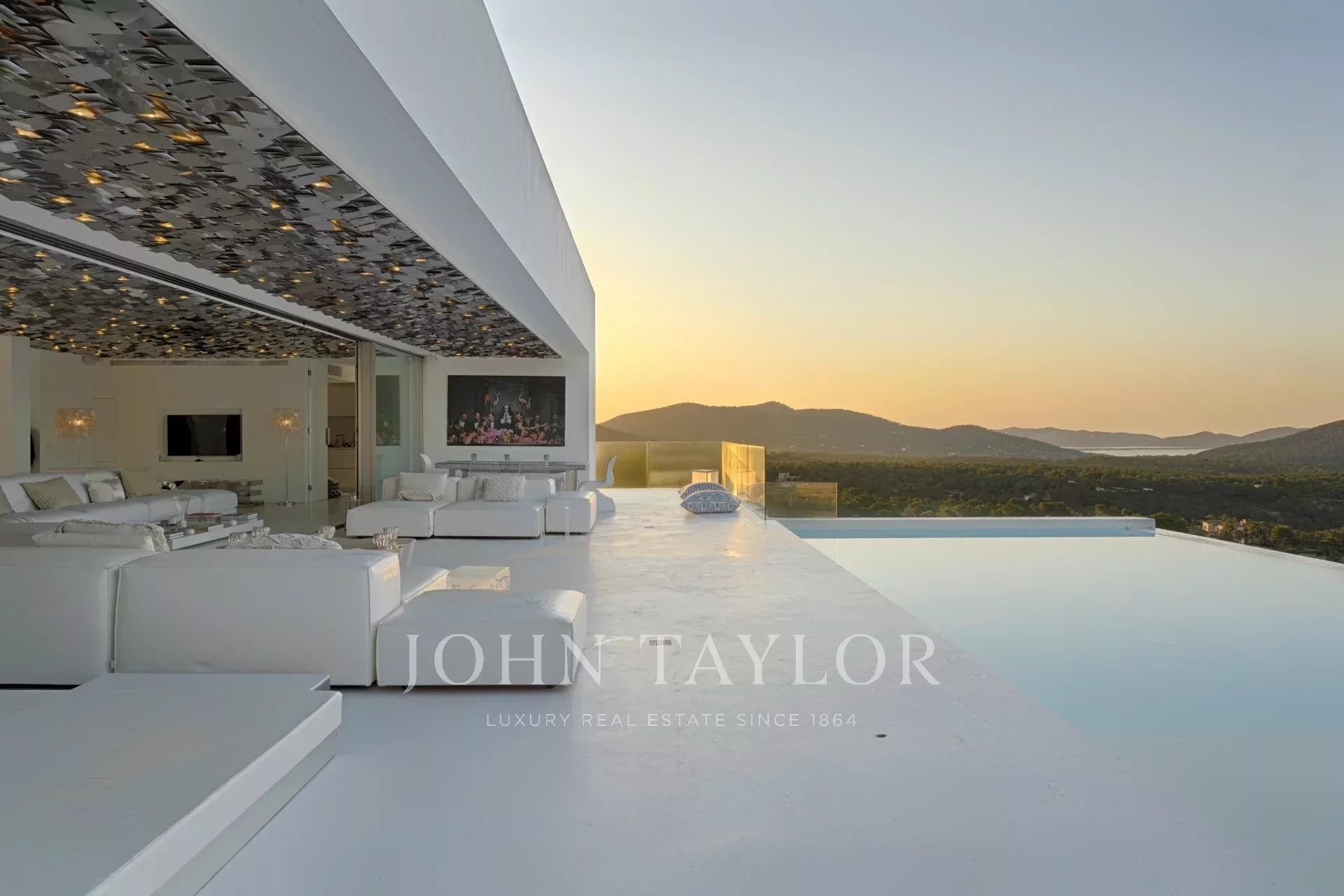 Elegante residenza situata nel distinto condominio Vista Alegre, una delle più prestigiose comunità recintate di Ibiza, nota per la sua sicurezza e sorveglianza 24 ore al giorno. Strategicamente posizionata in cima a una montagna, questa proprietà offre un'impareggiabile vista panoramica sullo scintillante Mar Mediterraneo, nonché sugli incantevoli paesaggi di Formentera e sulle pittoresche cittadine di Es Cubells, Salinas e Porroig.