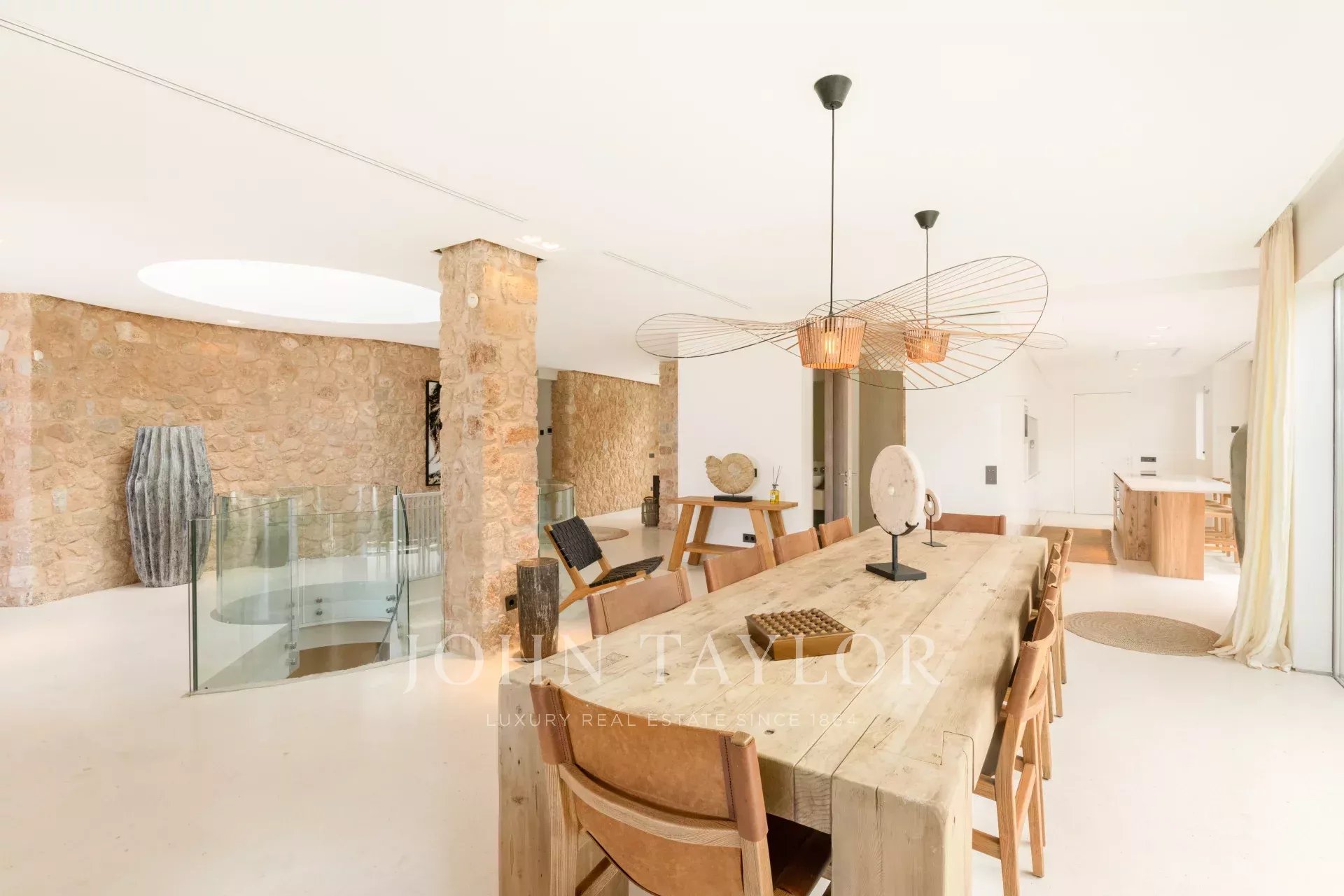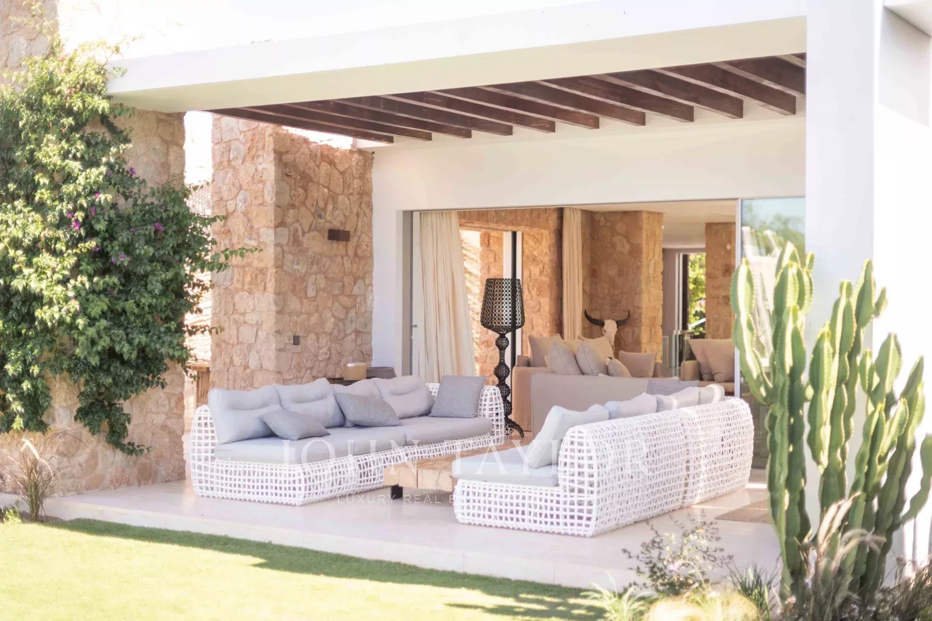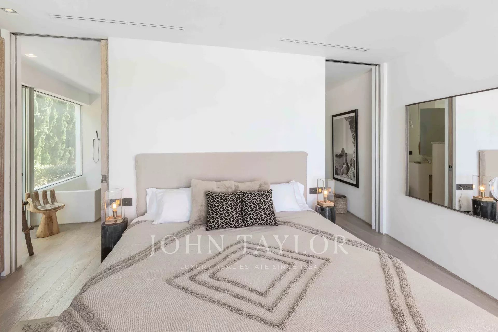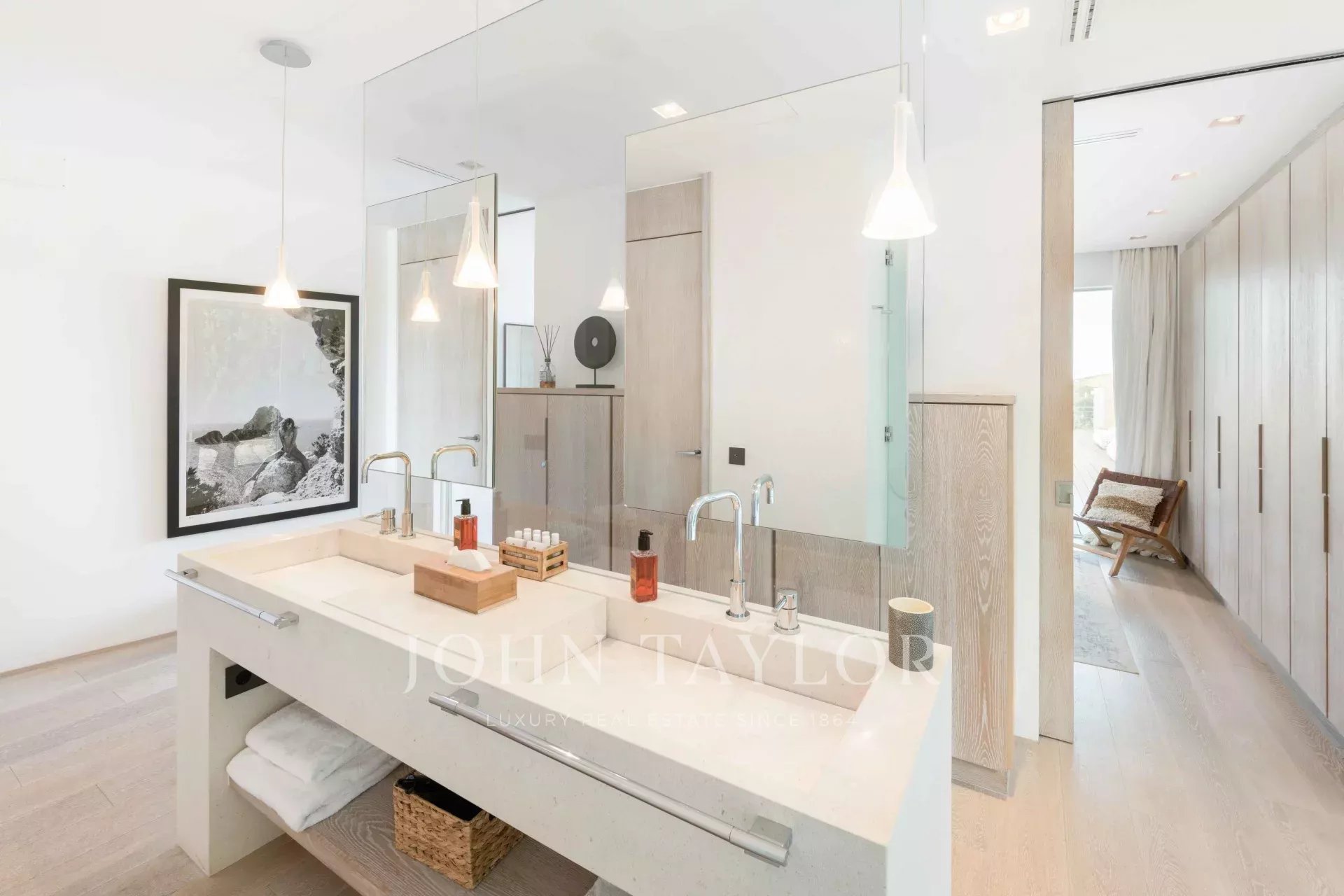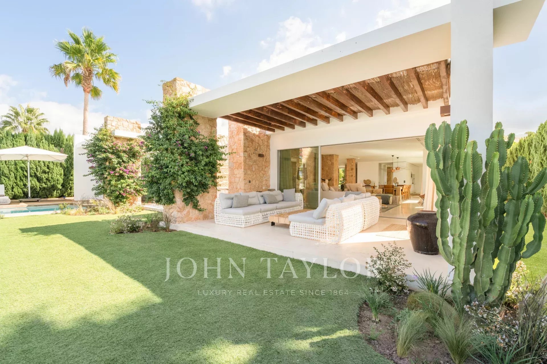 Questa straordinaria villa moderna con cinque camere da letto si trova a soli 400 metri dalla splendida spiaggia di Cala Conta, famosa per il ristorante Sunset Ashram. Altre spiagge vicine, come Cala Tarida con l'esclusivo Cotton Beach Club o Cala Bassa con il suo rinomato Beach Club, sono a pochi minuti di auto.