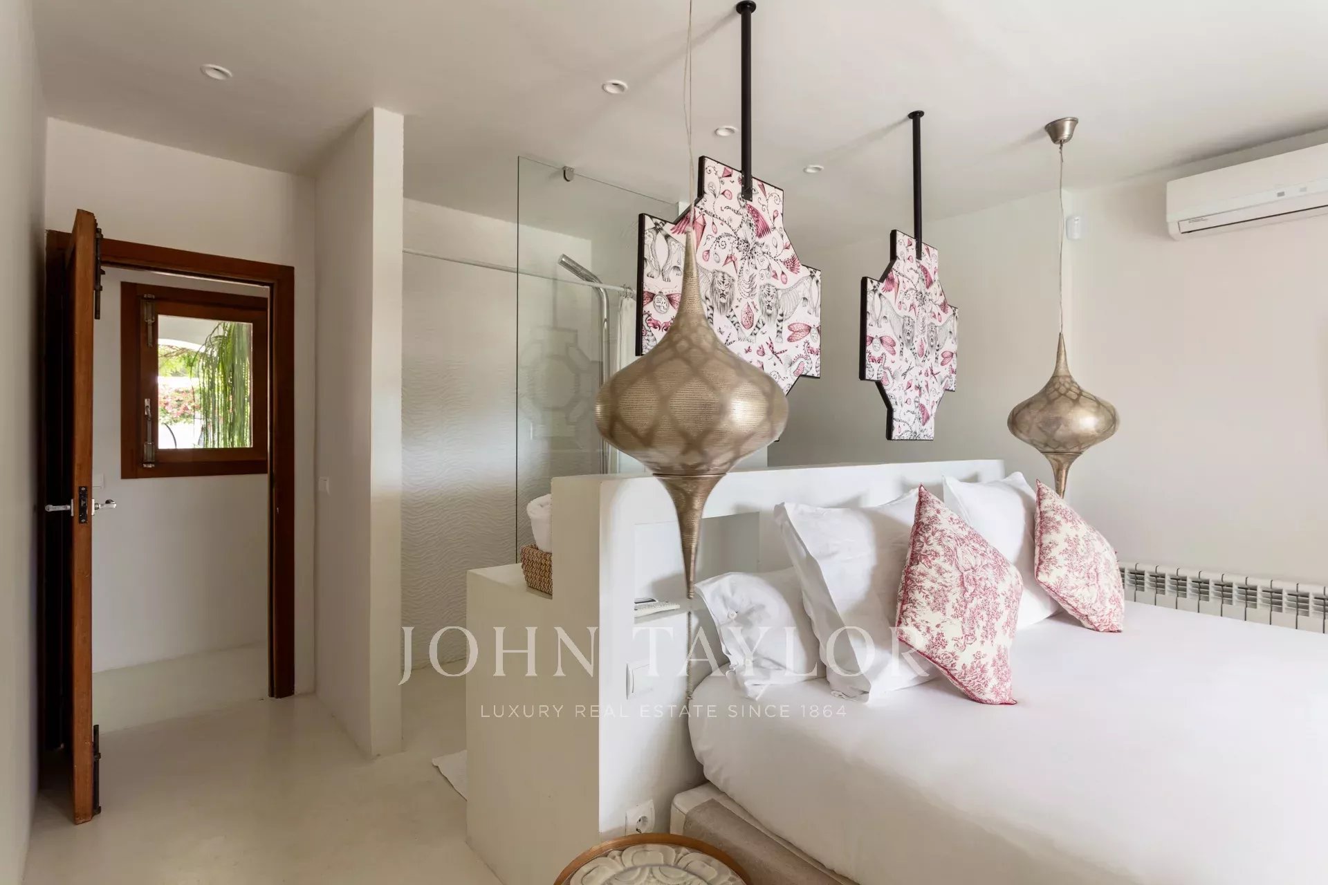 Sant Jordi de Ses Salines è idealmente situato, fornendo un accesso agevole al pittoresco villaggio di Sant Josep, alla città di Ibiza e alle attrazioni più celebri dell'isola. L'aeroporto di Ibiza è a pochi minuti, mentre nelle vicinanze la strada principale offre una vasta gamma di servizi, tra cui grandi supermercati, negozi e boutique di vini e bevande specializzate. Questa posizione esclusiva rende la proprietà non solo un rifugio tranquillo, ma anche una porta d'accesso alle vivaci esperienze della costa sud di Ibiza.