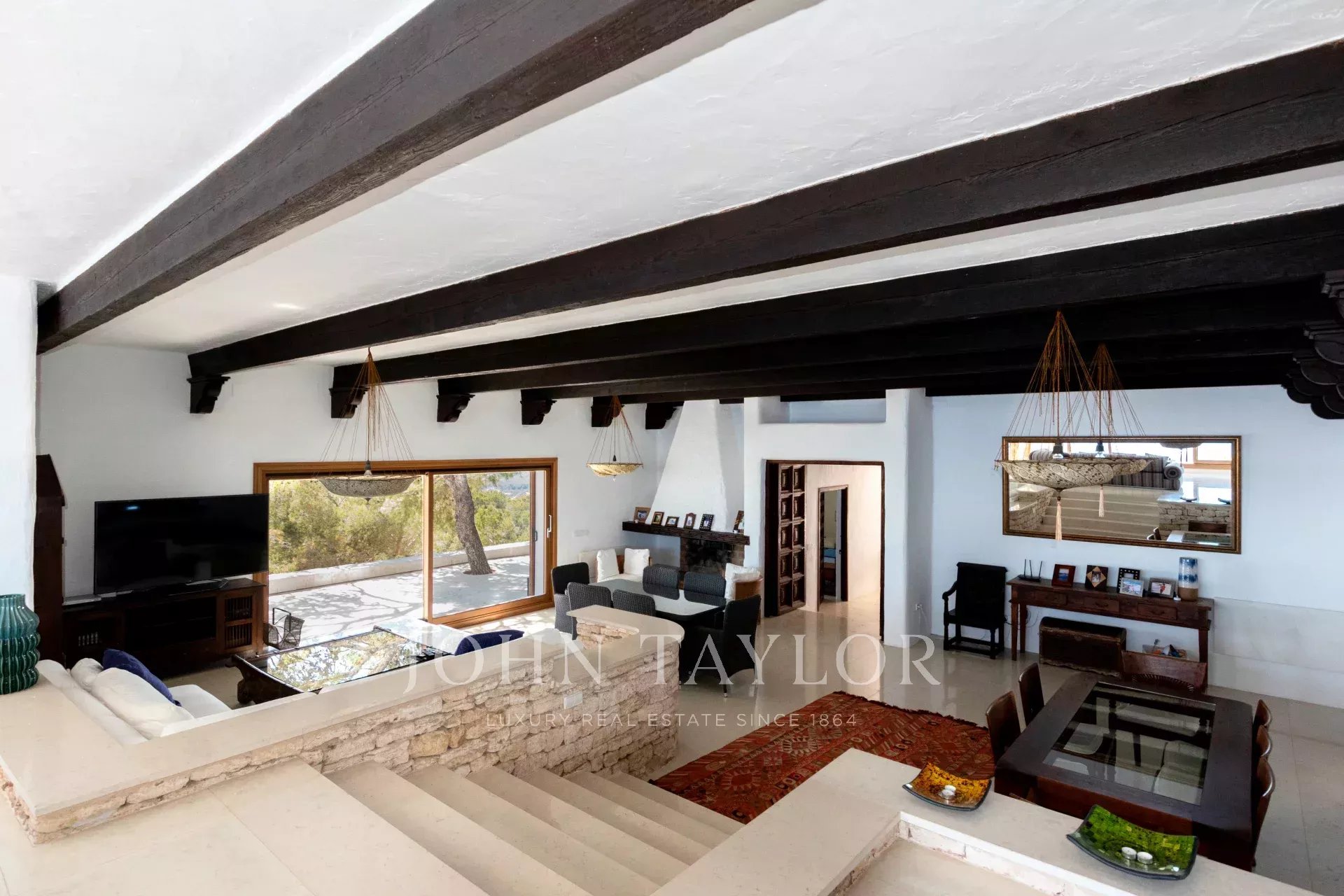 La proprietà è composta da tre ville di lusso adiacenti: una nel romantico stile della vecchia Ibiza, una in stile vacanza moderna e una terza con una casa per il personale. Dispongono di un totale di 9 camere da letto, 8 bagni, ampie zone giorno, biblioteca, sauna e vasca idromassaggio.