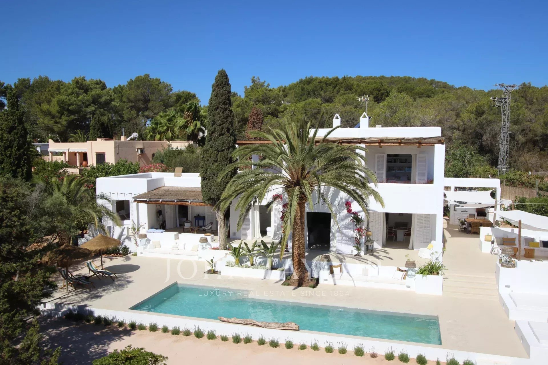 A soli 400 metri dalle acque cristalline di Cala Llenya e a cinque minuti dal pittoresco villaggio di San Carlos, questa villa finemente ristrutturata rappresenta una scelta ideale per un soggiorno esclusivo a Ibiza. Situata in una delle zone più autentiche dell’isola, offre privacy, tranquillità e comfort moderni.