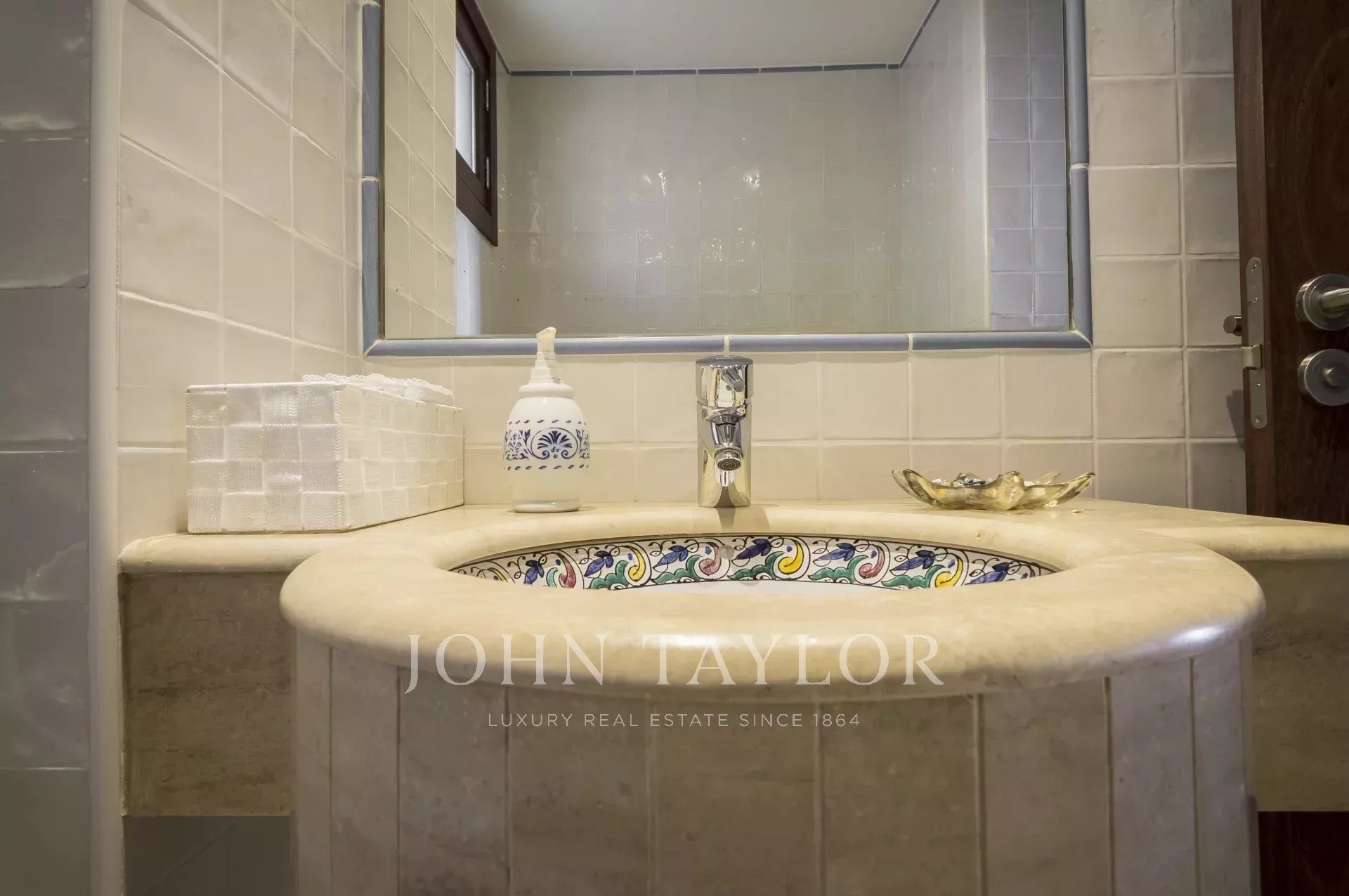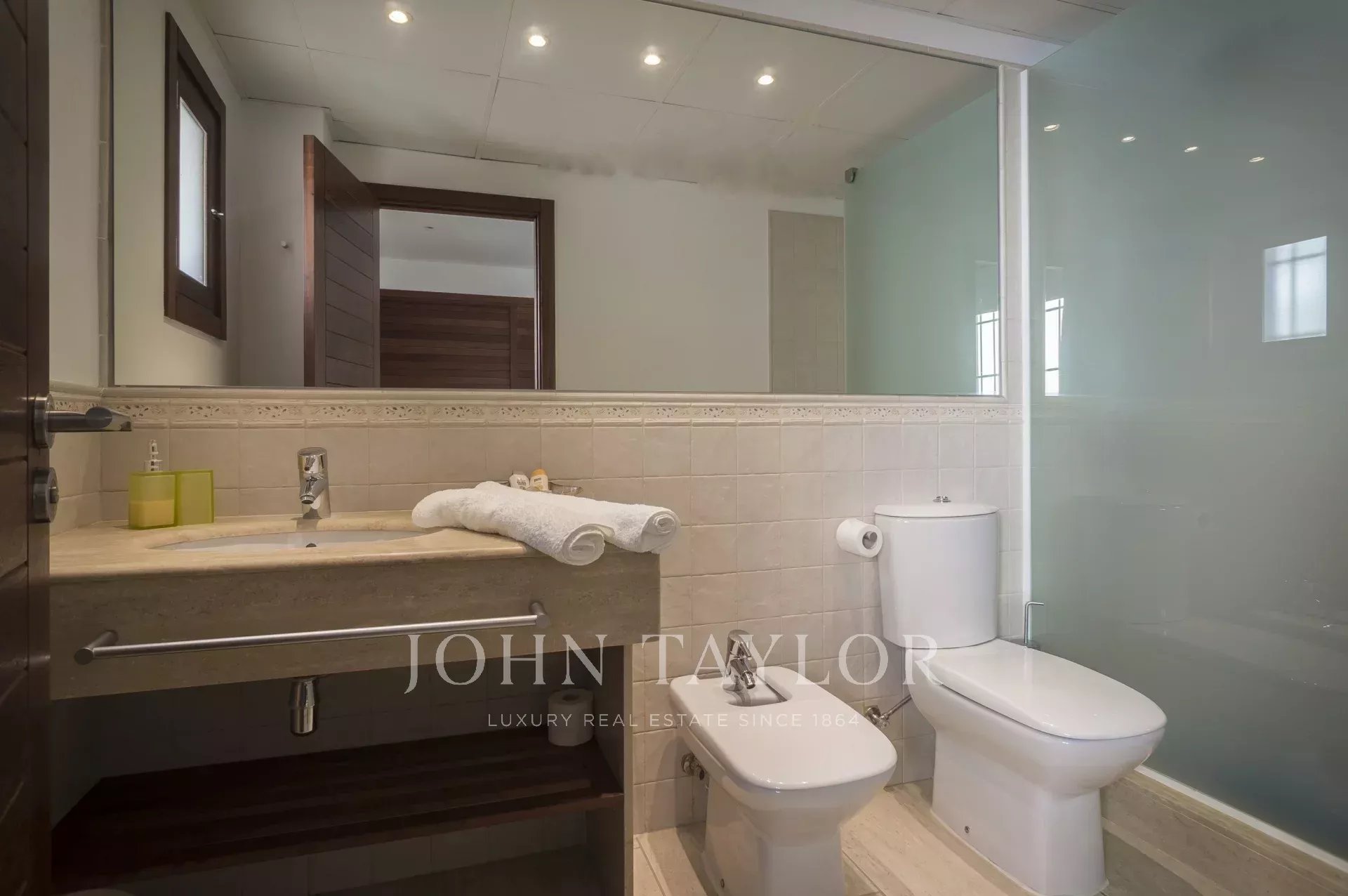 La proprietà è costruita su due livelli e dispone di 360m2. Dispone di 5 camere da letto, 5 bagni, un bagno per gli ospiti, un ampio soggiorno-sala da pranzo e una cucina dotata di elettrodomestici di alta gamma. Dispone inoltre di un deposito e di un garage.