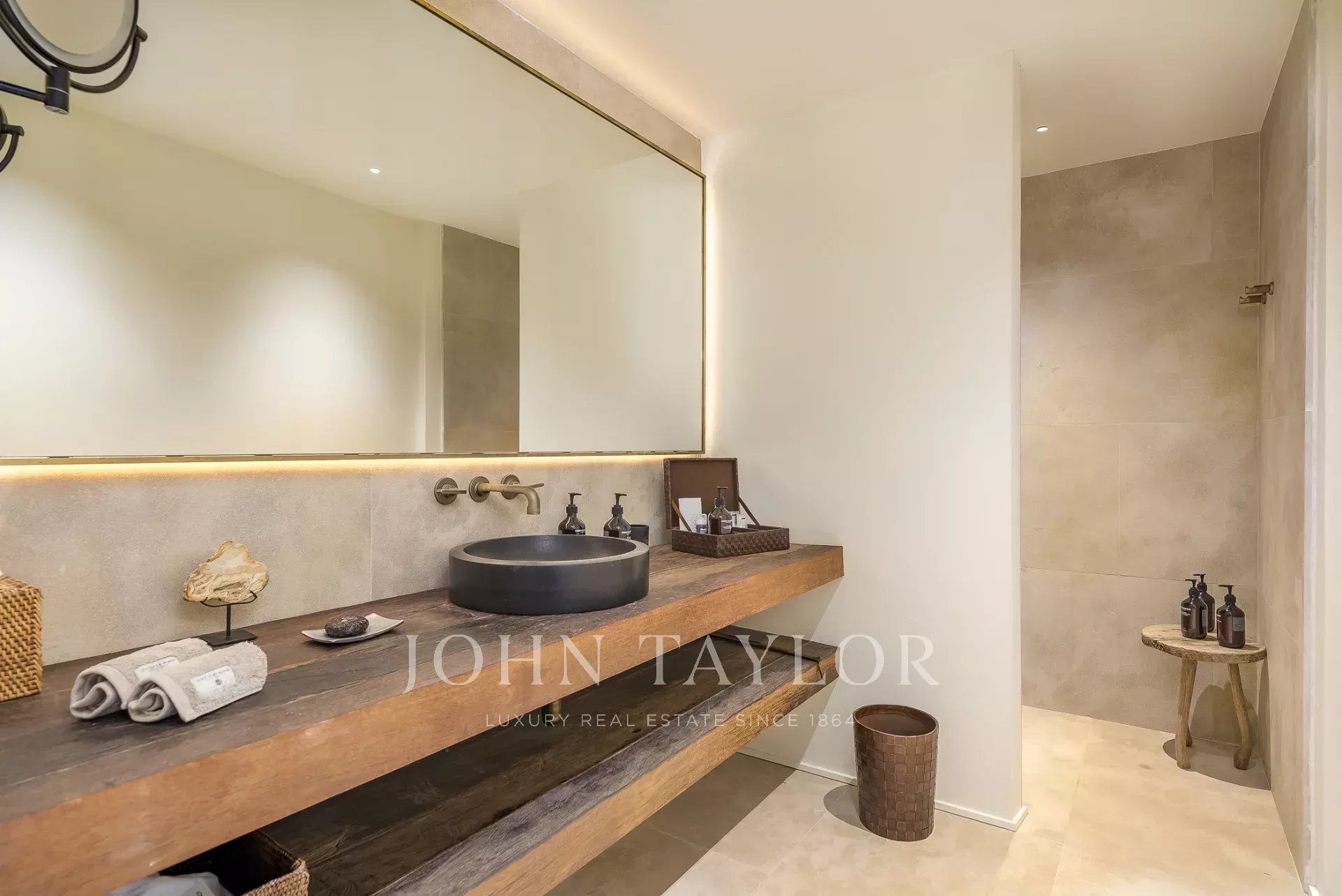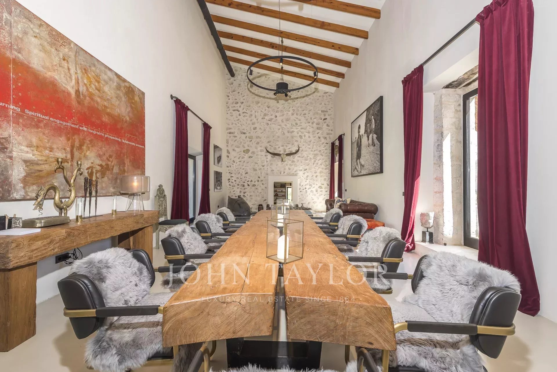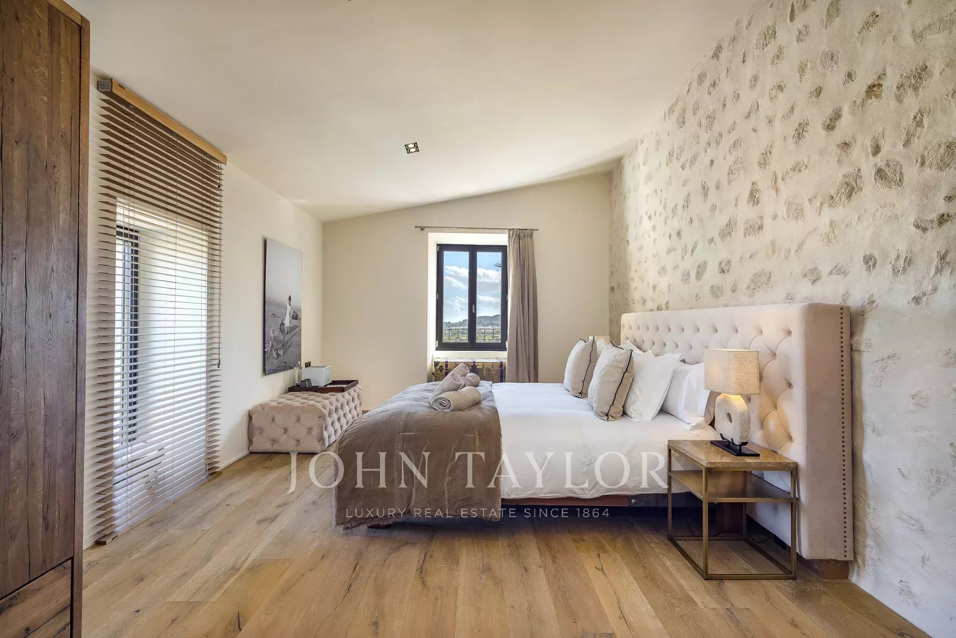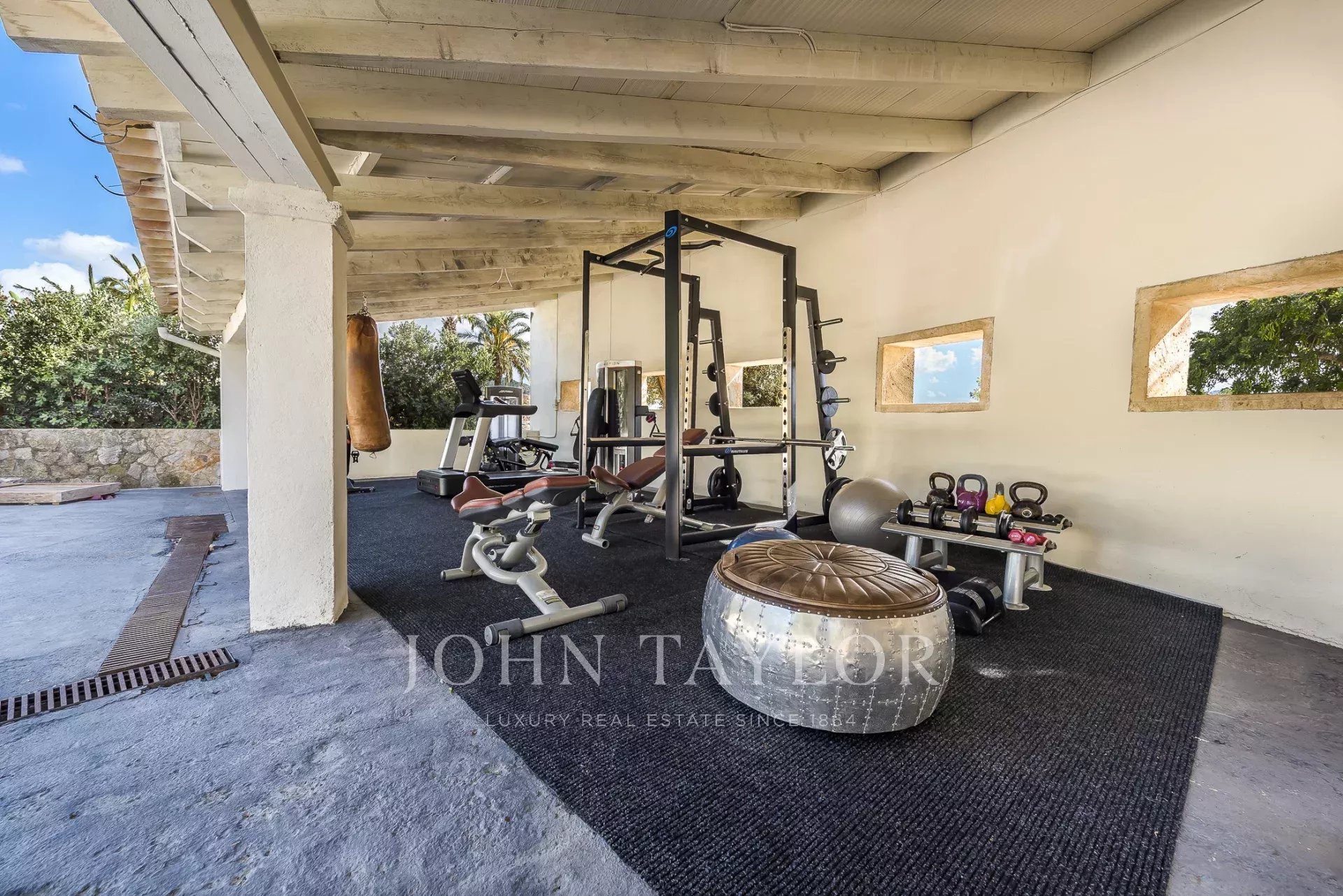 Questa proprietà unica, Spirit of Son Fuster, offre ai visitatori un servizio esclusivo in un hotel privato di lusso. L'hotel della finca offre molta privacy ed è ideale per incontri di lavoro o per un soggiorno con amici e familiari senza compromessi. Il servizio discreto, pur mantenendo la privacy, è disponibile 24 ore su 24. La finca può ospitare fino a 20 persone in 10 camere doppie. Ciascuna camera dispone di letti king-size, bagno in camera e riscaldamento a pavimento. Diverse sale da pranzo, sale conferenze, cinema, area benessere e un nightclub privato offrono un'ampia varietà. Uno chef professionista soddisfa gli standard più elevati e si adatta a ogni visitatore in modo individuale. Un'offerta gastronomica ricca, sana e fresca, senza compromessi sulla qualità, attende gli ospiti. Un'ampia area piscina con lettini e tende berbere marocchine offre molto spazio per rilassarsi e prendere il sole. L'area benessere dispone di un bagno di vapore, una sauna a infrarossi e una sauna tradizionale. Accanto all'area docce si trova una sala separata per trattamenti di bellezza e massaggi. Intorno alla struttura si trovano piste da jogging e sentieri escursionistici. Sono inoltre disponibili una sala fitness ben attrezzata e un campo da paddle privato.