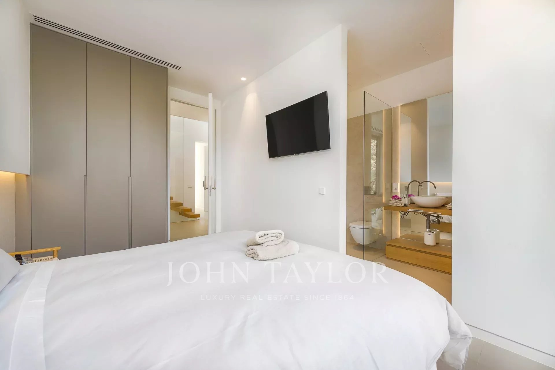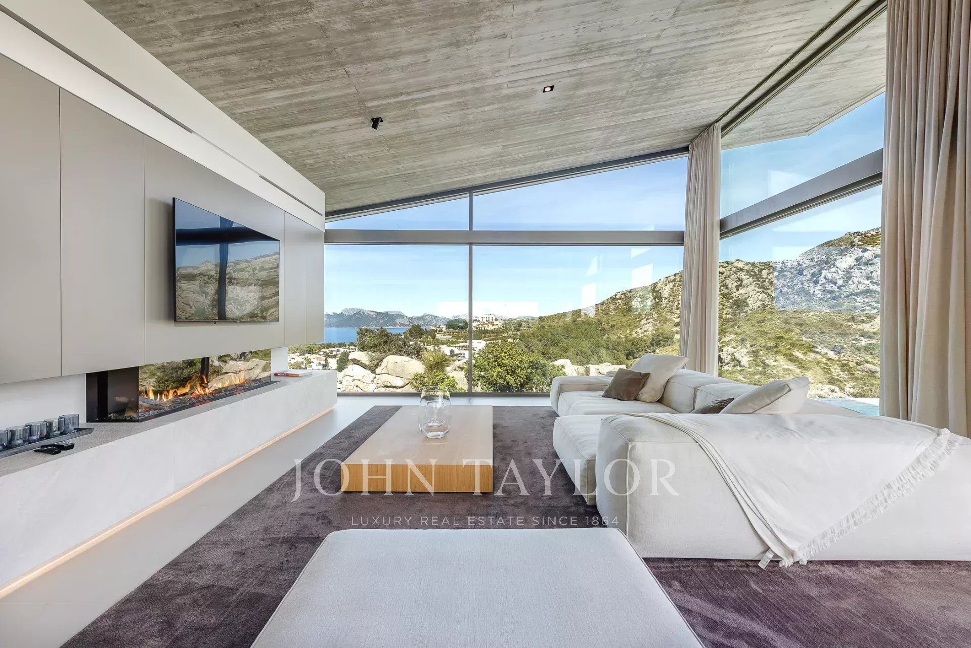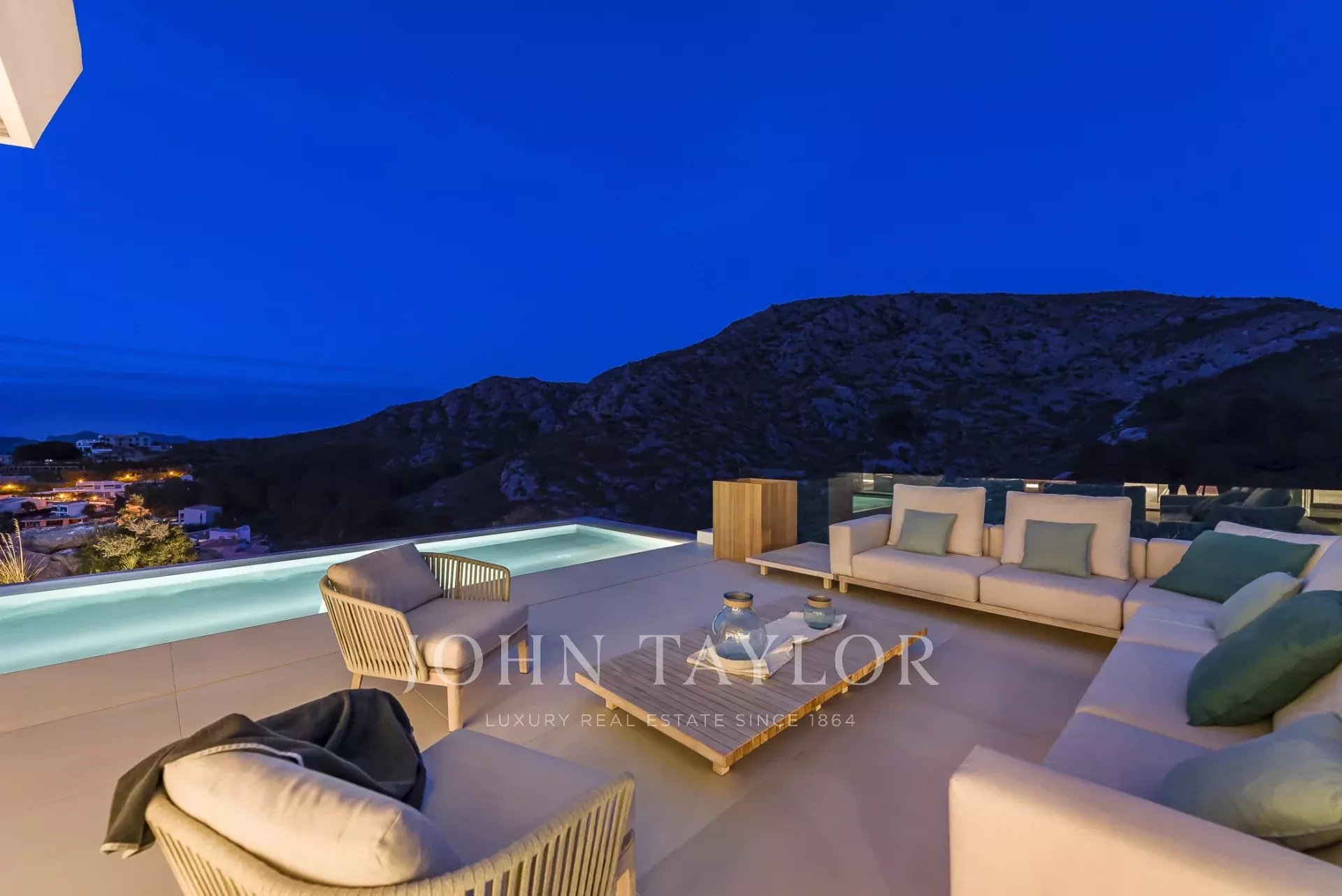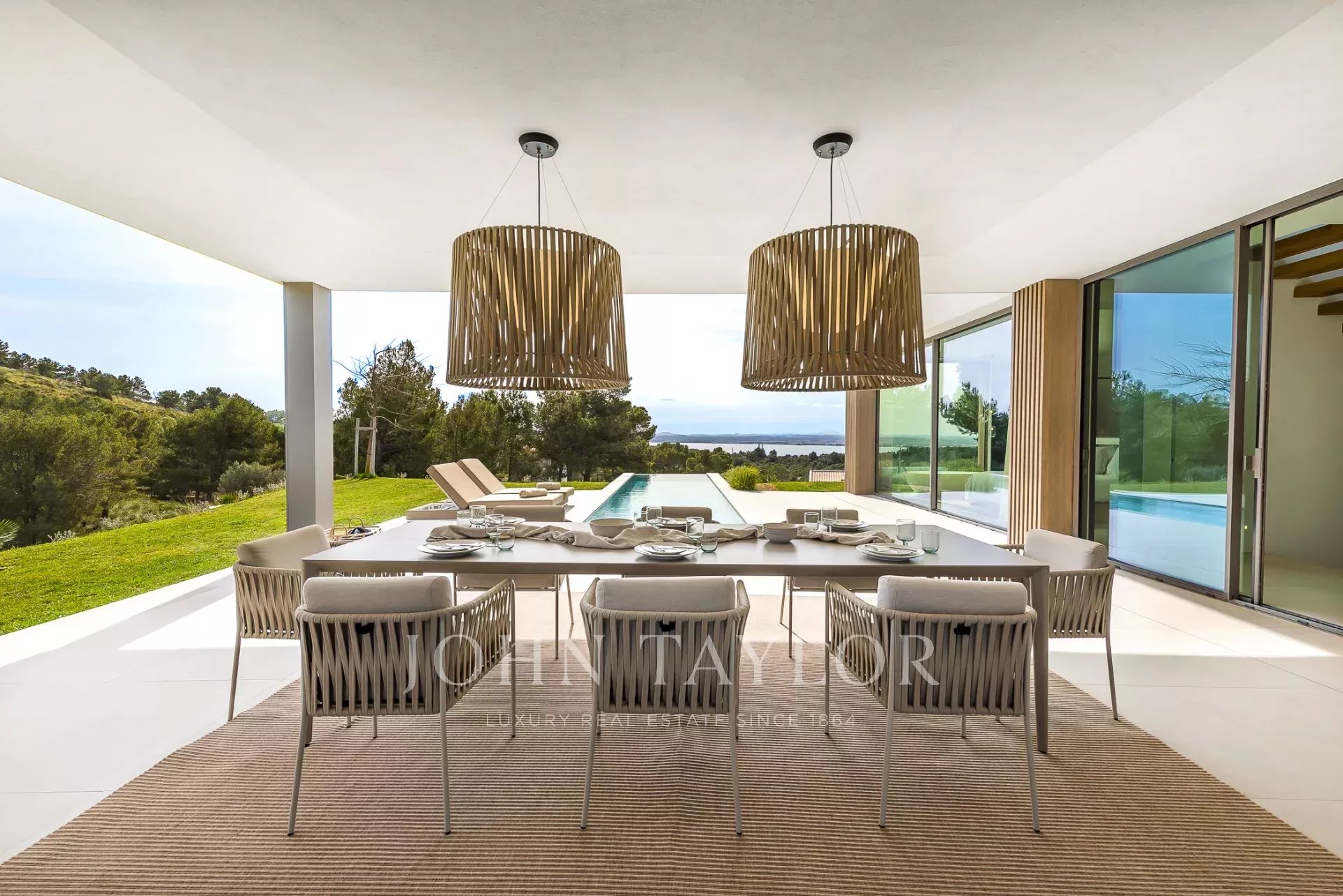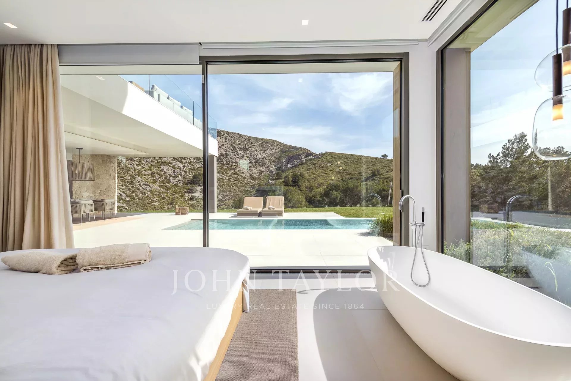 La casa è moderna e arredata con uno standard elevato. I colori e i materiali caldi offrono agli ospiti un'atmosfera speciale. Le 4 camere da letto matrimoniali si trovano al piano terra, mentre all'esterno si ha accesso a un'ampia terrazza con cucina esterna completamente attrezzata e a una delle due piscine. Al piano superiore si trovano la cucina/soggiorno a pianta aperta con finestre panoramiche, l'accogliente zona giorno con camino a gas e un'altra terrazza con piscina idromassaggio.