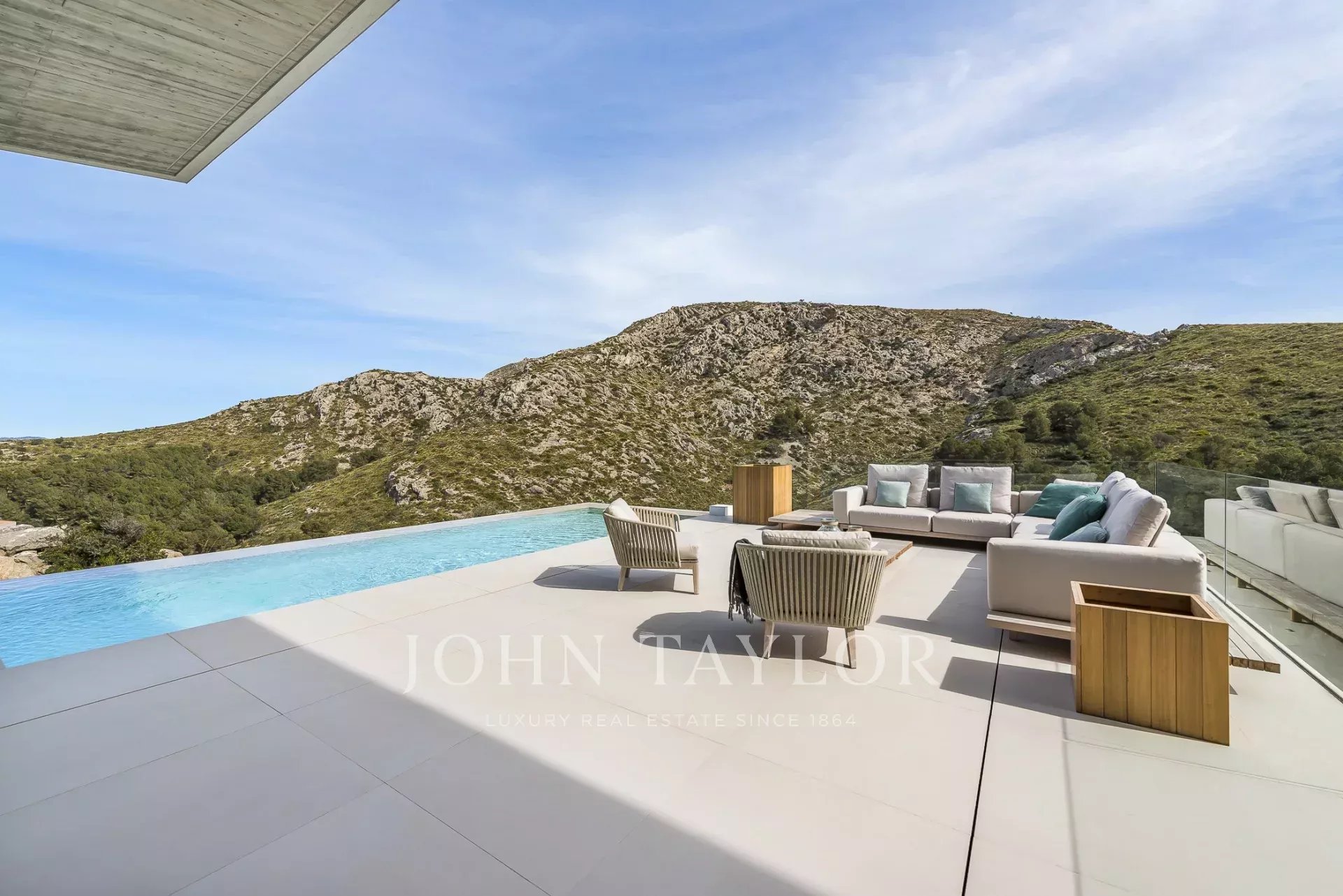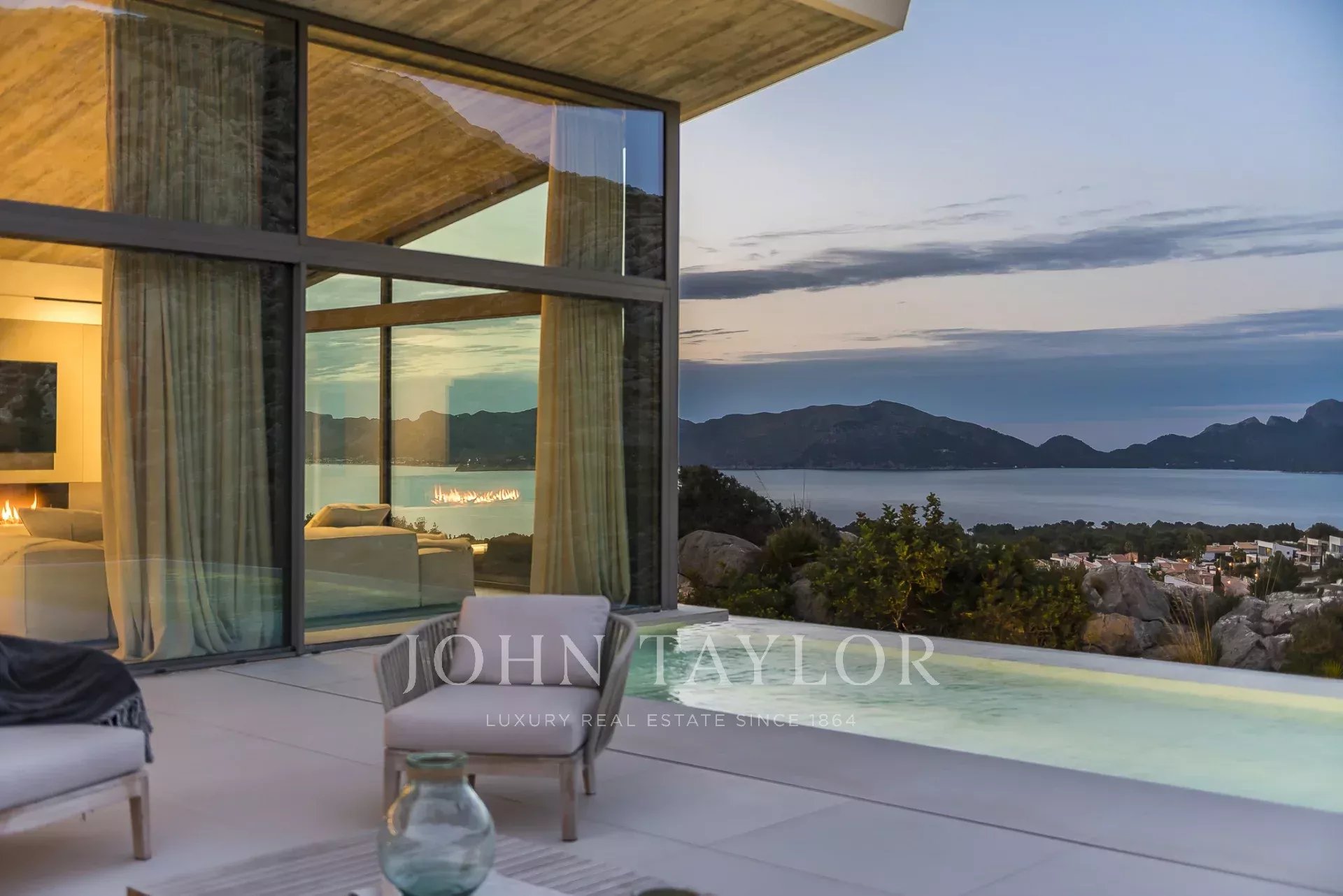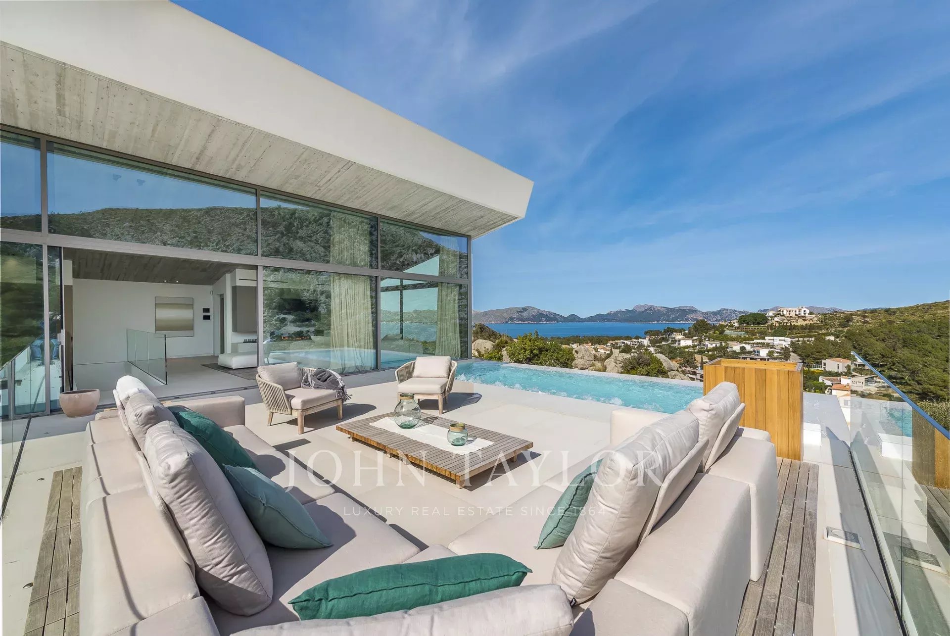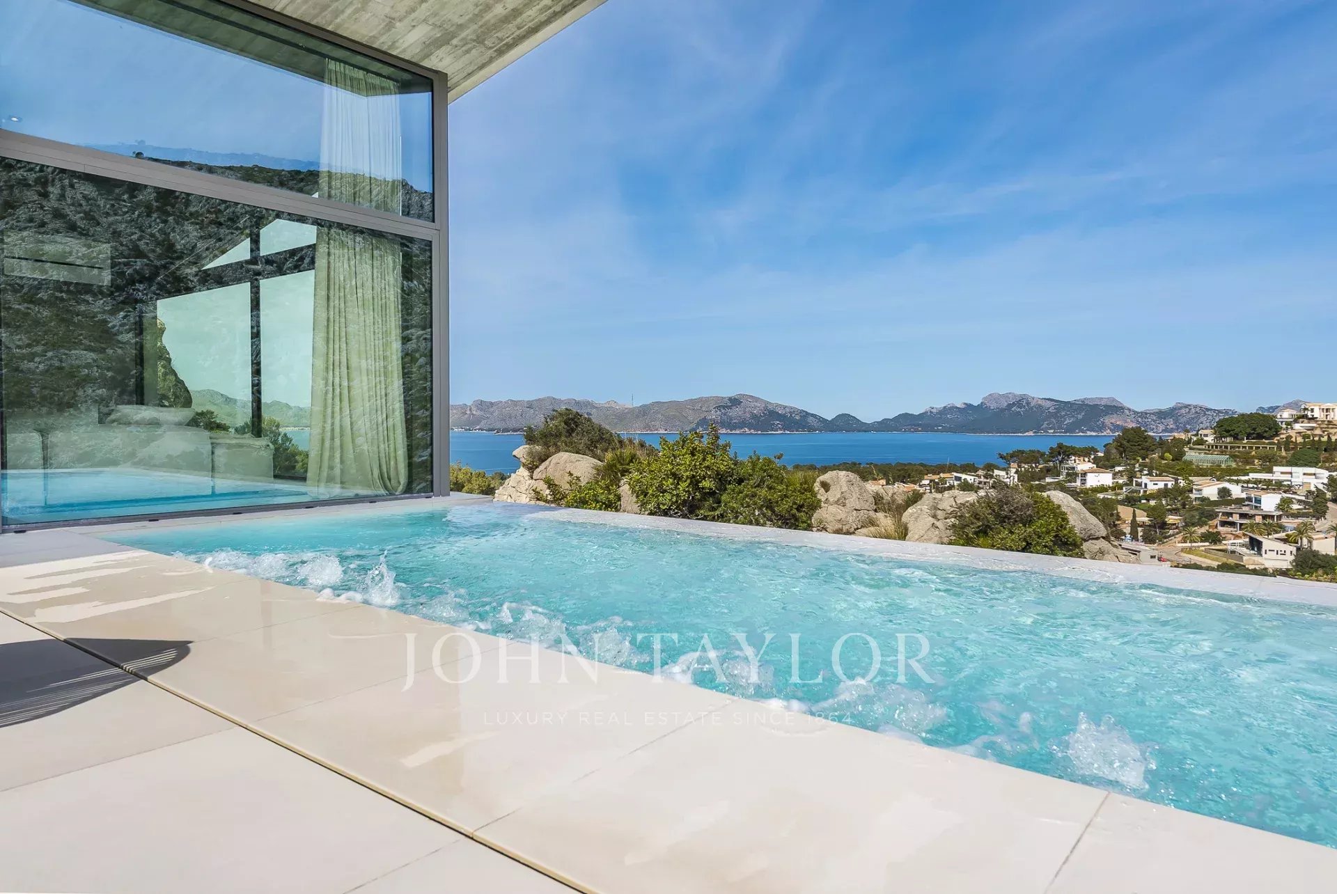 Questa moderna villa con 4 camere da letto doppie offre spazio per un massimo di 8 persone. Situata in un'elegante zona residenziale, si può godere di una fantastica vista sul mare della baia di Pollensa e di Alcudia.